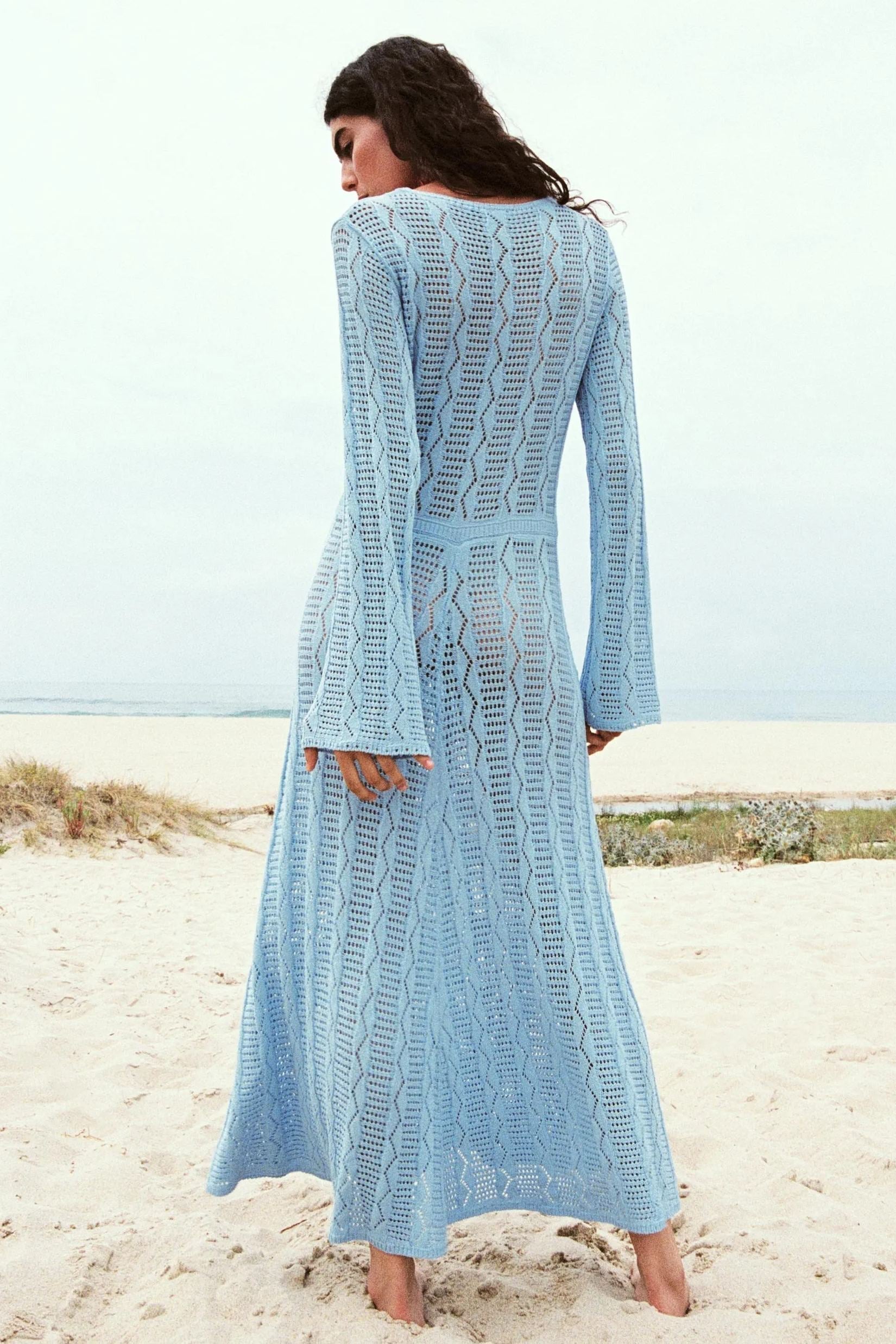 Doris V Yaka Uzun Kollu Örgü Maxi Elbise
