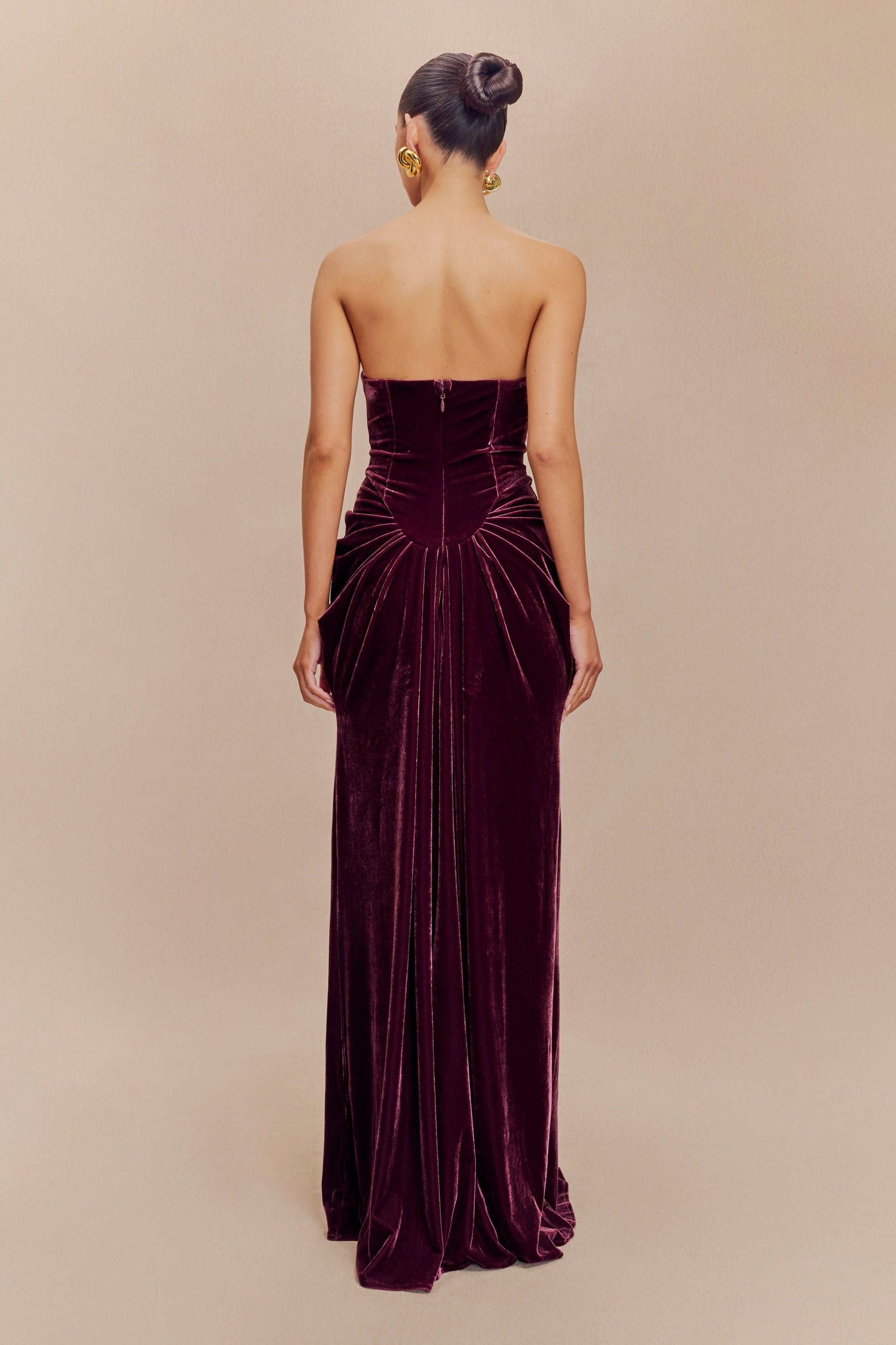 Dorothy Kadife Kalp Korse Pileli Tüp Maxi Elbise