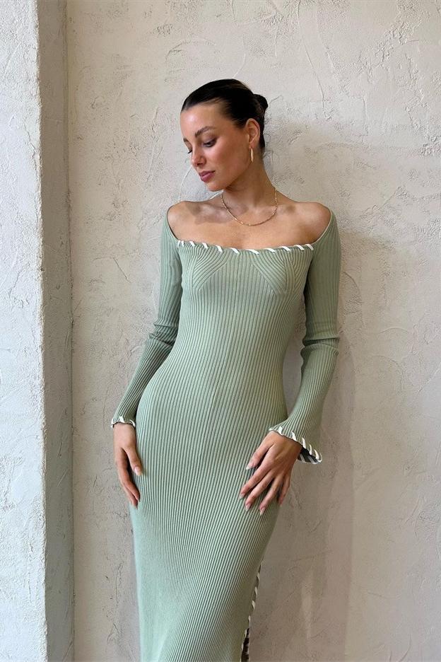 Dottie Kenarı Bağcıklı Örgü Midi Elbise