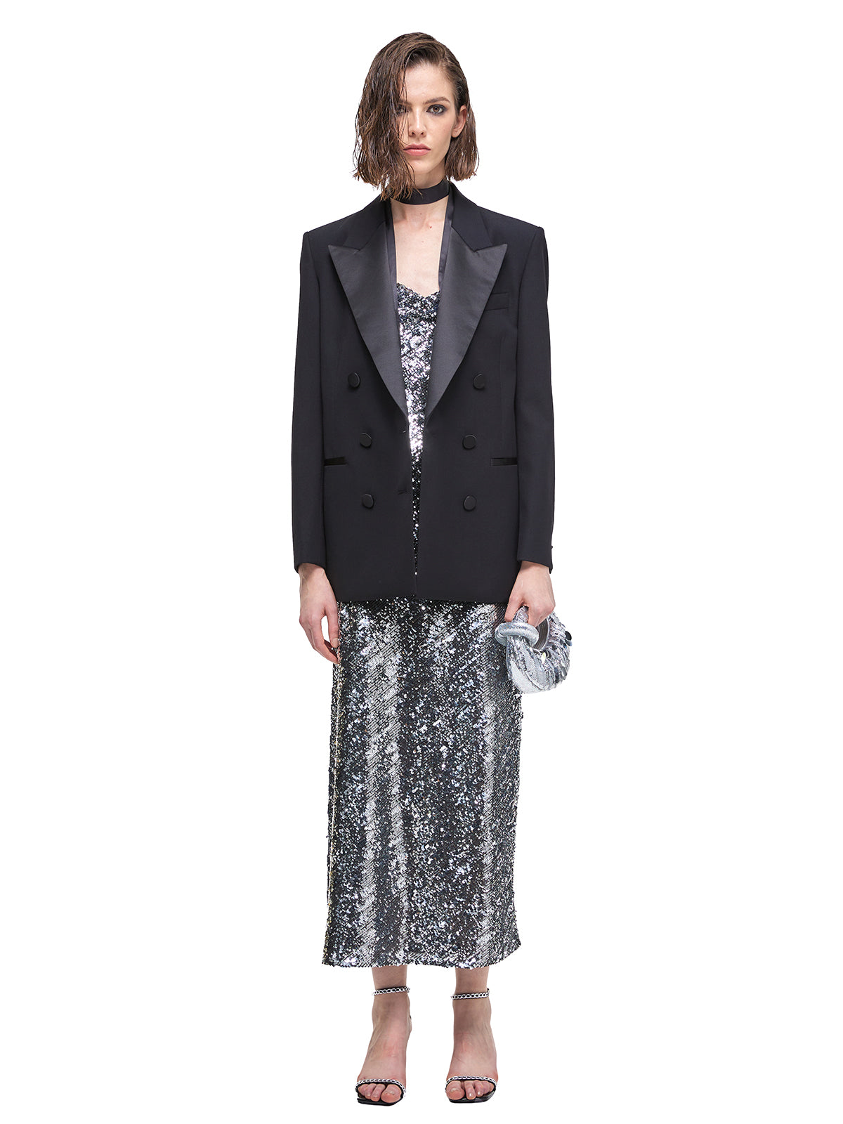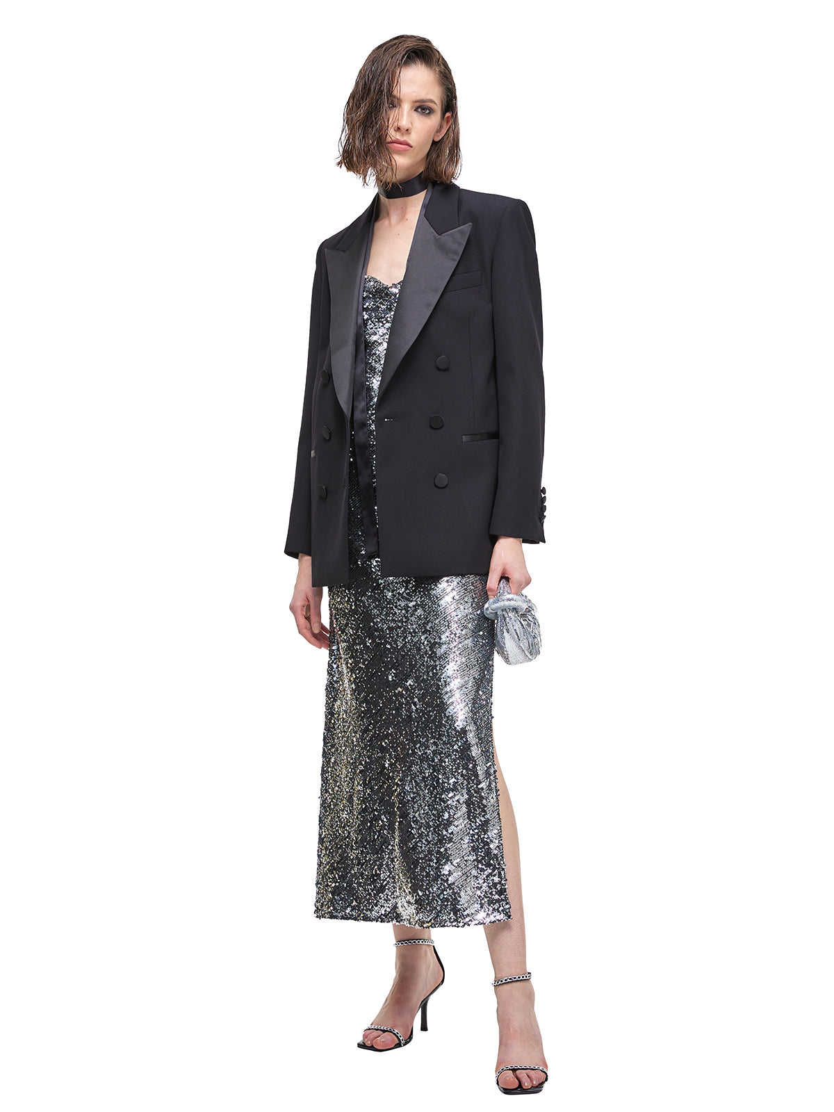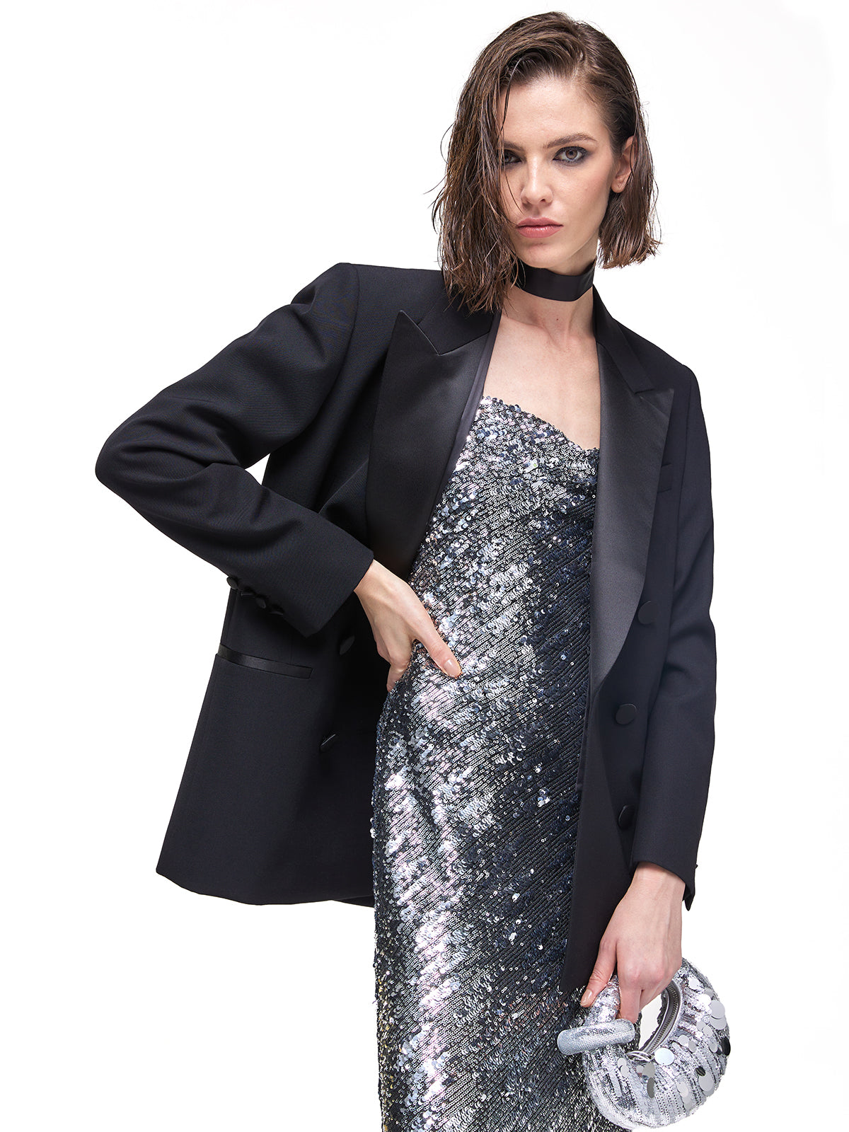 Asetat Panelli Saten Avangart Takım Elbise Ceketi