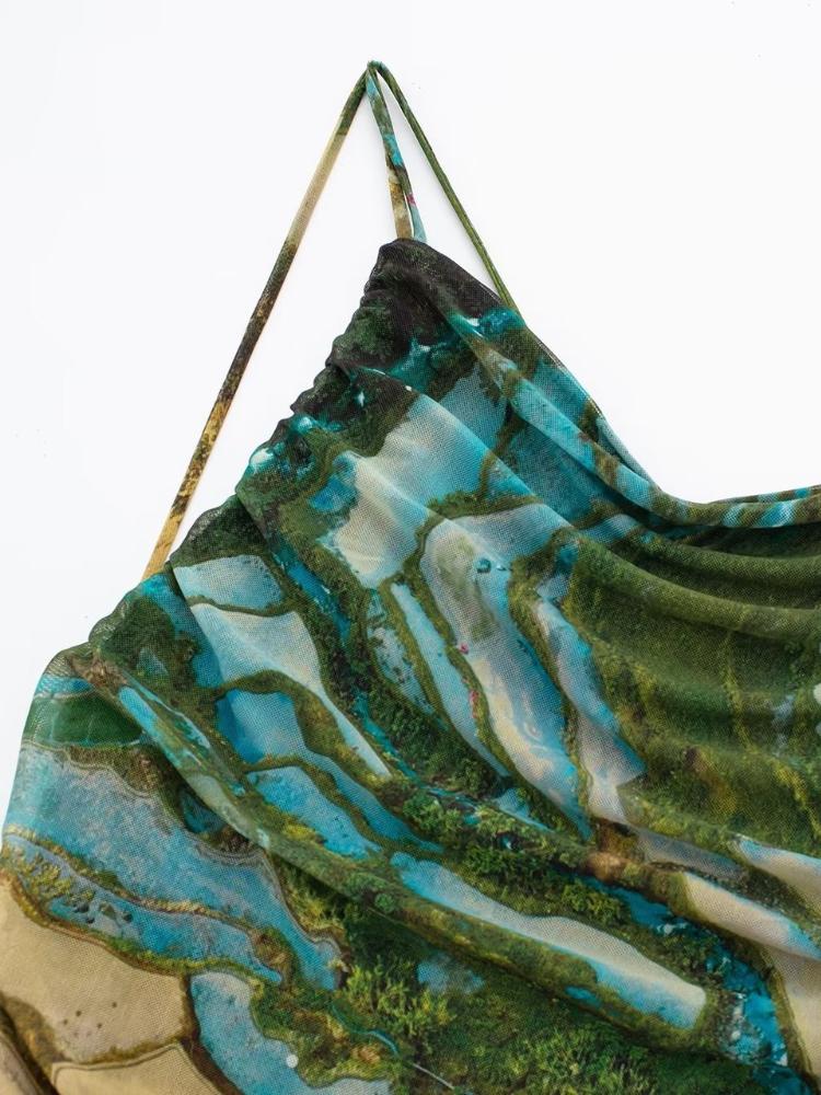 Eartha Baskılı Sırtı Açık Midi Slip Elbise