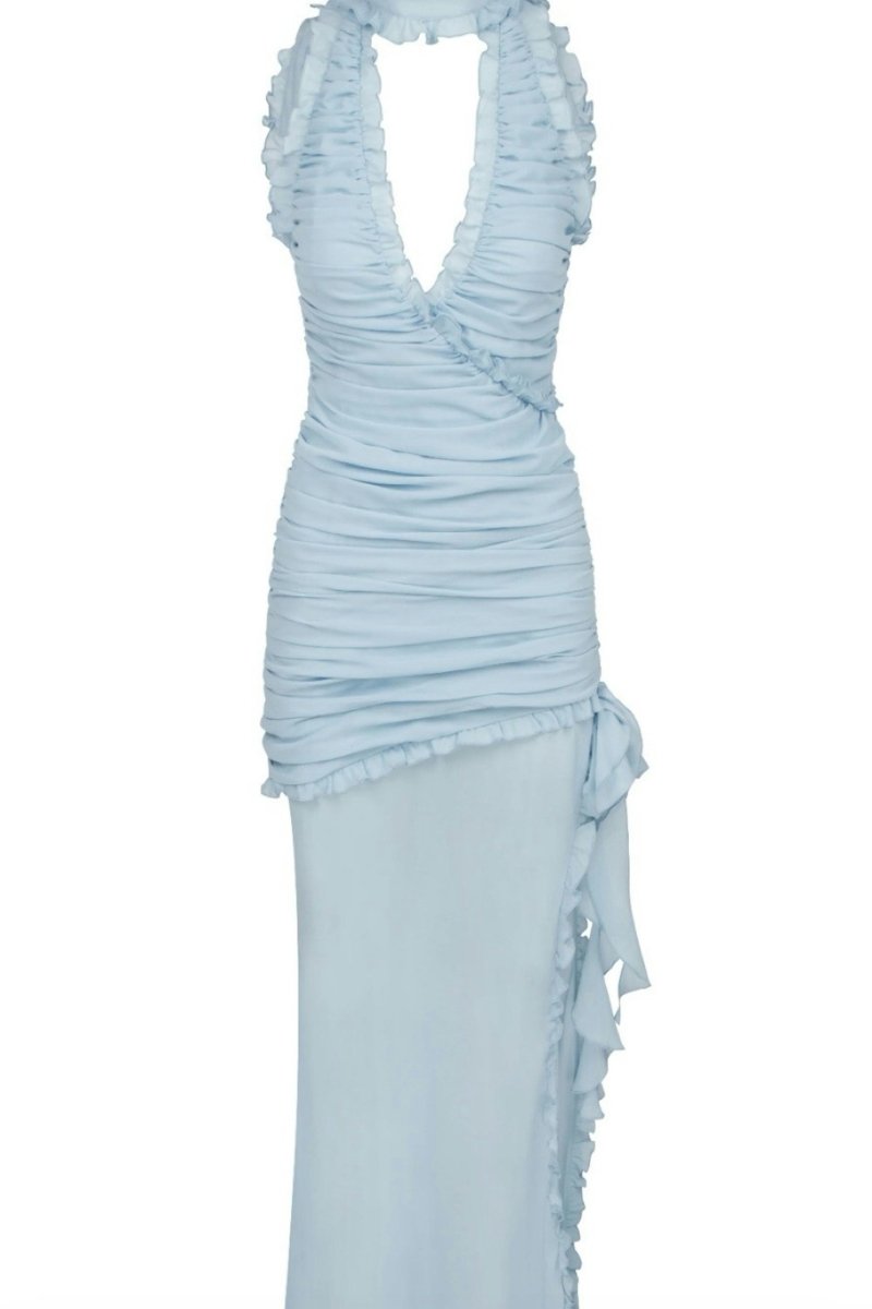 Eartha V Yaka Fırfırlı Maxi Elbise