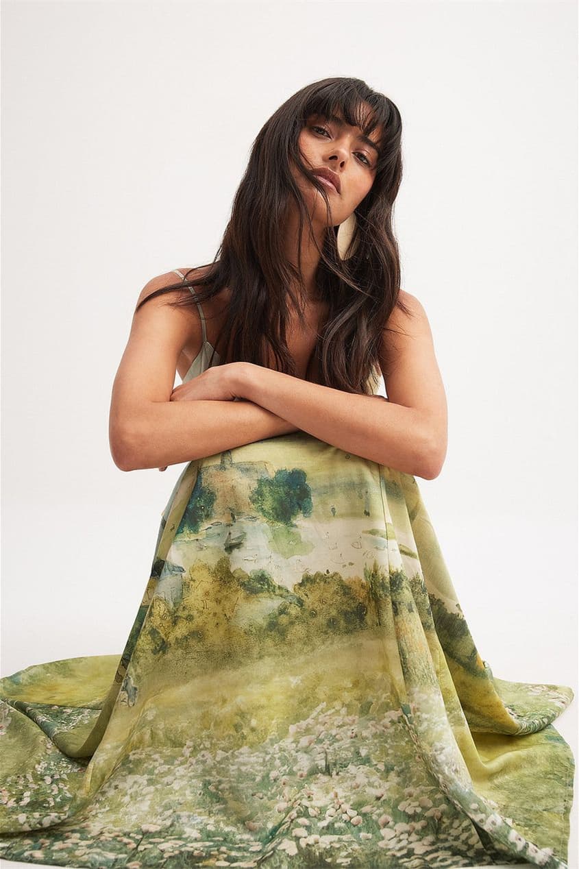 Edith Baskılı V Yaka Maxi Slip Elbise