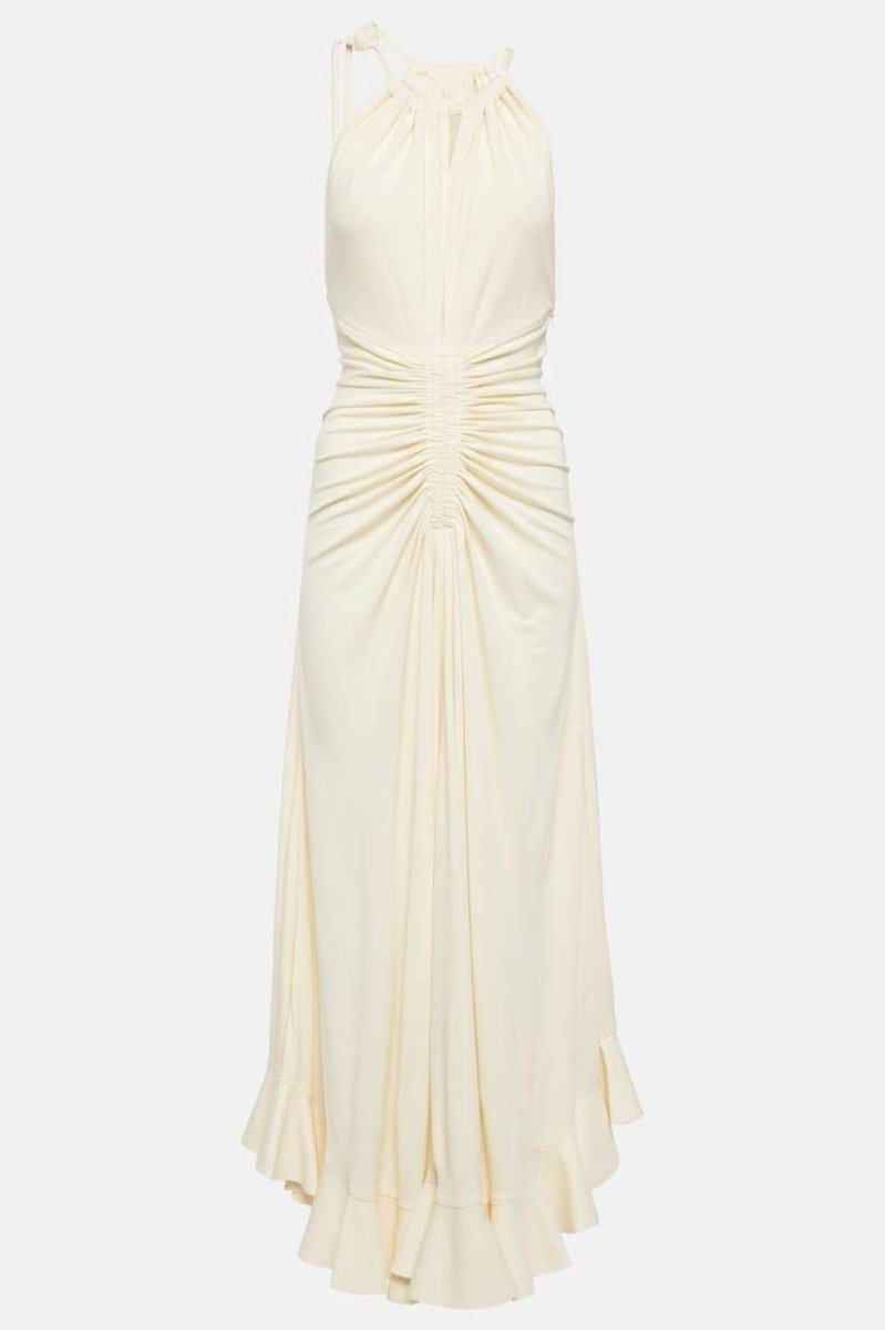 Edna Boyundan Bağlamalı Büzgülü Uzun Elbise