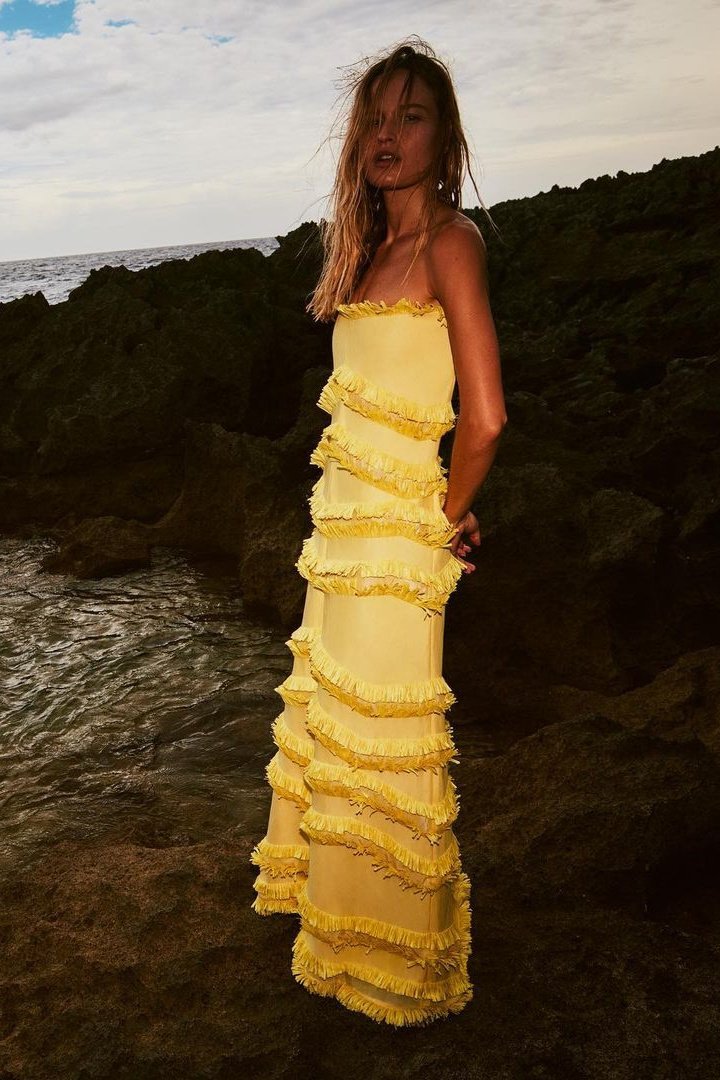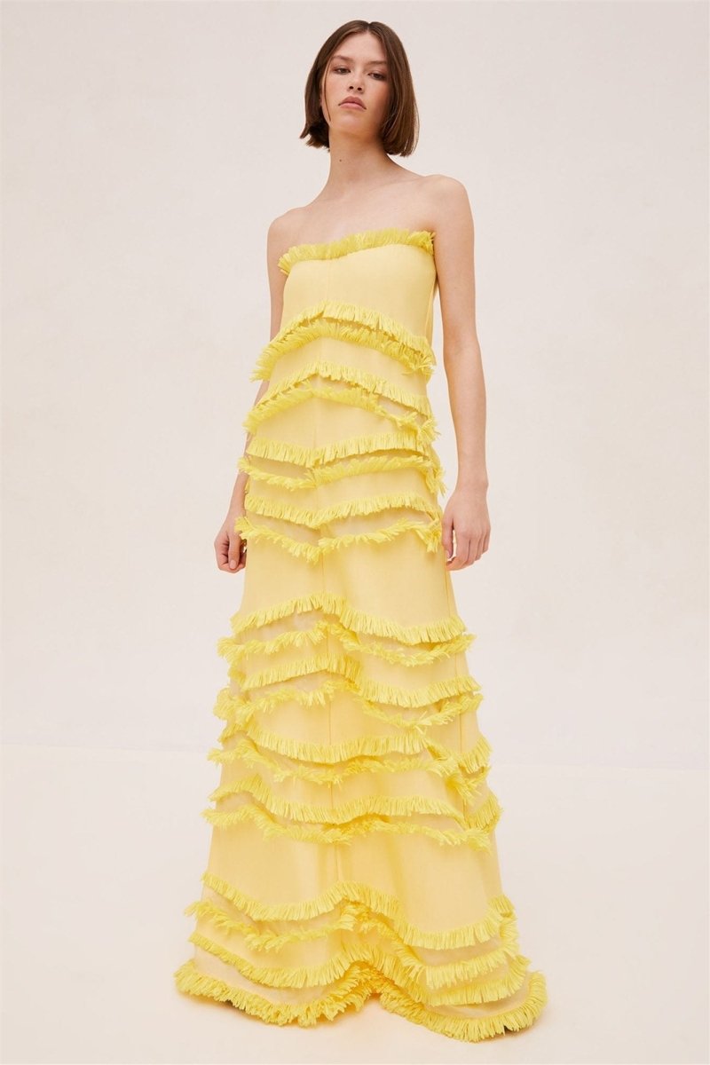 Edwina Straplez Püsküllü Polyester Maxi Elbise
