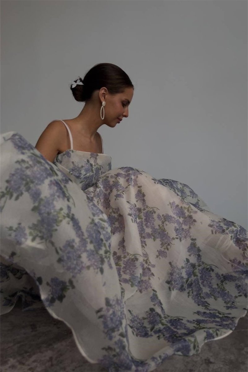 Ella Çiçek Baskılı Şifon Midi Elbise
