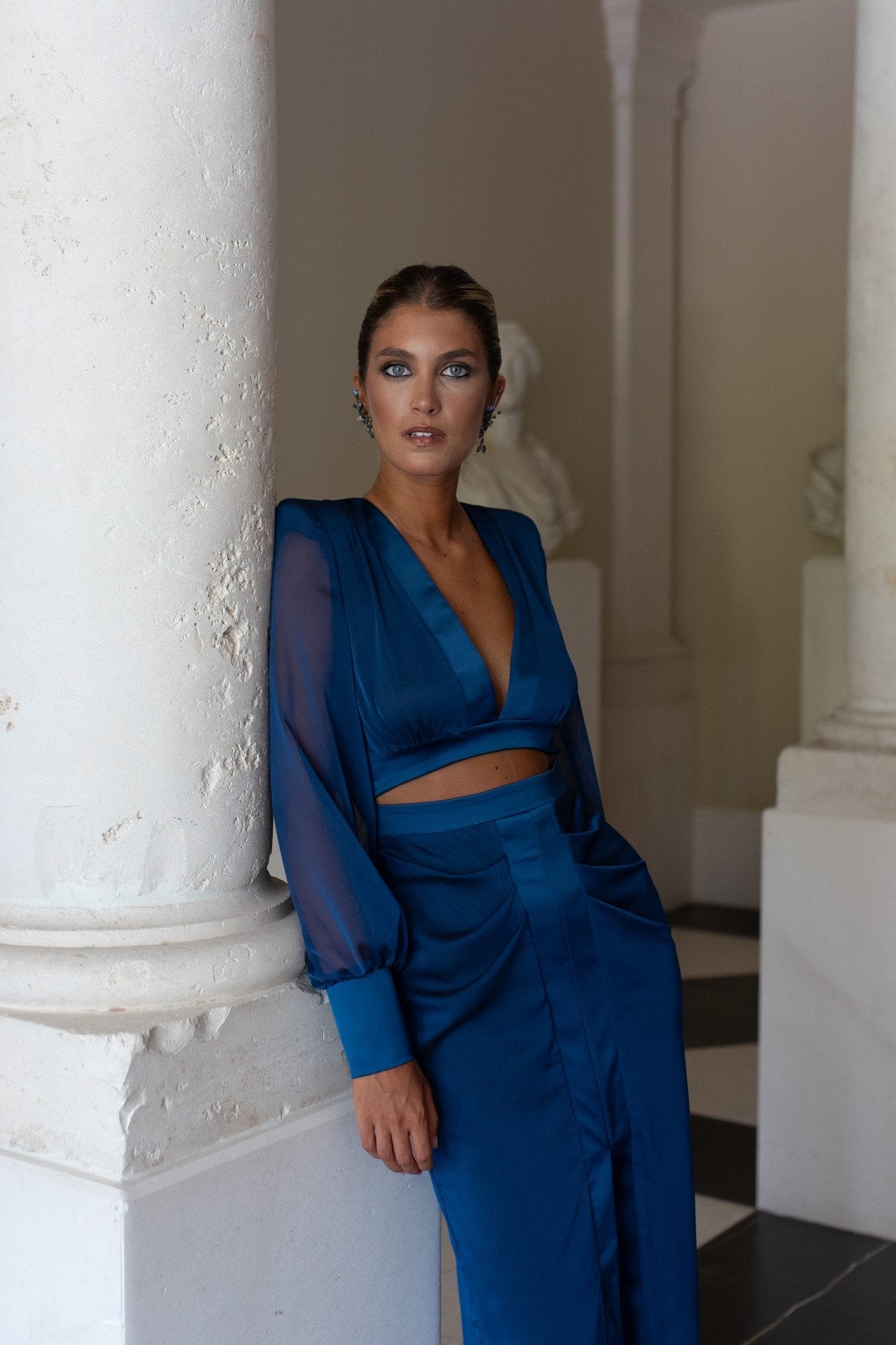 Elbiselerimiz, çağdaş tasarım unsurlarıyla klasik güzellik kavramını yeniden tanımlıyor. Zarif, vücuda oturan siluet, zarif bir görünüm yaratarak sizi gecenin parlayan yıldızı yapar. İster bir galaya, ister bir düğüne veya resmi bir akşam yemeğine katılın, bu elbise zahmetsizce göz alıcı bir görünüm için tercihiniz olacak.