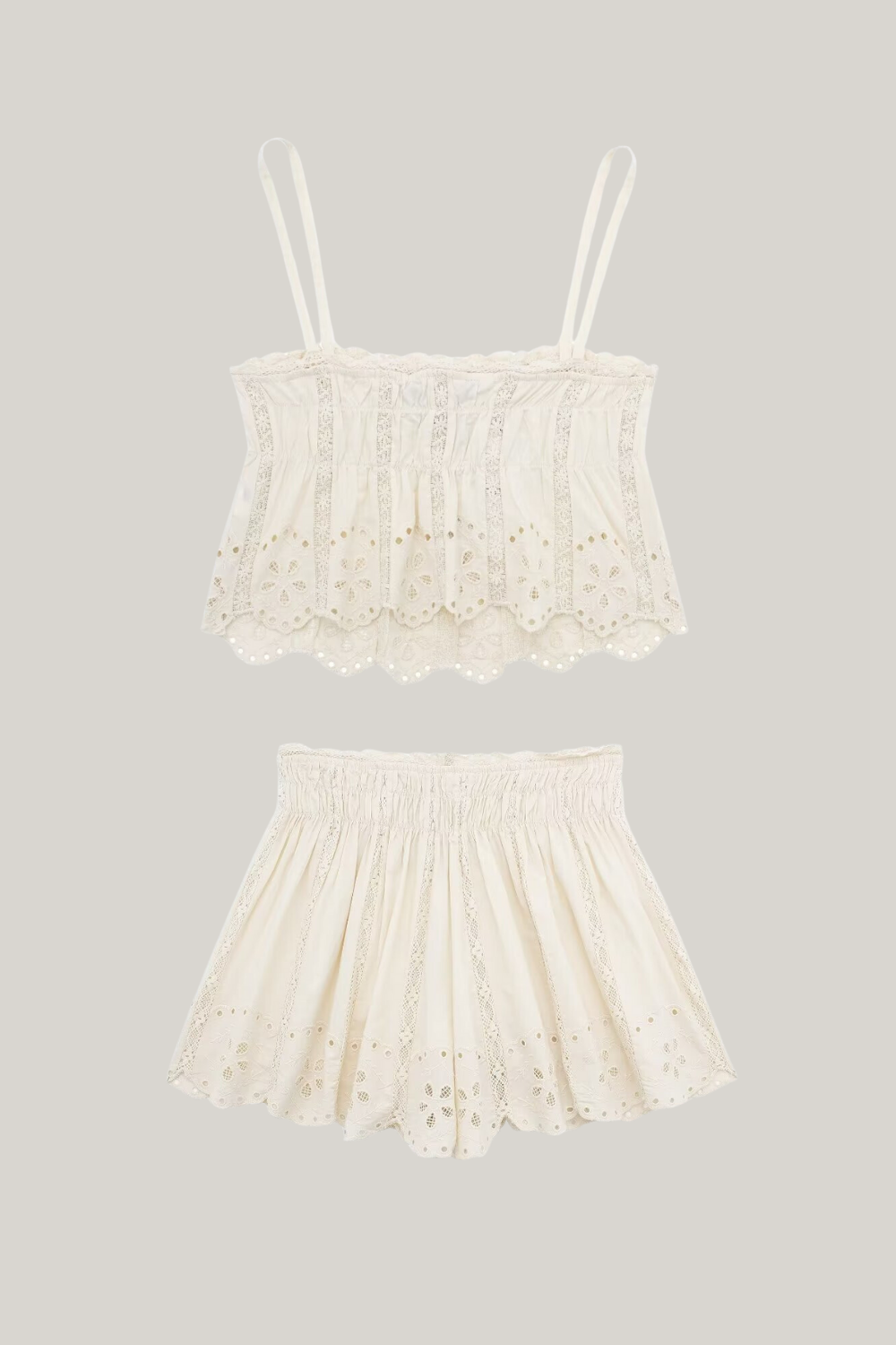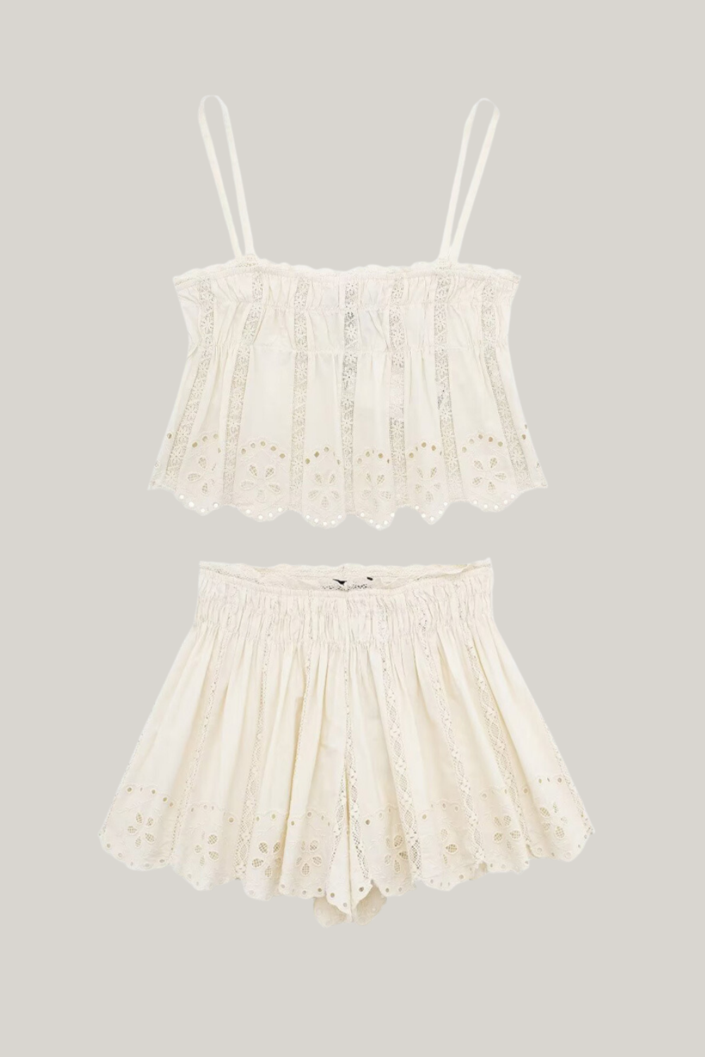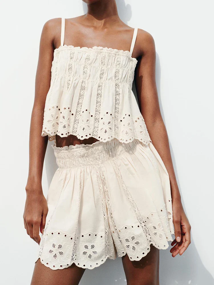 İşlemeli Dantelli Üst Ve Şort Takım