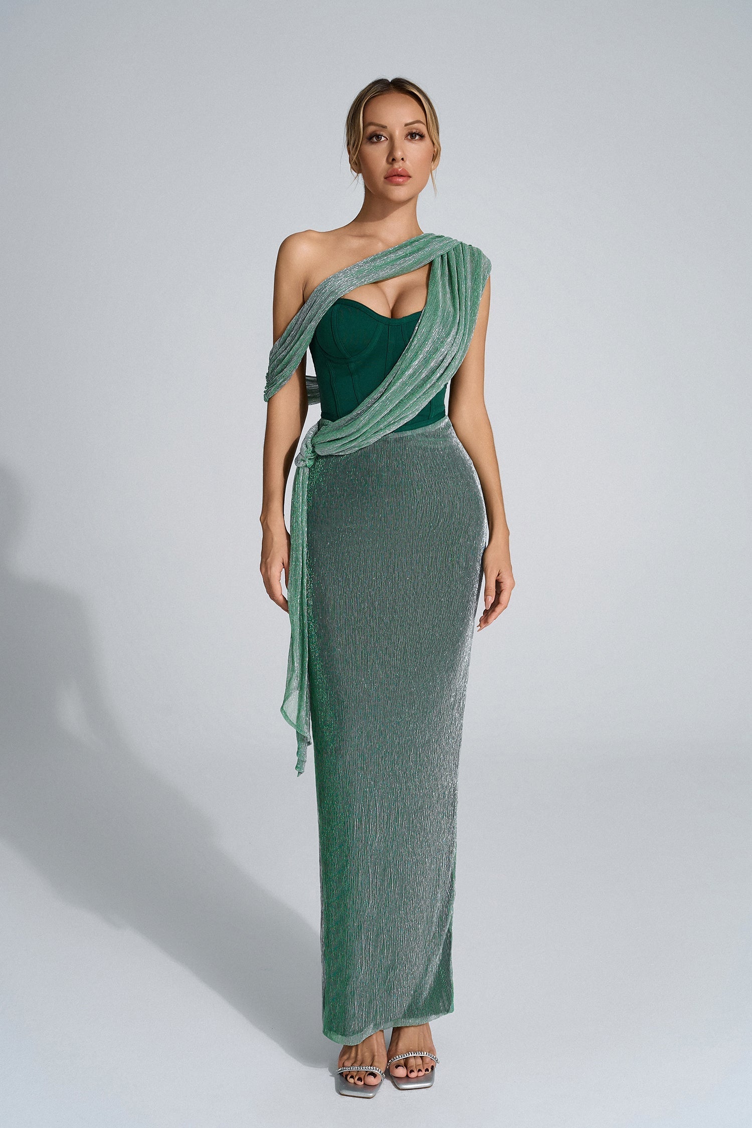 Zümrüt Yeşili Boyundan Askılı Maxi Elbise