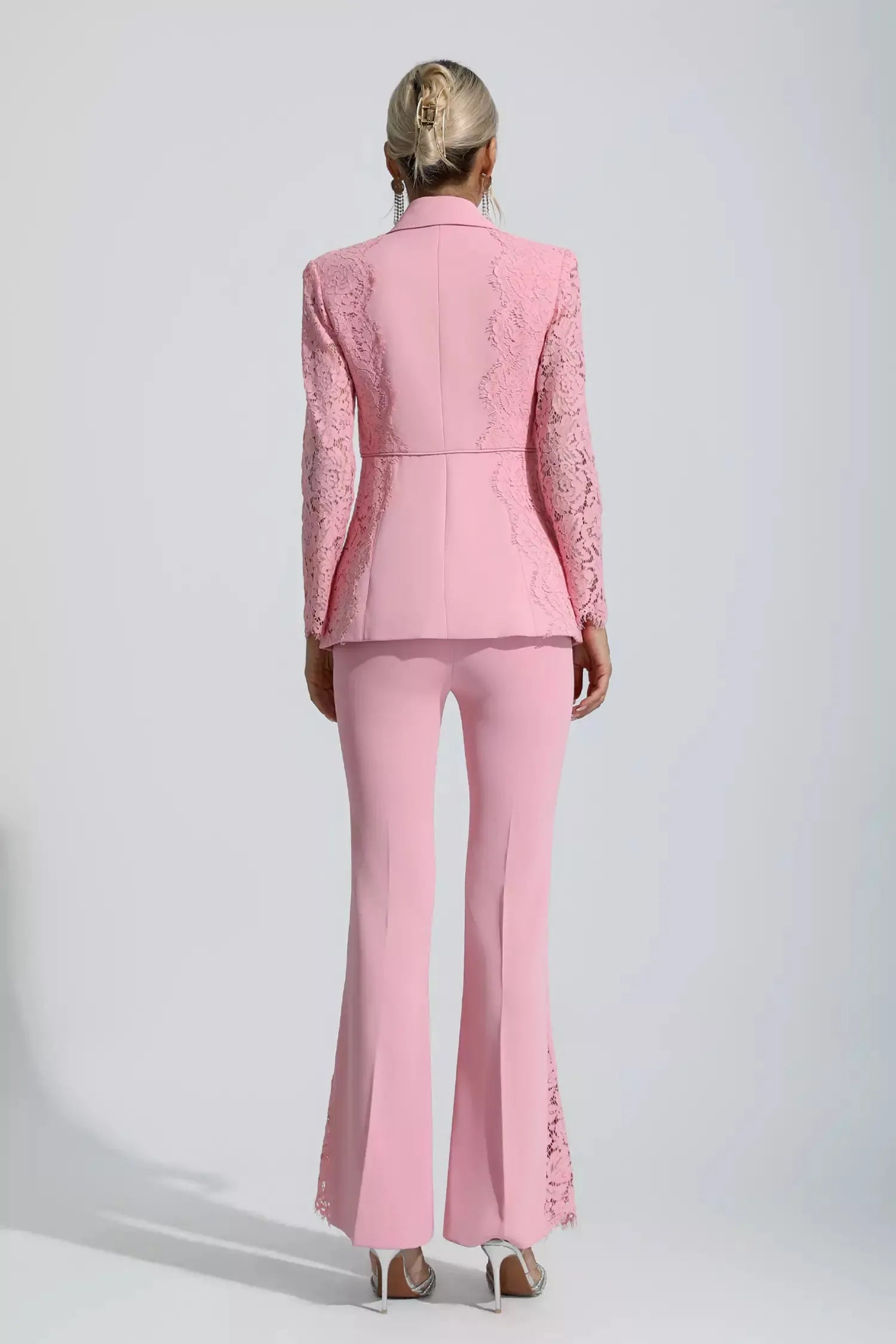 Emory Pembe Çiçekli Dantel Blazer Takım