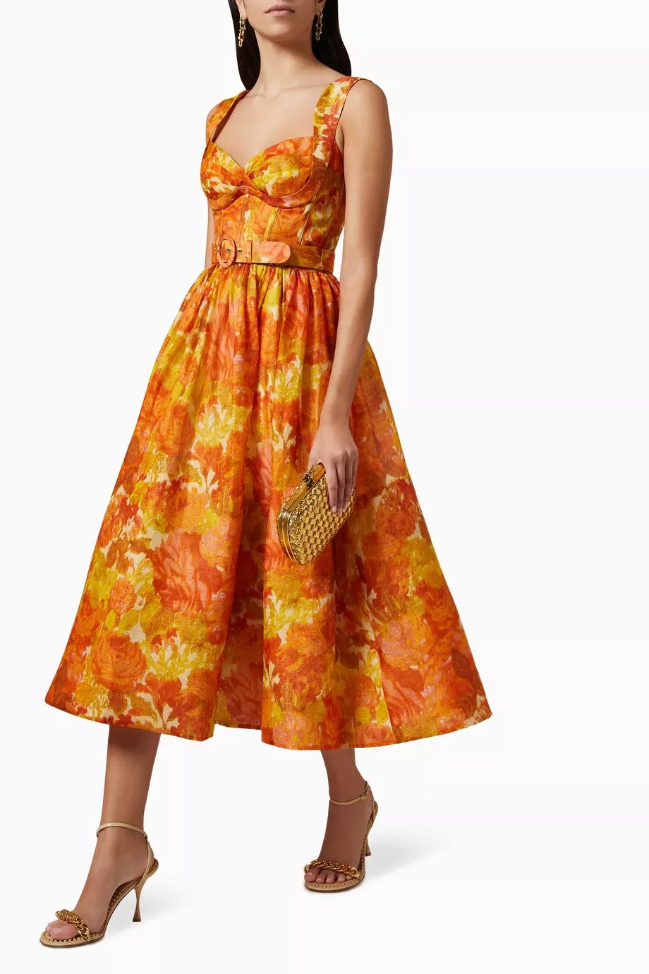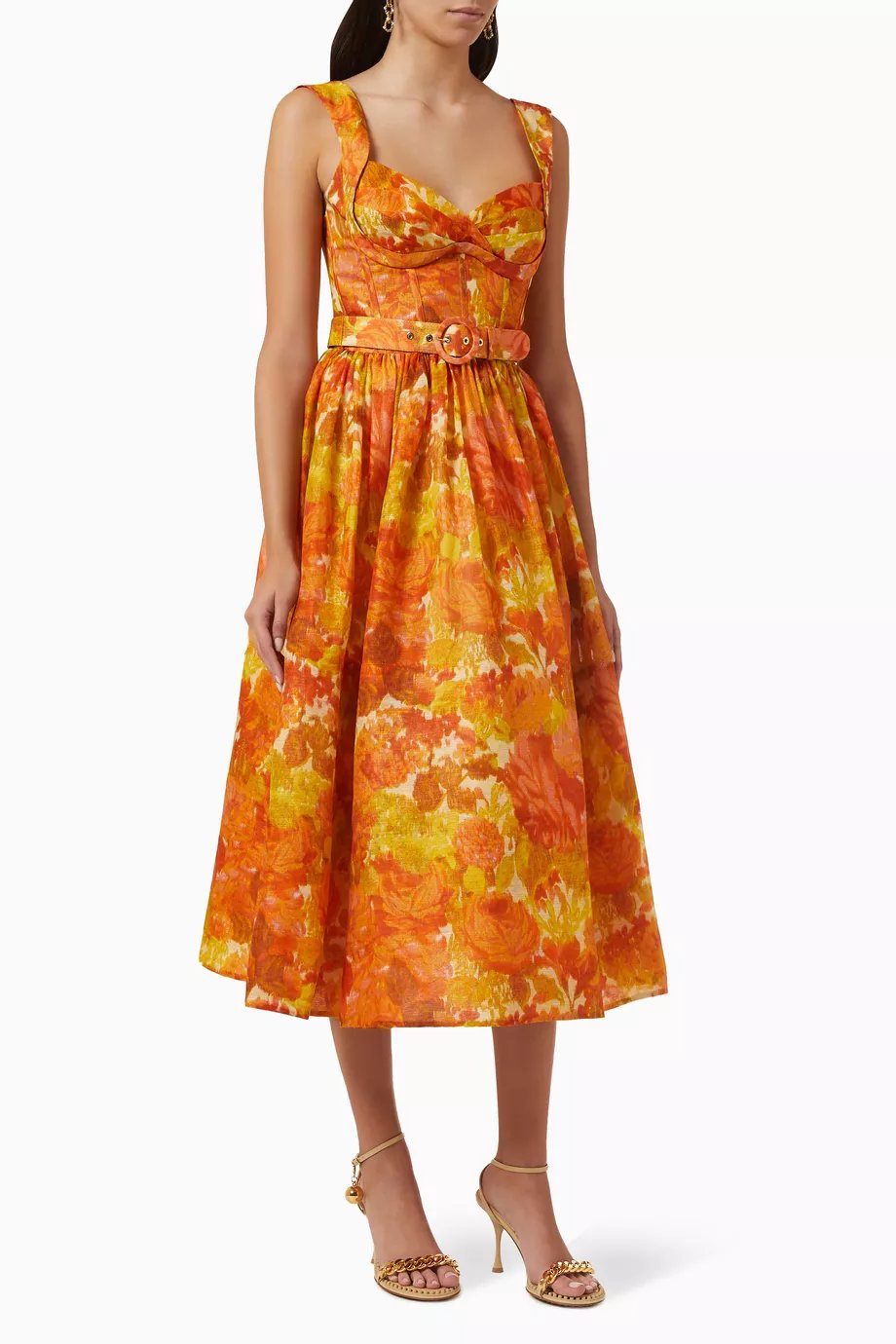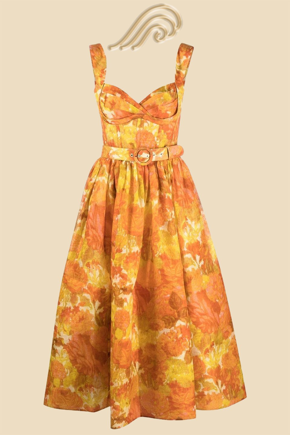 Esta Sweetheart Midi Piknik Askılı Keten Elbise