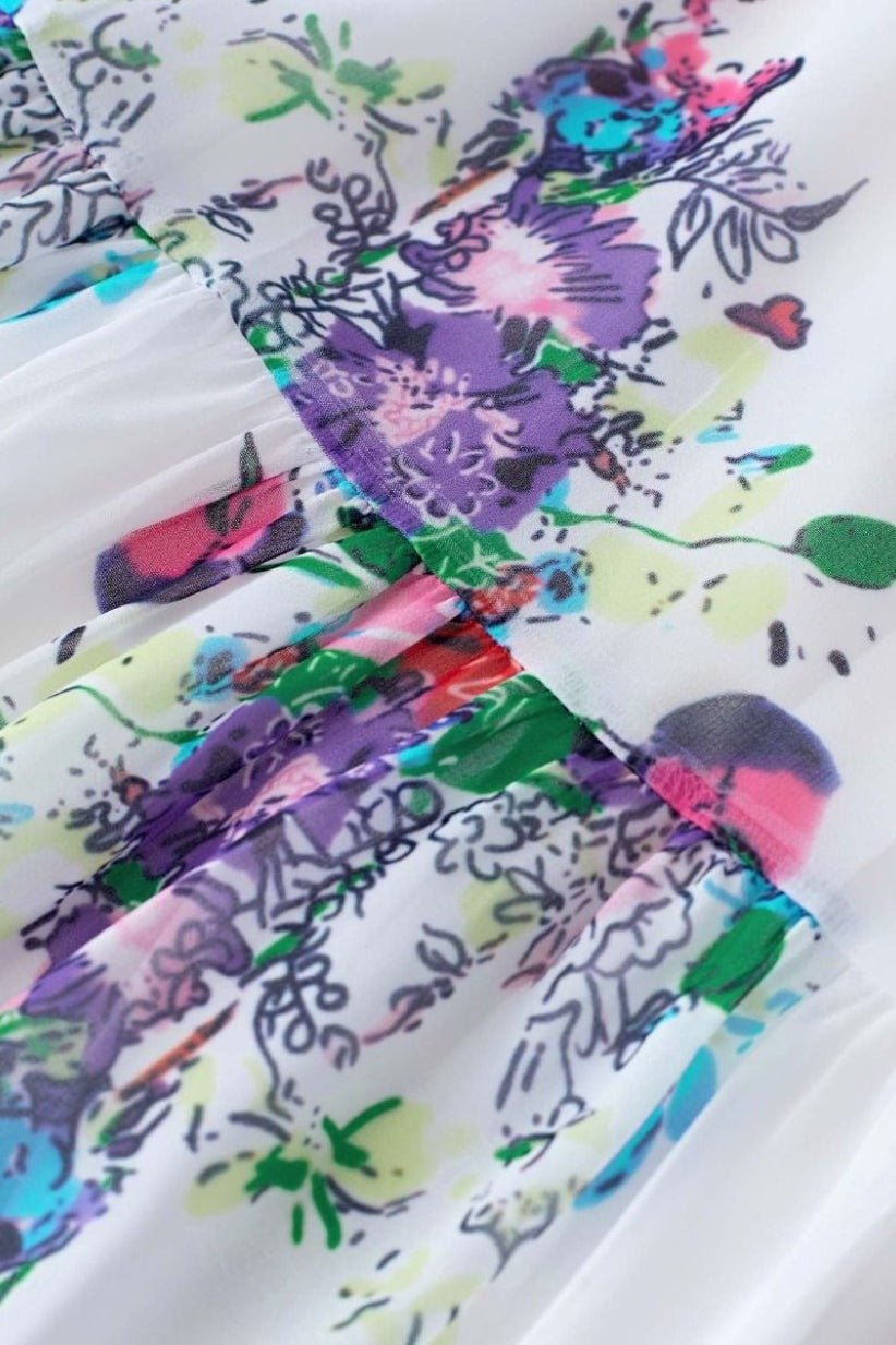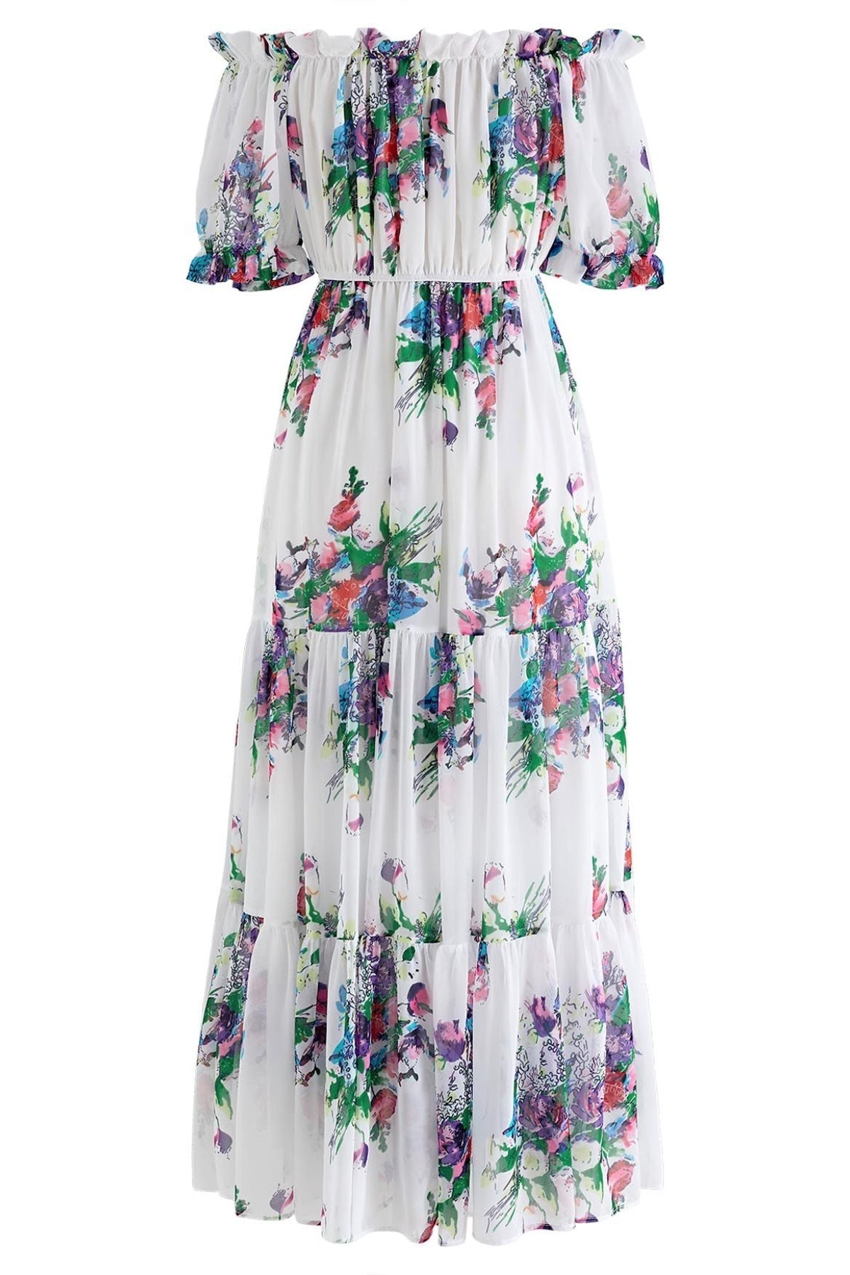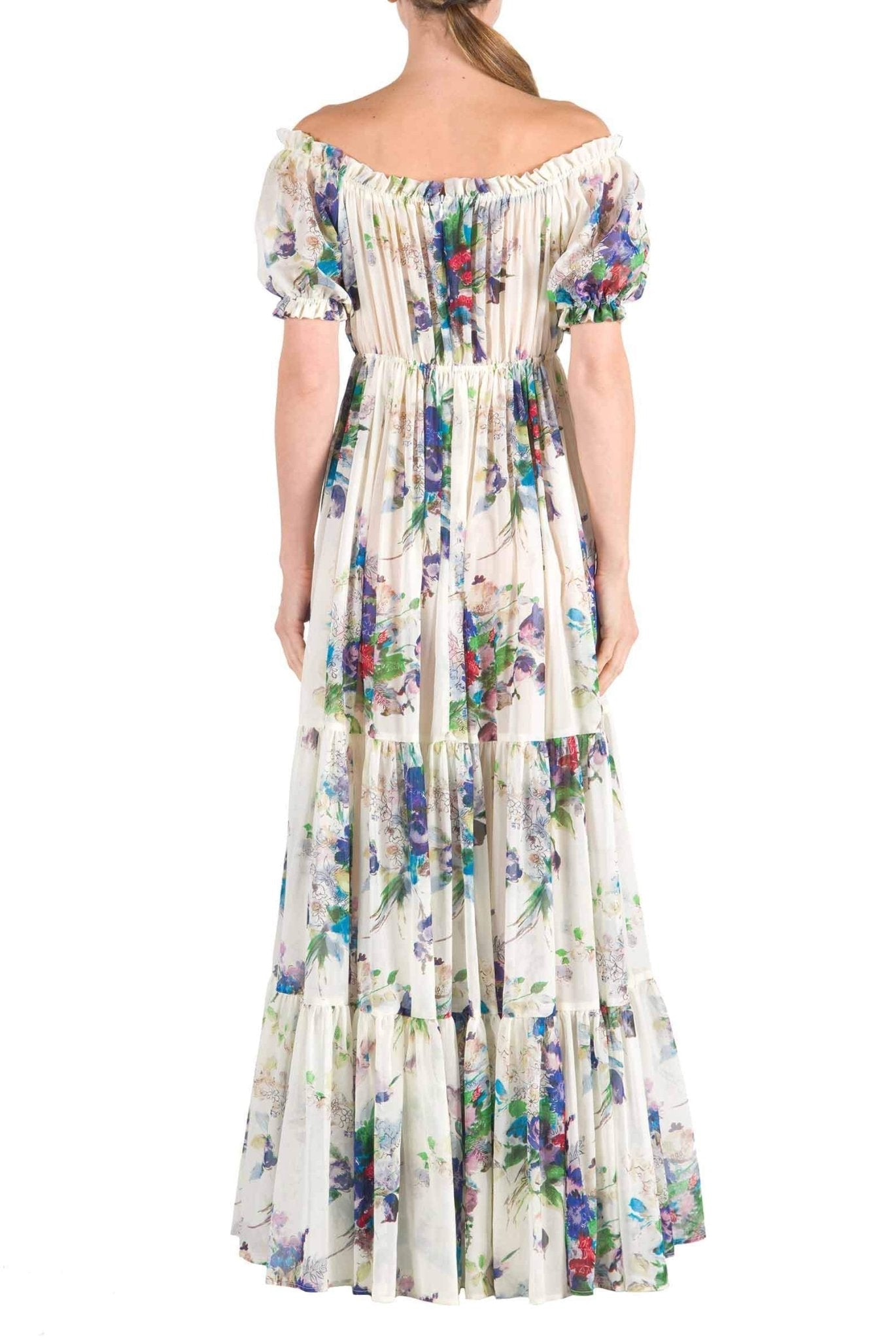 Evadane Baskılı Omuzu Açık Piliseli Maxi Elbise