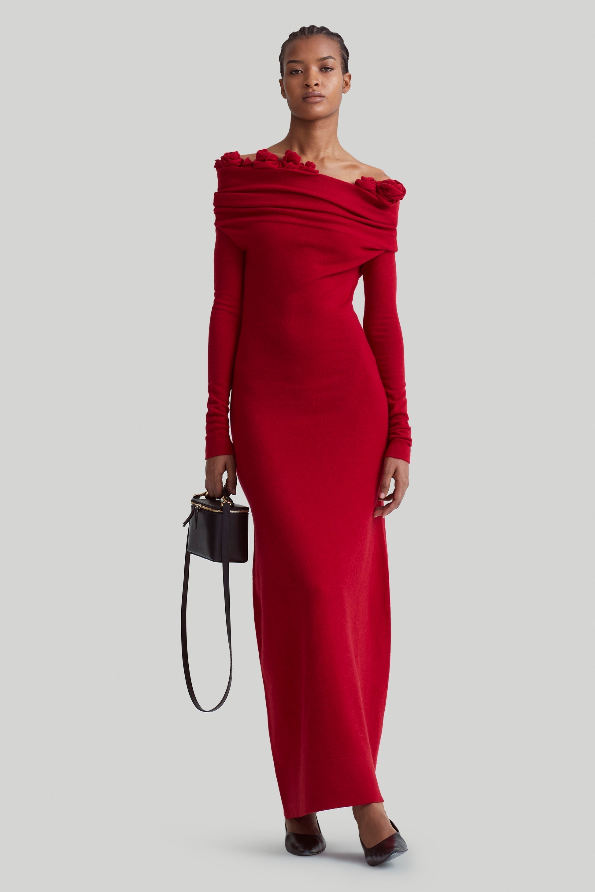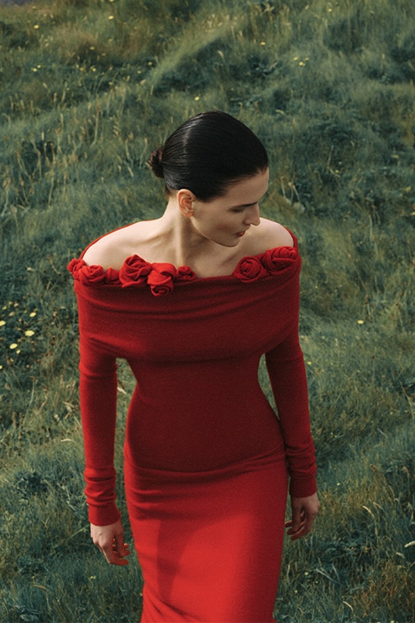 Evelyn Çiçek Aplikeli Tek Omuzlu Maxi Elbise