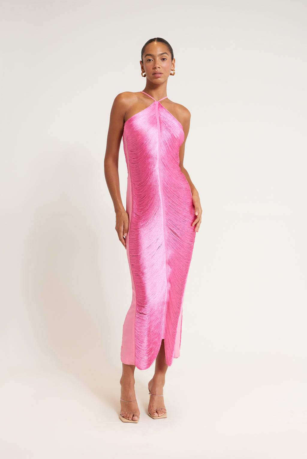 Felicia Boyundan Bağlamalı Püskül Midi Elbise