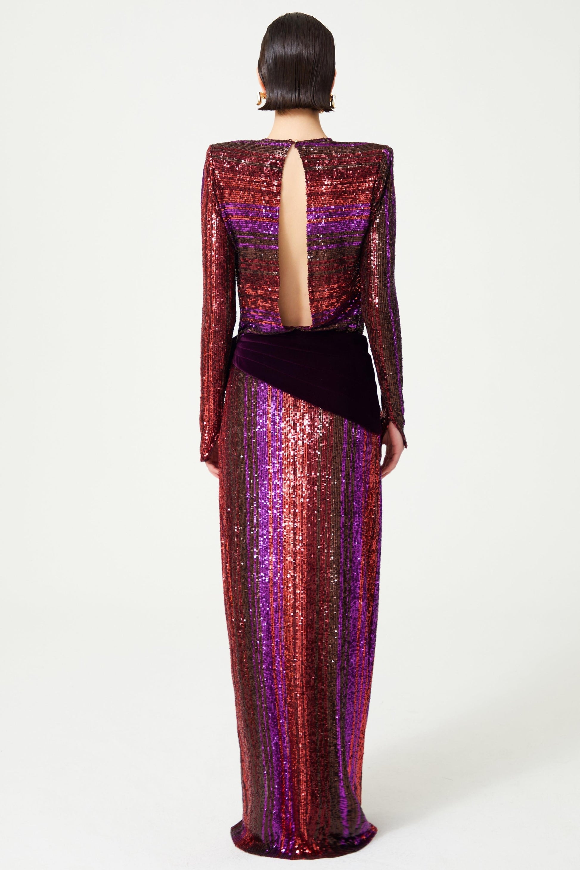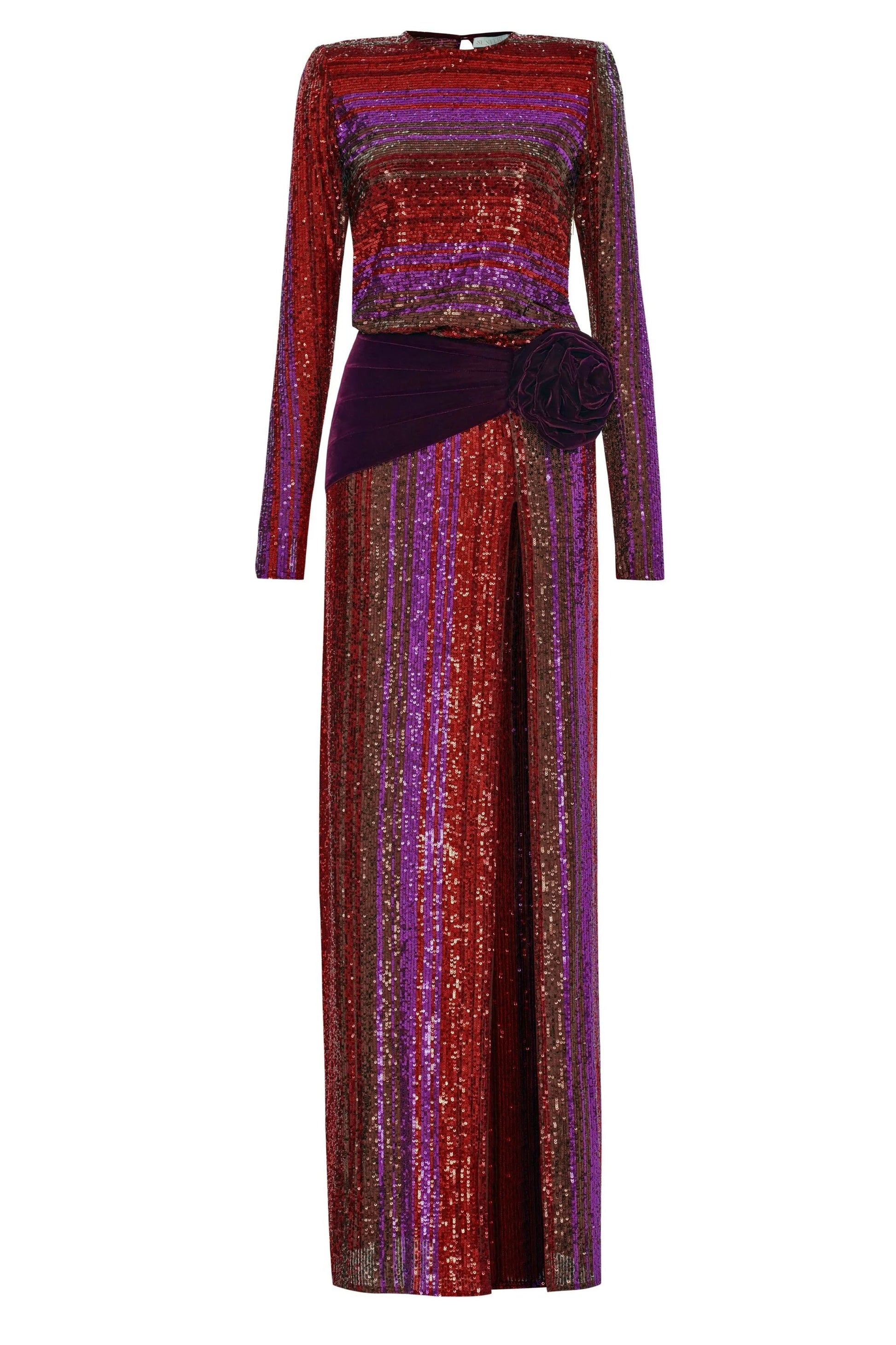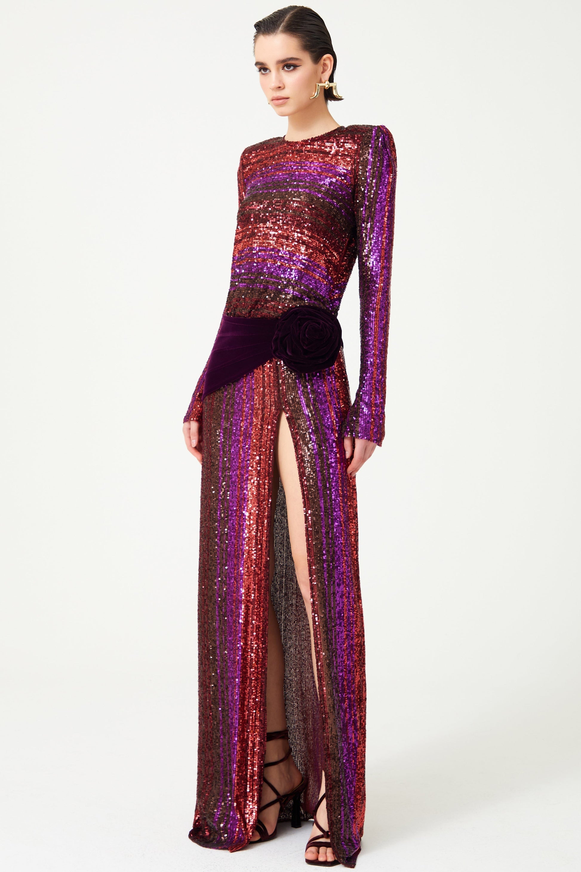 Fravia Payetler Kadife Yırtmaçlı Maxi Elbise