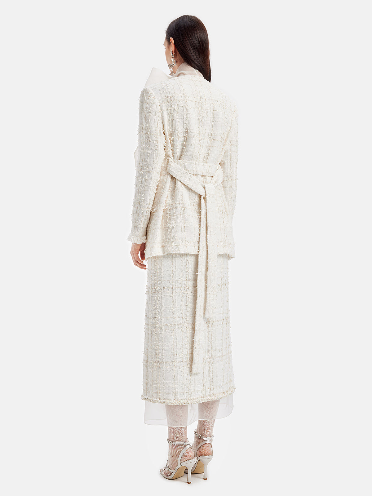 Fransız Simli Tüvit Fırfırlı Uzun Kaban