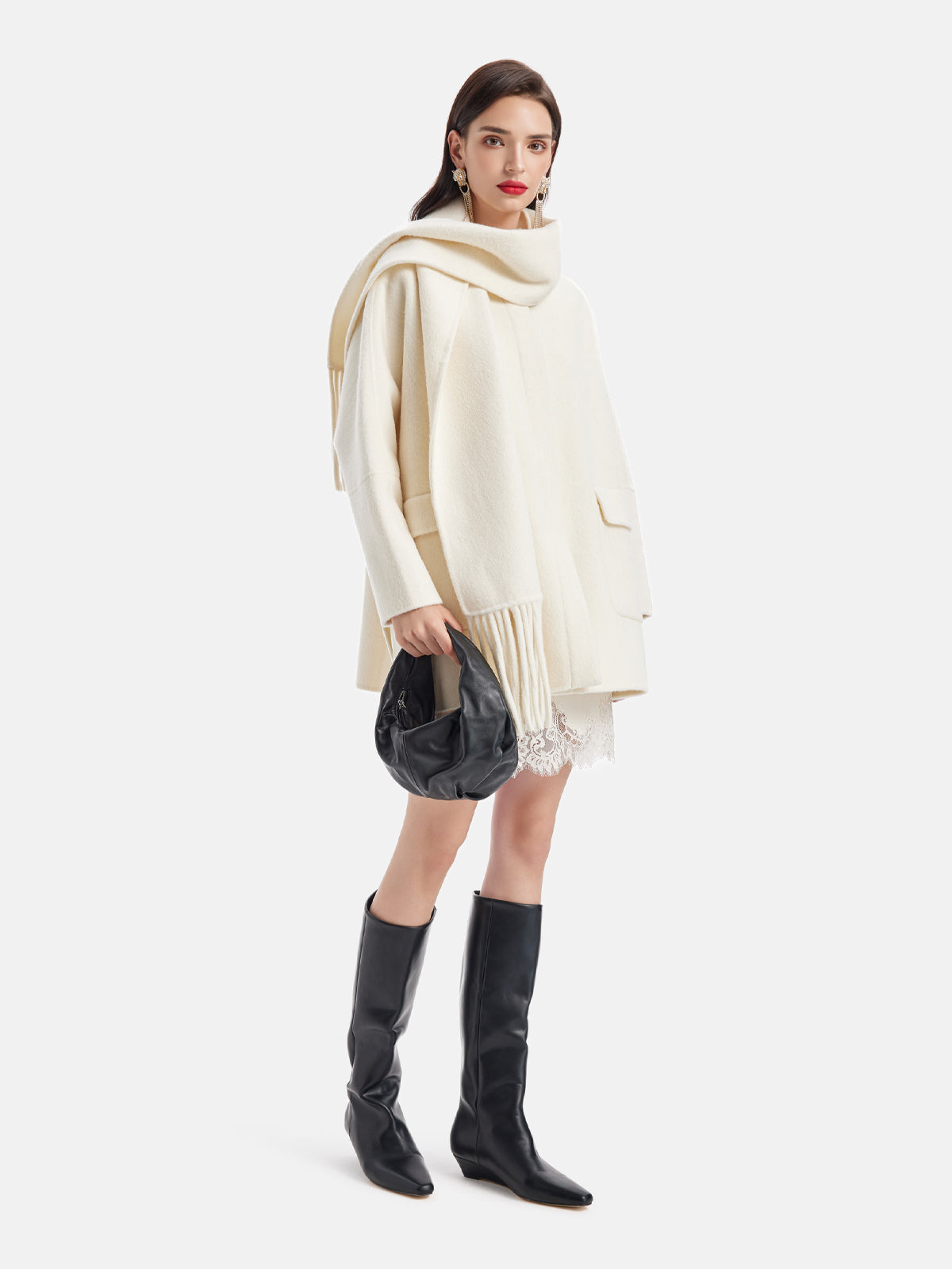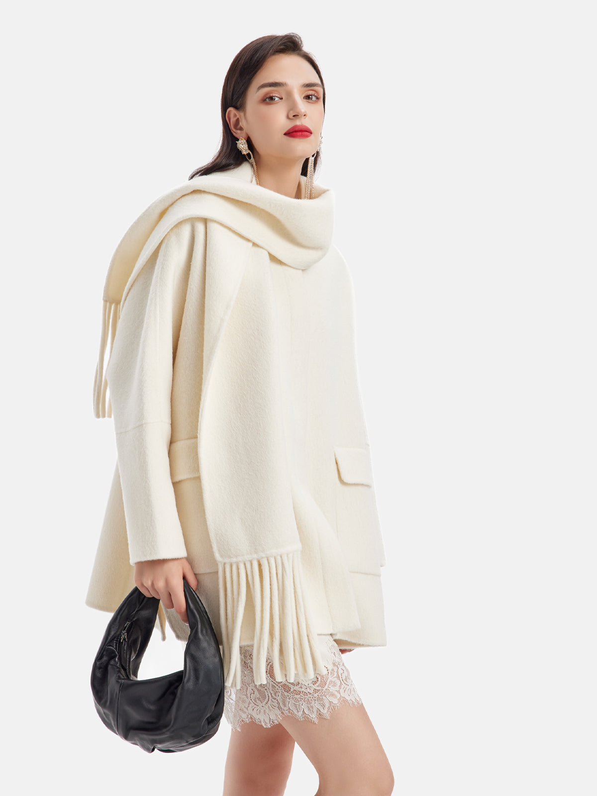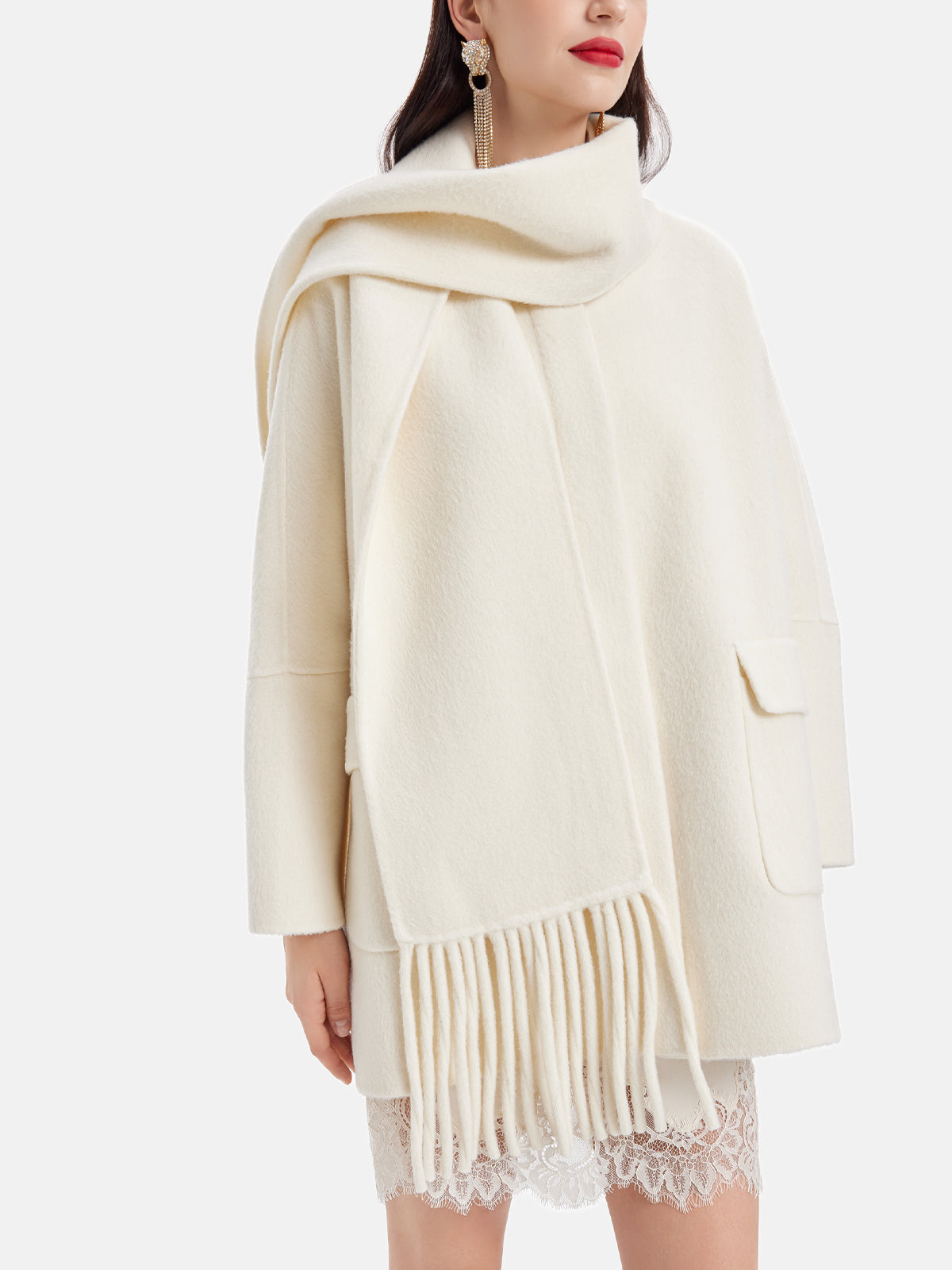Püsküllü Boyun Eşarp Kaşmir Kaban