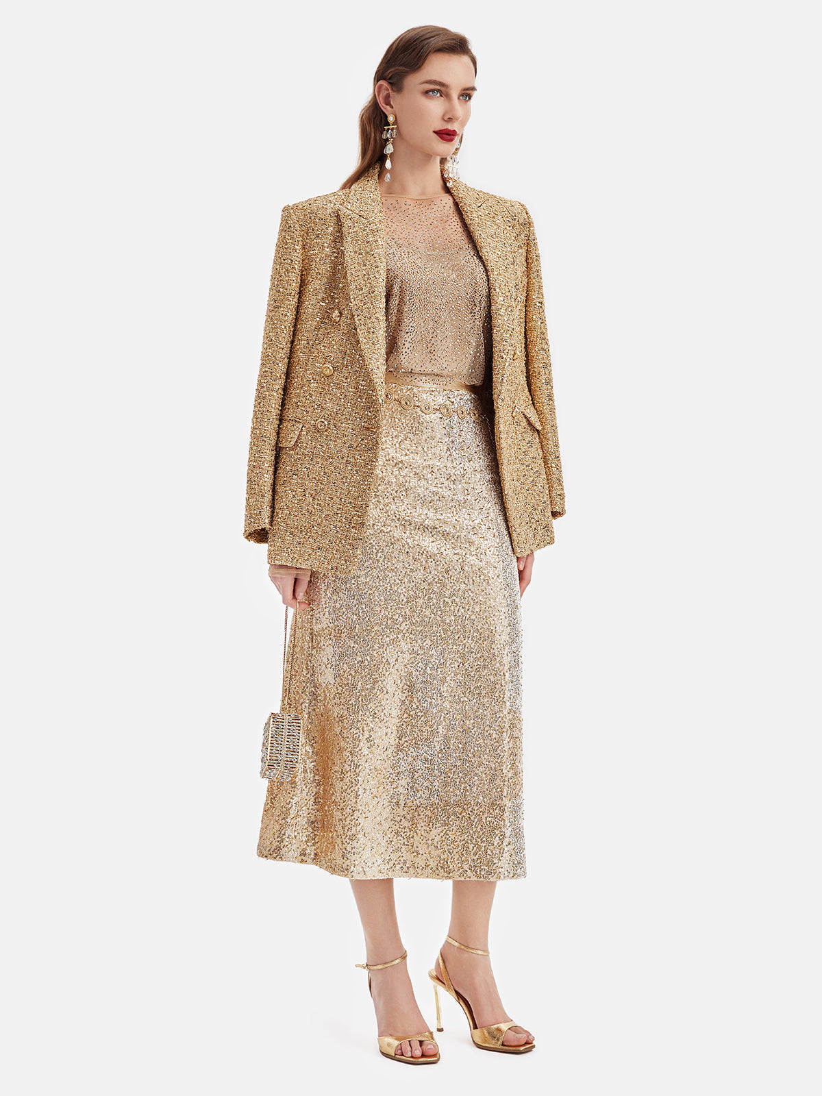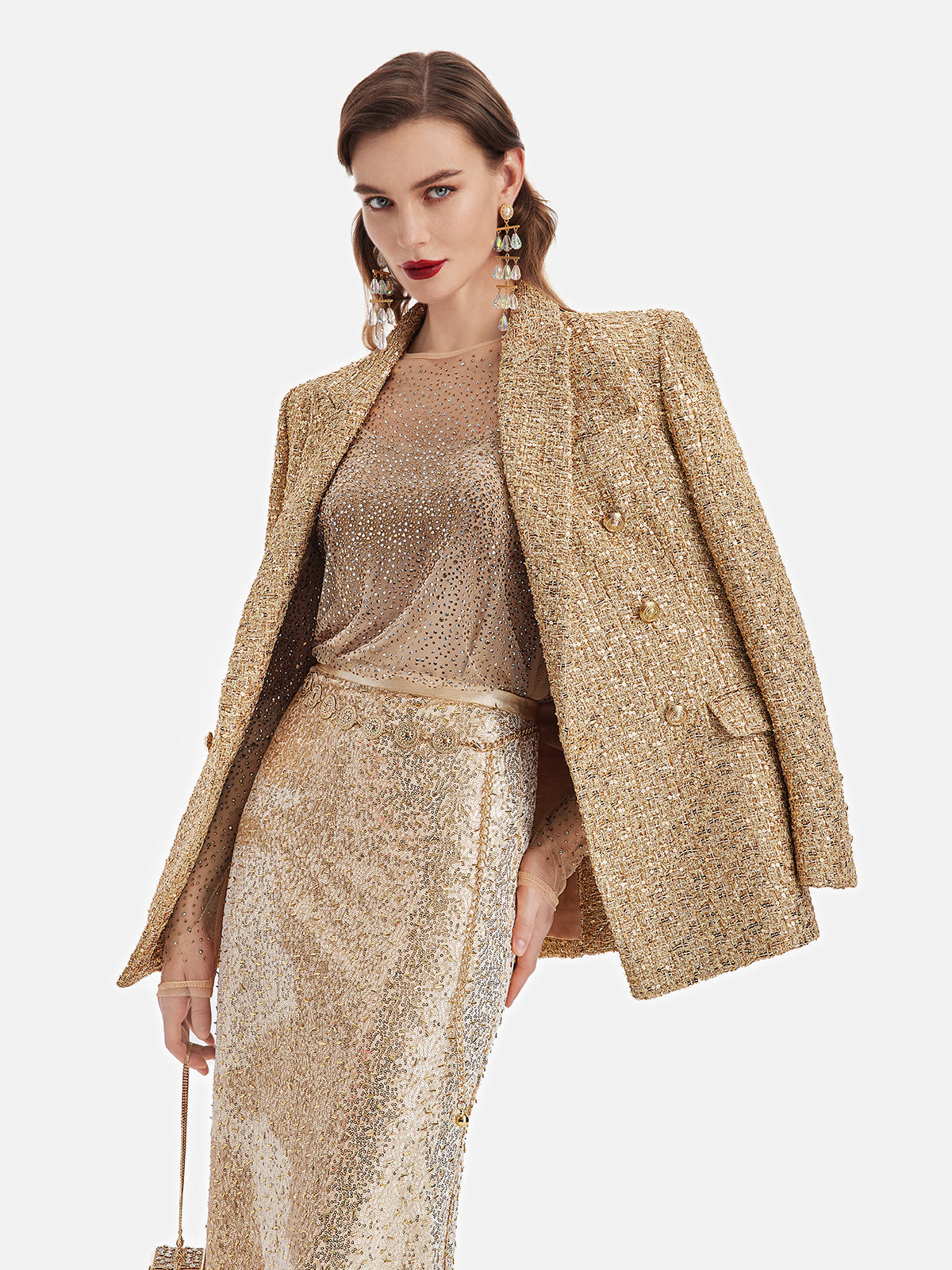 Göz Alıcı Altın Tüvit Kruvaze Ceket