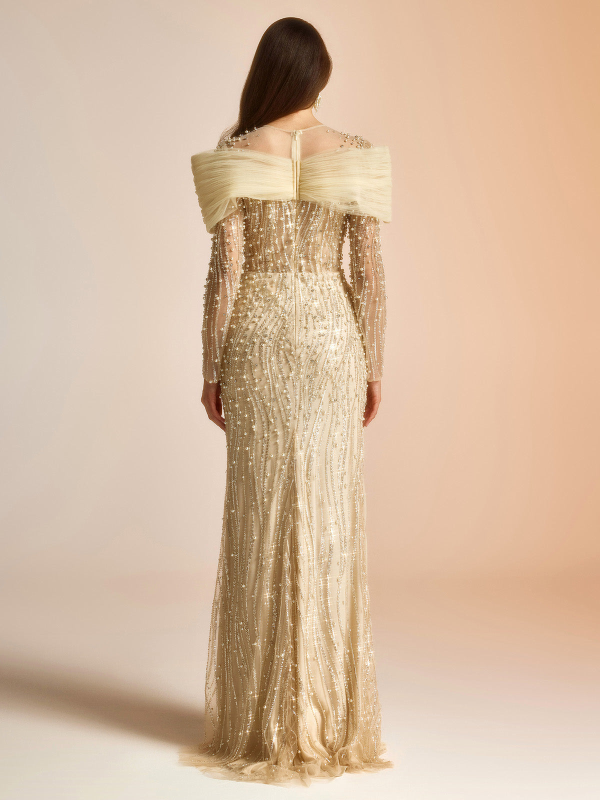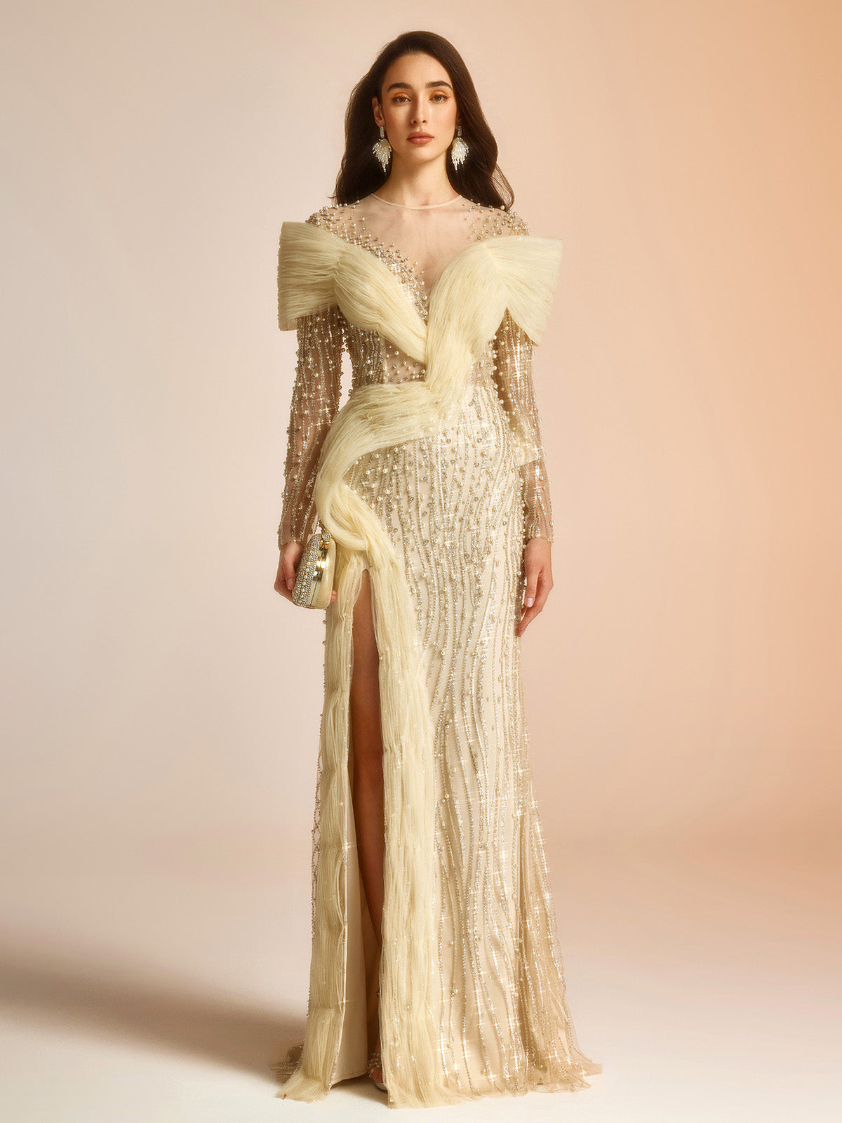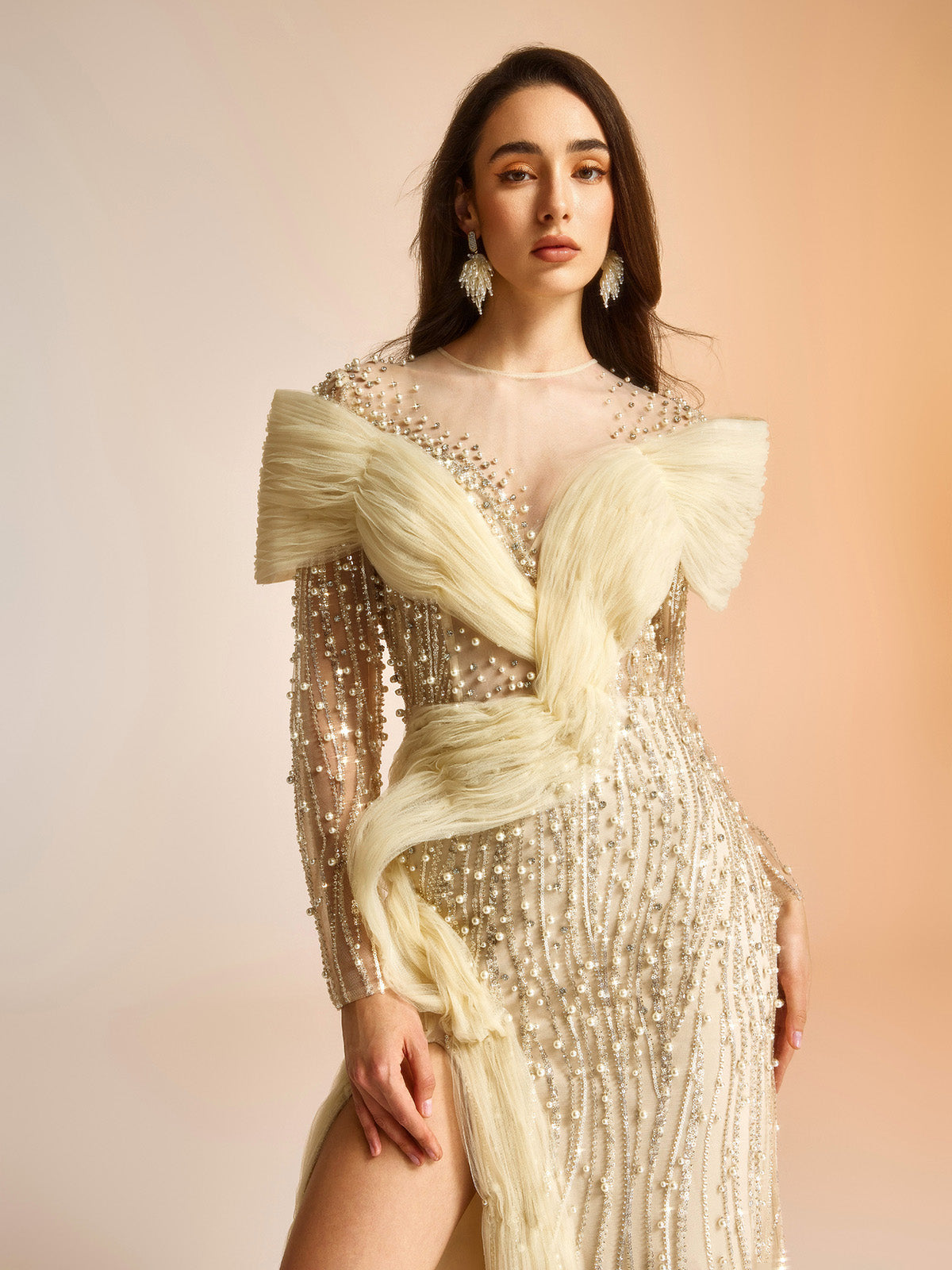 Elbiselerimiz, çağdaş tasarım unsurlarıyla klasik güzellik kavramını yeniden tanımlıyor. Zarif, vücuda oturan siluet, zarif bir görünüm yaratarak sizi gecenin parlayan yıldızı yapar. İster bir galaya, ister bir düğüne veya resmi bir akşam yemeğine katılın, bu elbise zahmetsizce göz alıcı bir görünüm için tercihiniz olacak.