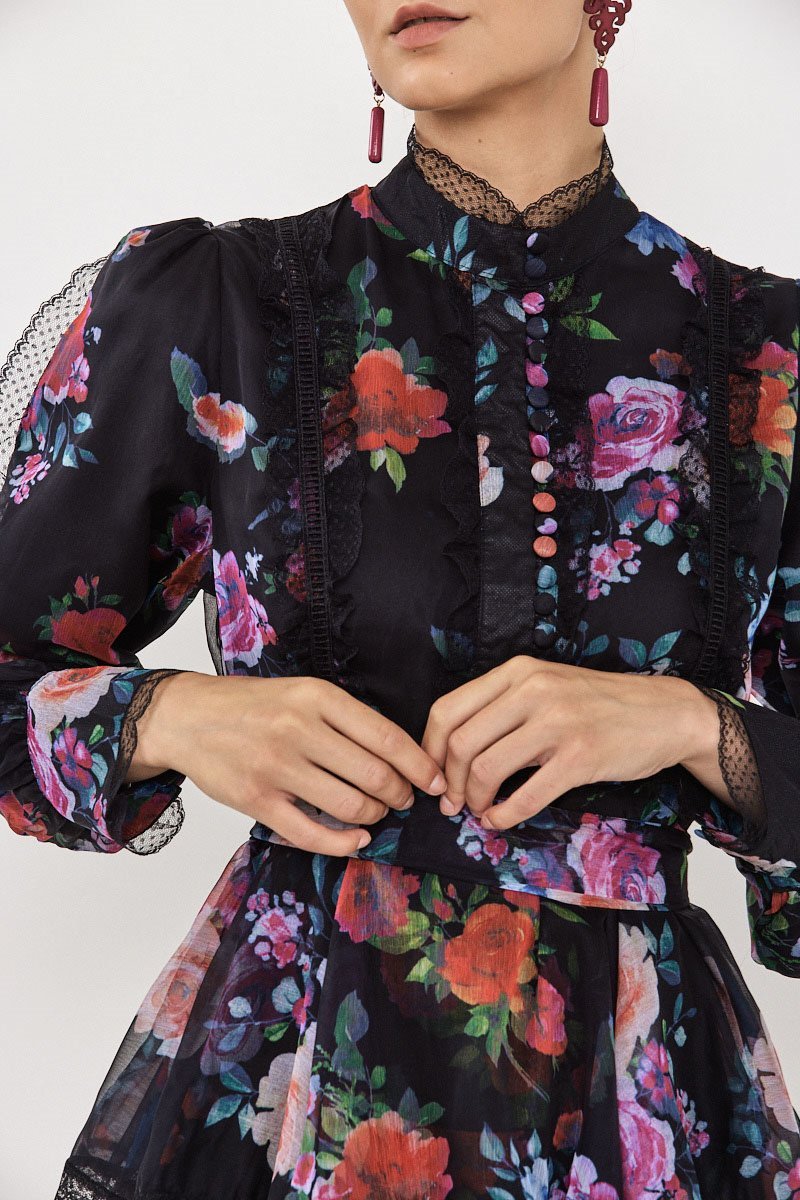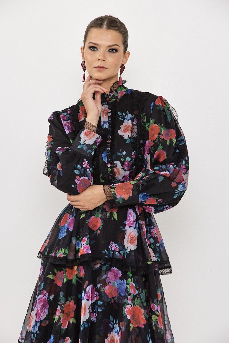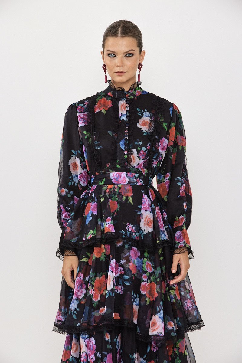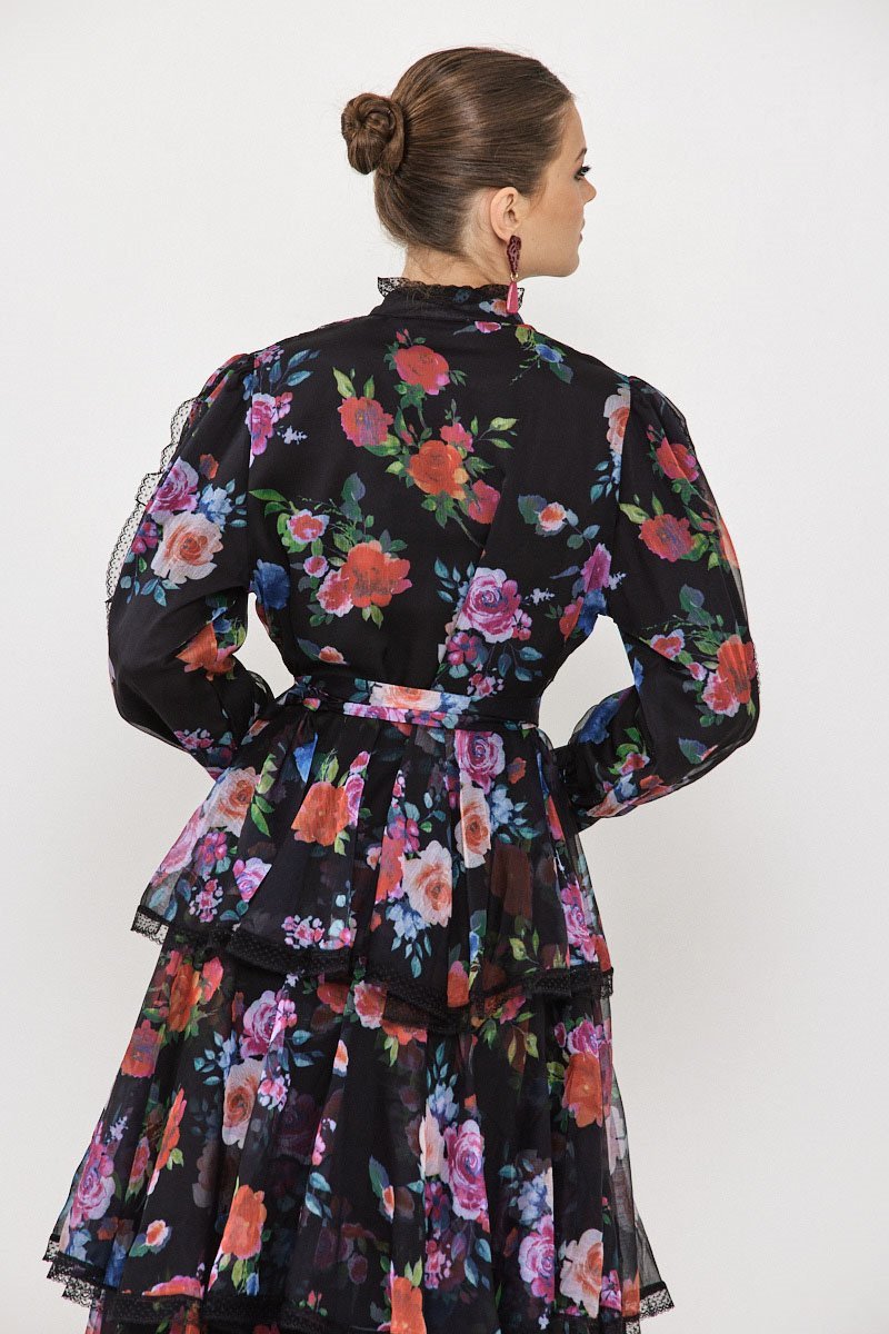 Hazel Çiçekli Katlı Şifon Maxi Elbise