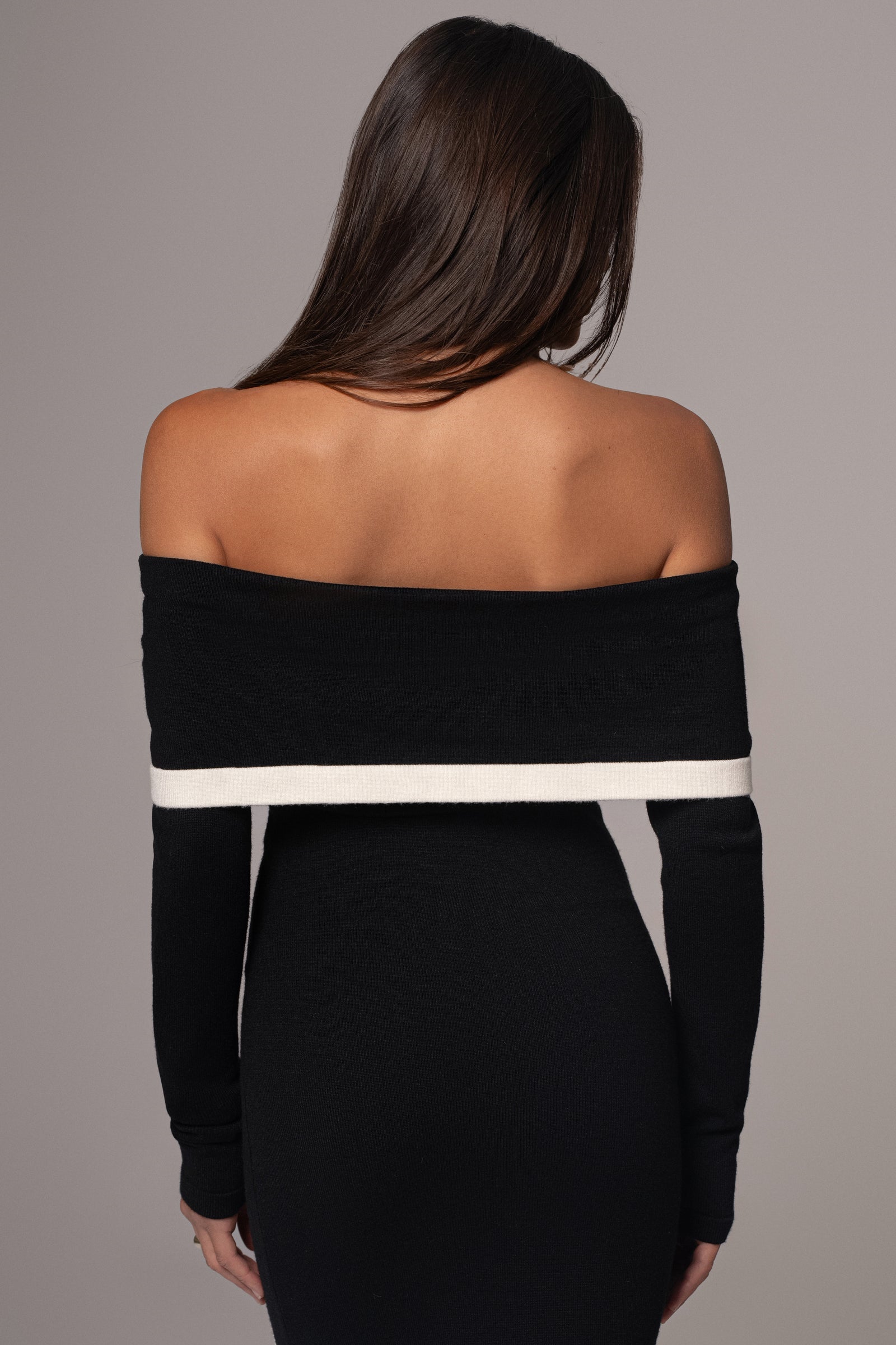 Helen Düşük Omuz Kontrast Uzun Elbise