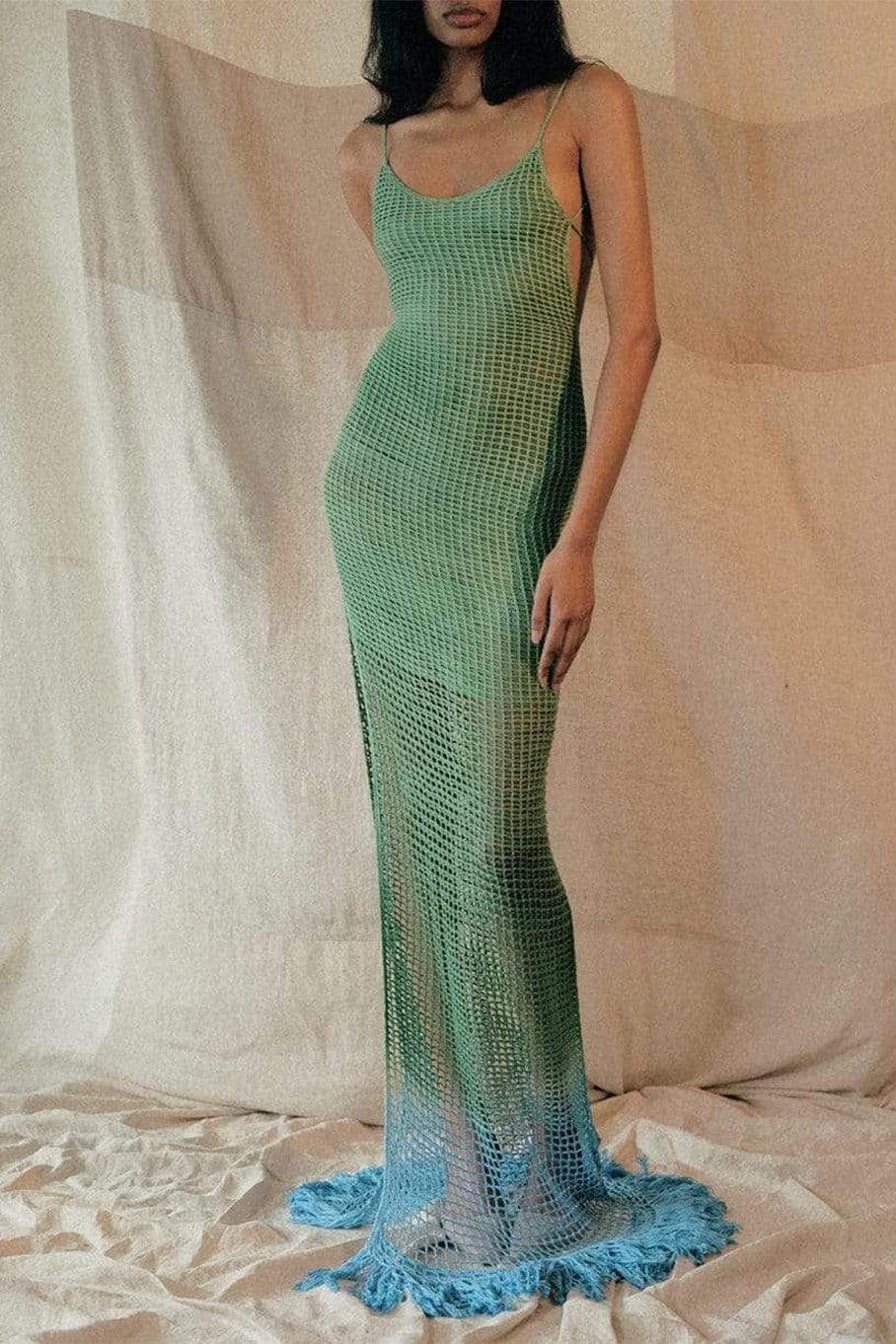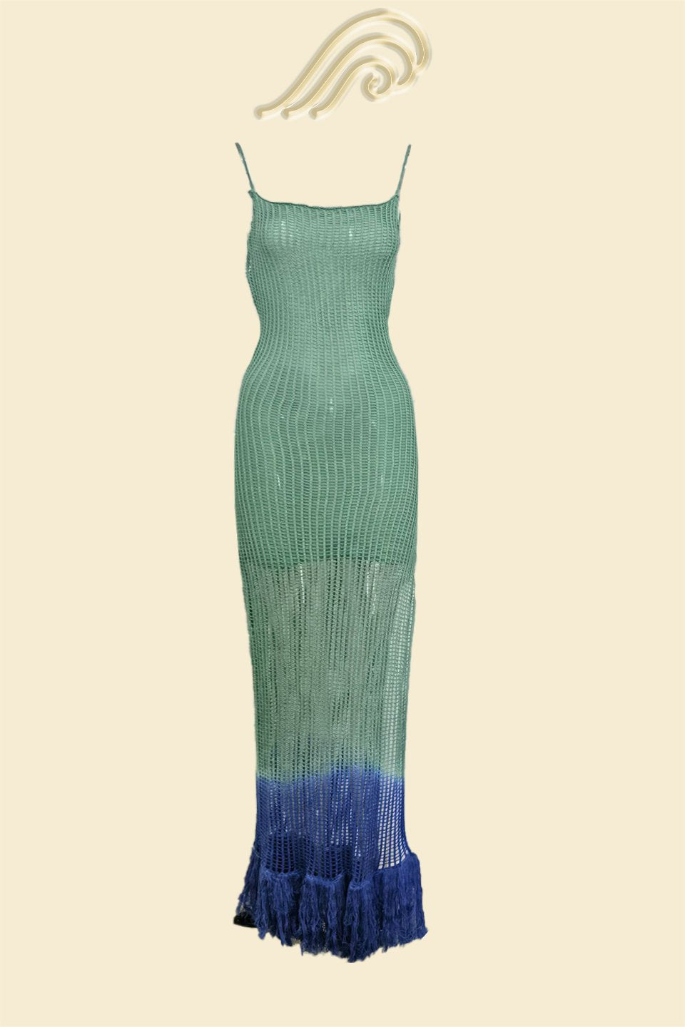 Janet Boyundan Bağlamalı Püskül Tığ İşi Maxi Elbise