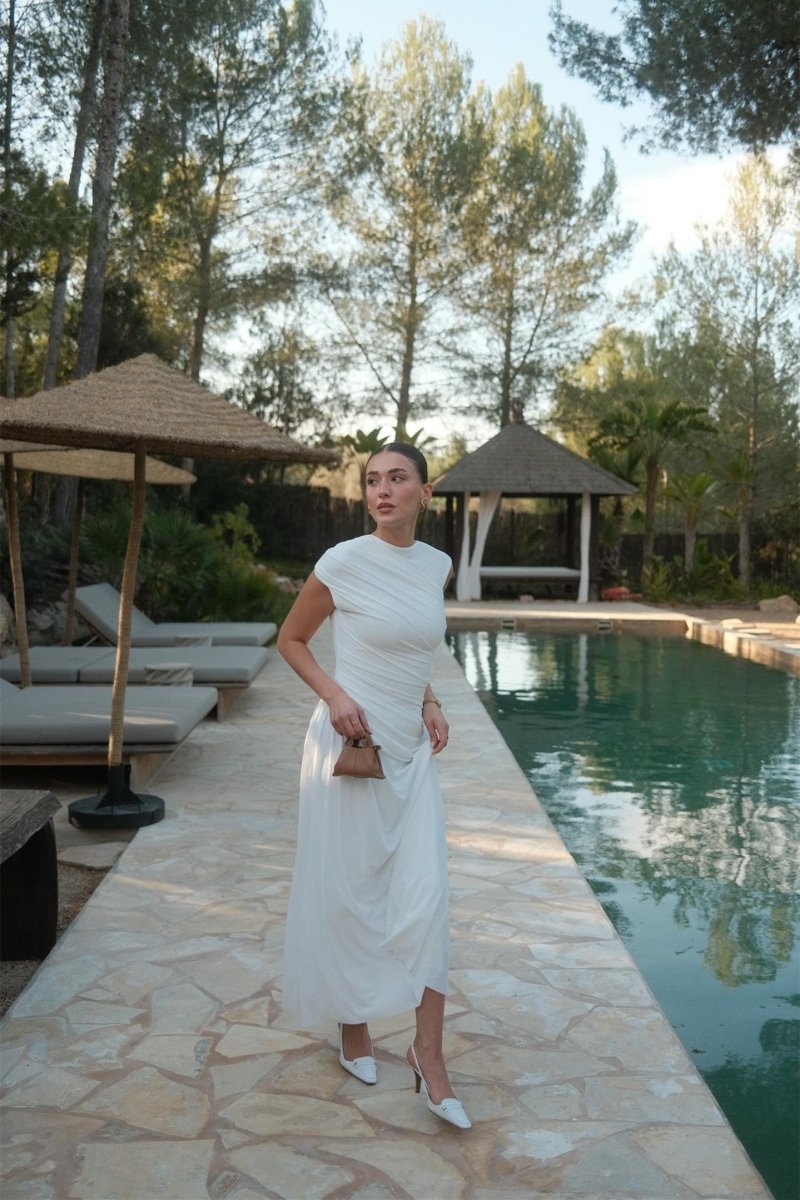 Elbiselerimiz, çağdaş tasarım unsurlarıyla klasik güzellik kavramını yeniden tanımlıyor. Zarif, vücuda oturan siluet, zarif bir görünüm yaratarak sizi gecenin parlayan yıldızı yapar. İster bir galaya, ister bir düğüne veya resmi bir akşam yemeğine katılın, bu elbise zahmetsizce göz alıcı bir görünüm için tercihiniz olacak.