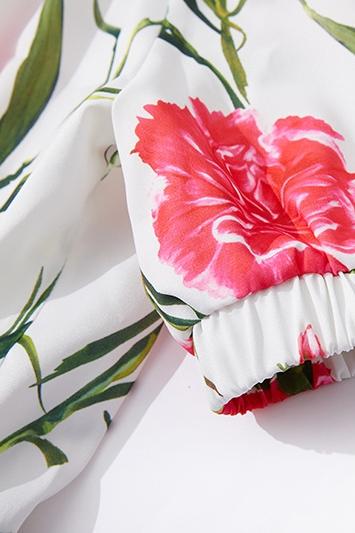 Jemima Baskılı Düşük Omuz Büzgülü Mini Elbise