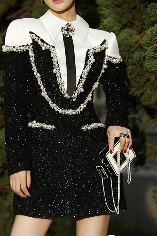 Jessie Uzun Kollu Payetler Tüvit Mini Elbise
