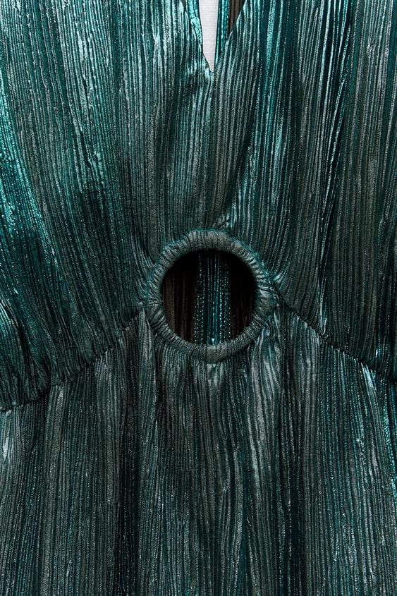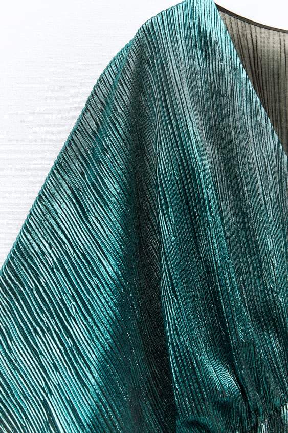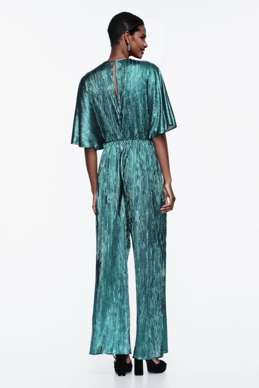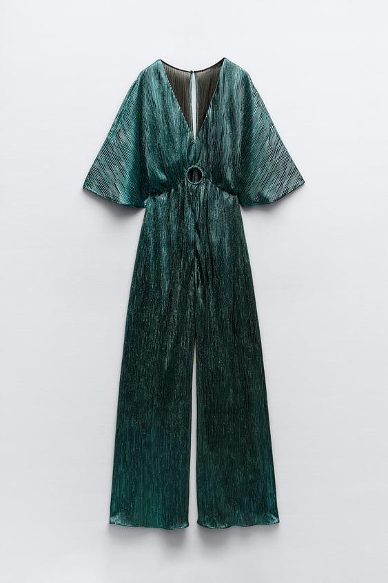 Jocelyn V Yaka Metalik Plise Tulum
