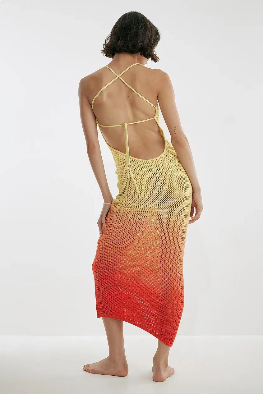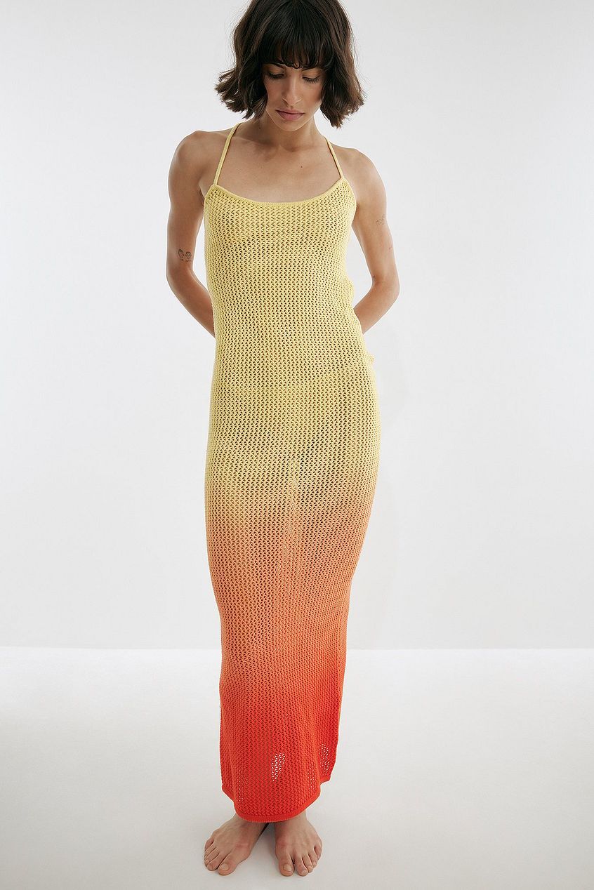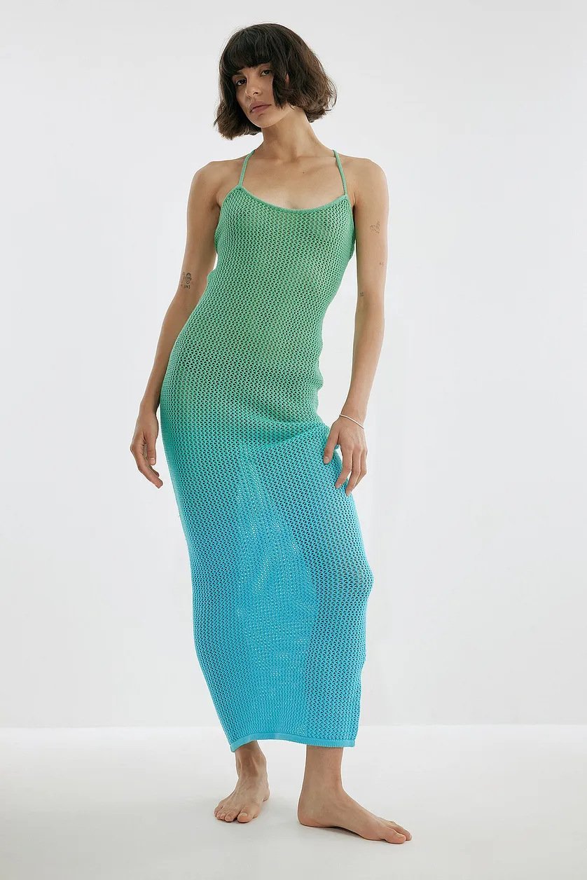 Jodie Degrade Boyundan Bağlı Örgü Maxi Elbise