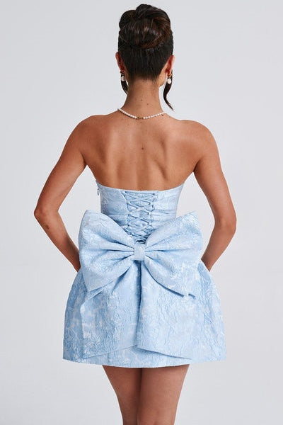 Julie Çiçekli Jakarlı Bağcıklı Mini Elbise