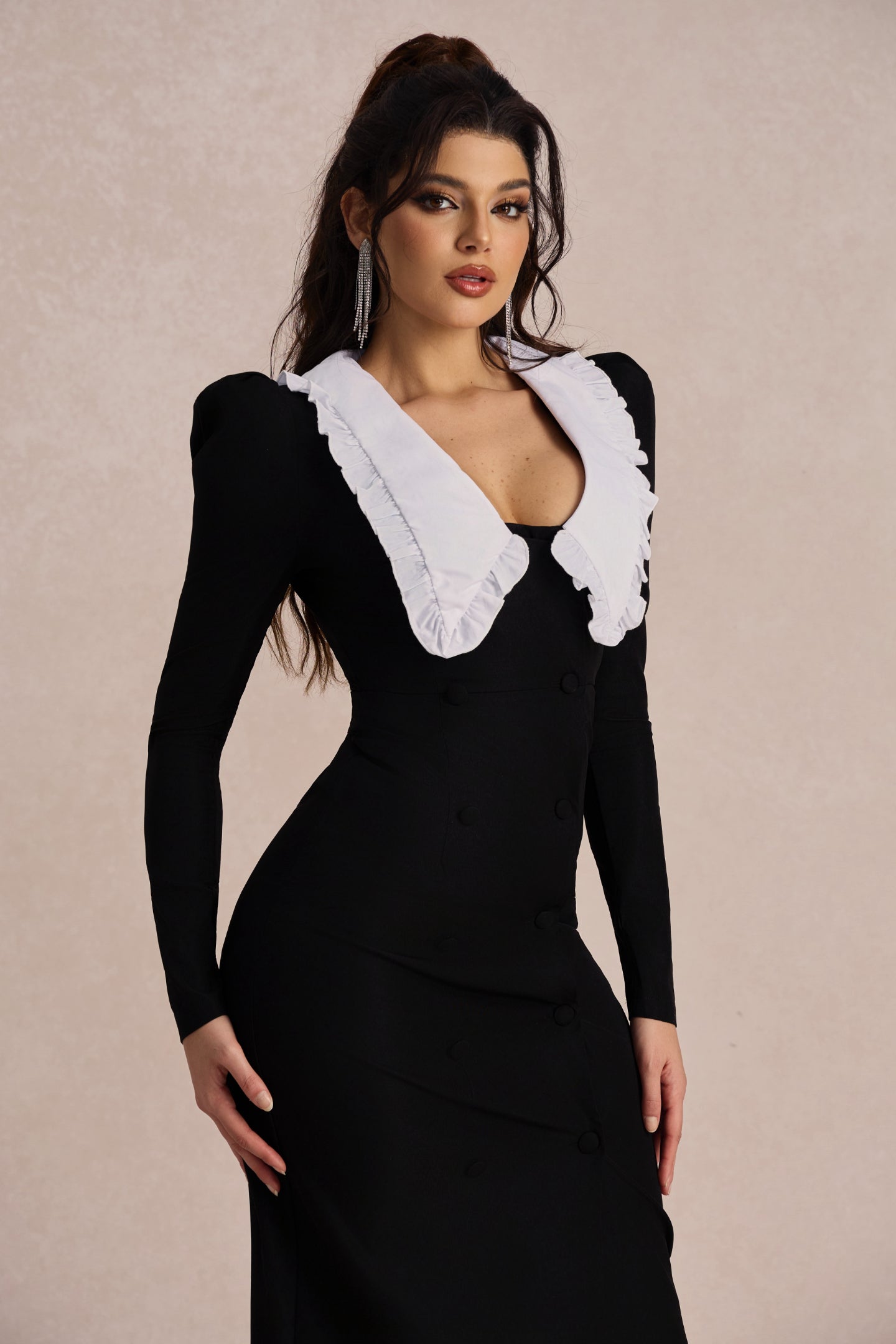 Elbiselerimiz, çağdaş tasarım unsurlarıyla klasik güzellik kavramını yeniden tanımlıyor. Zarif, vücuda oturan siluet, zarif bir görünüm yaratarak sizi gecenin parlayan yıldızı yapar. İster bir galaya, ister bir düğüne veya resmi bir akşam yemeğine katılın, bu elbise zahmetsizce göz alıcı bir görünüm için tercihiniz olacak.