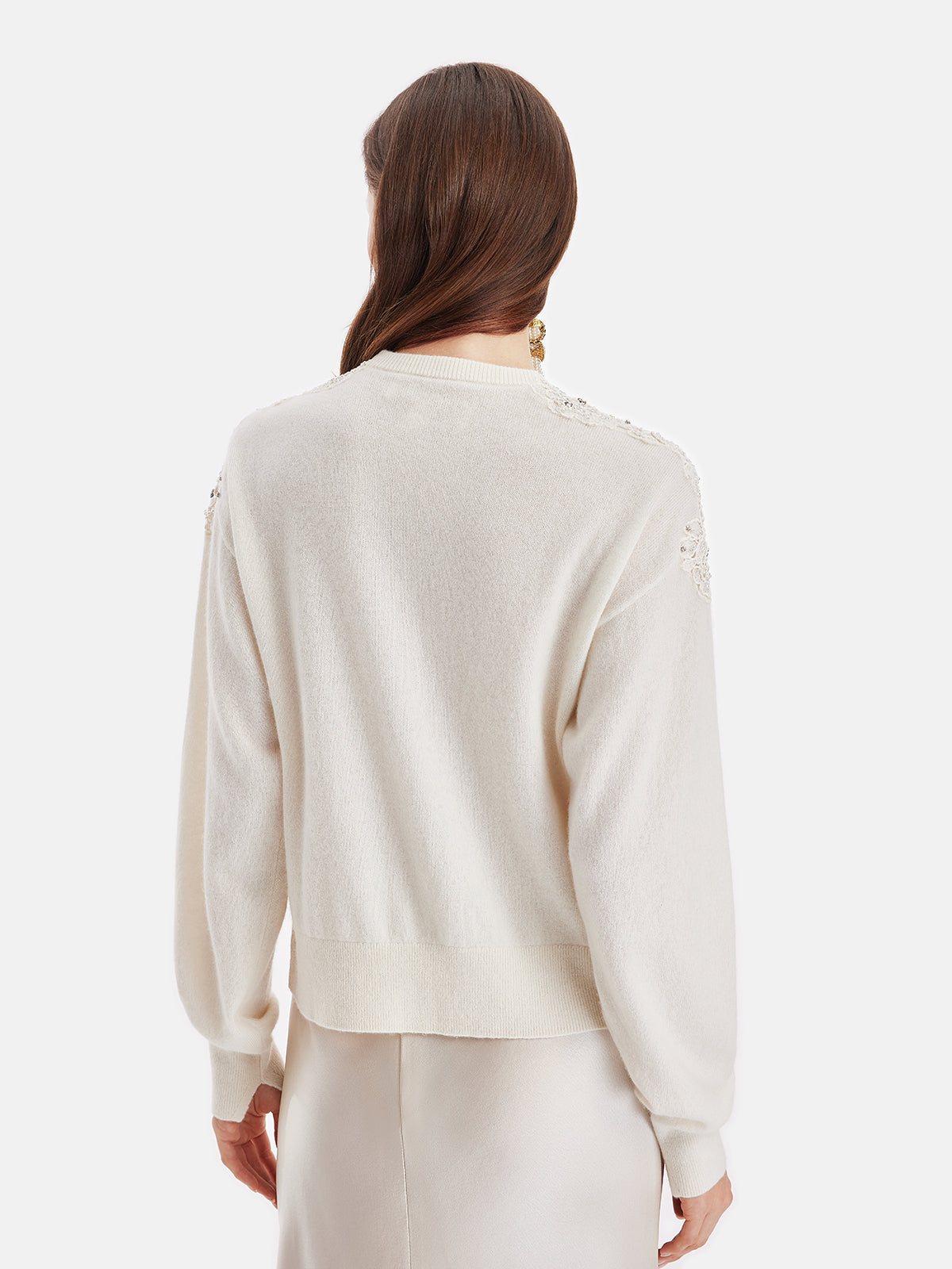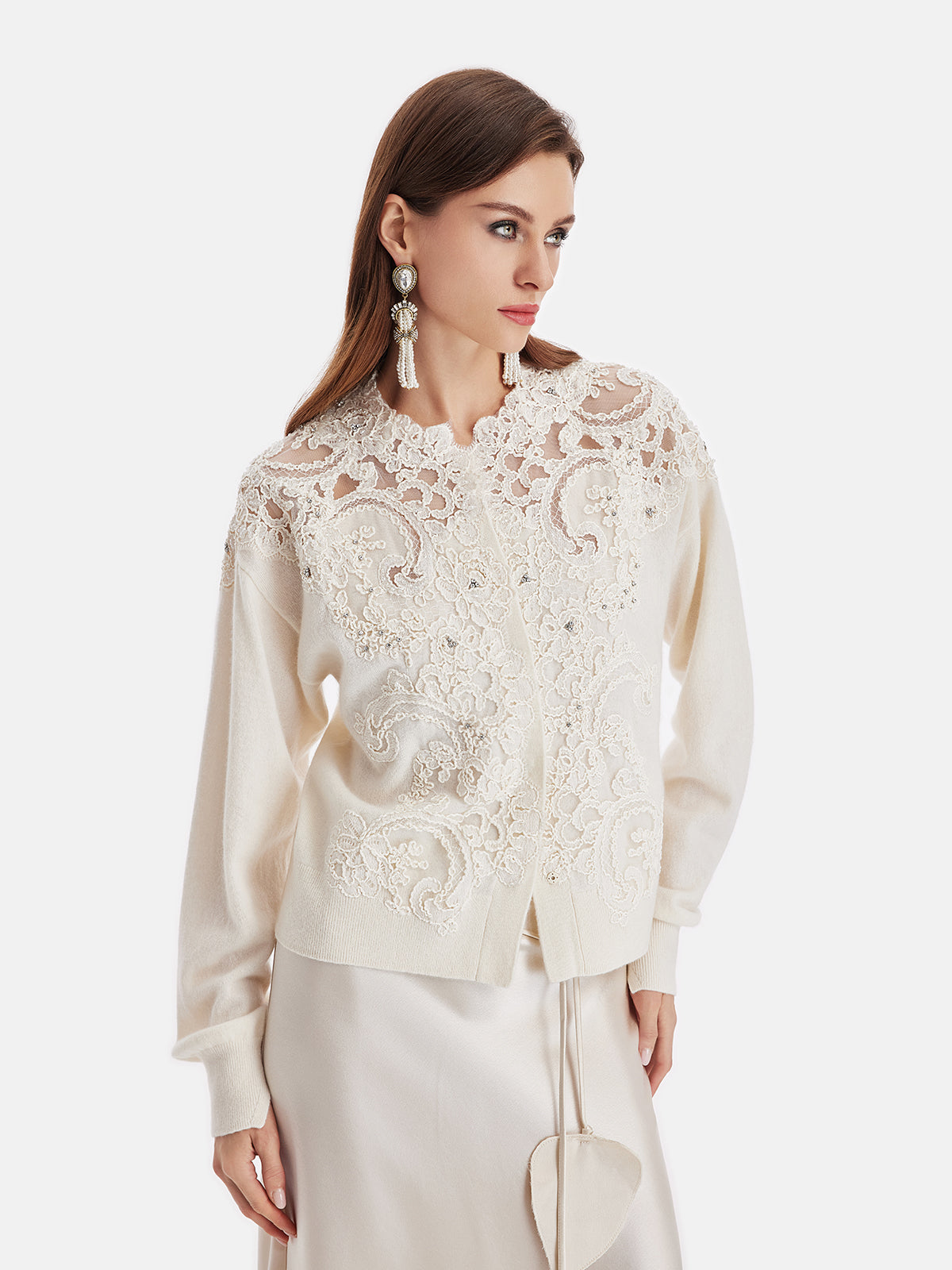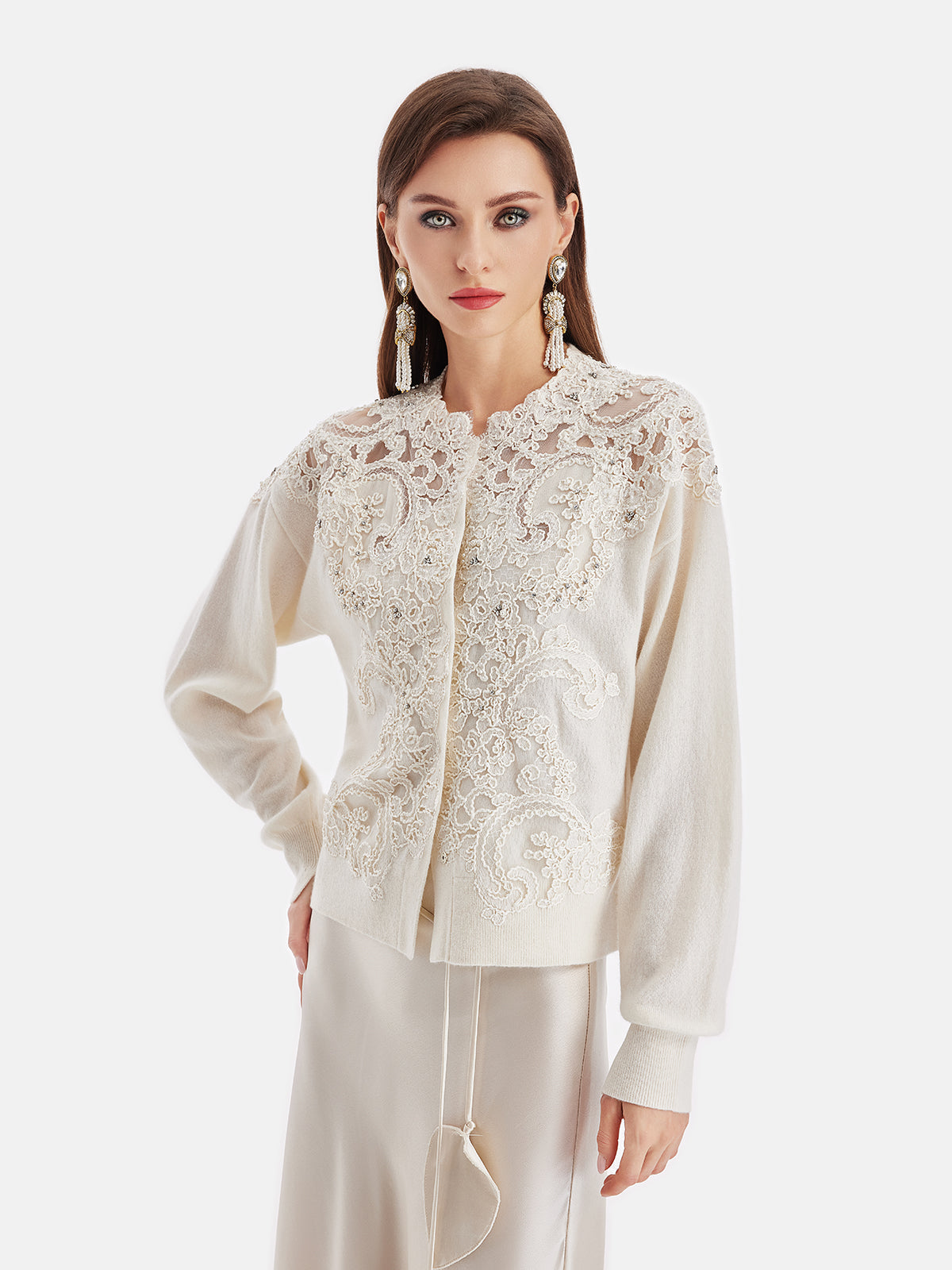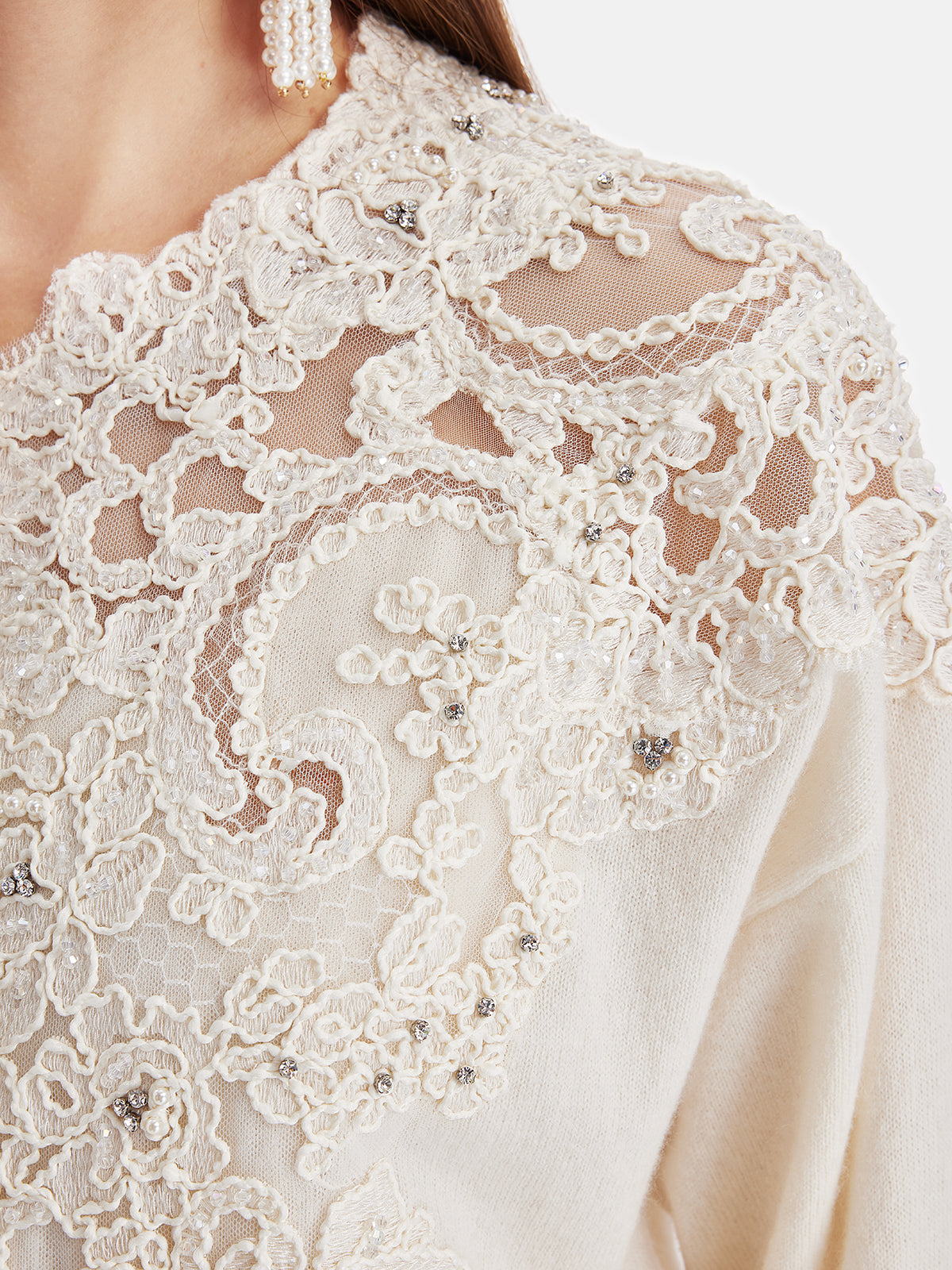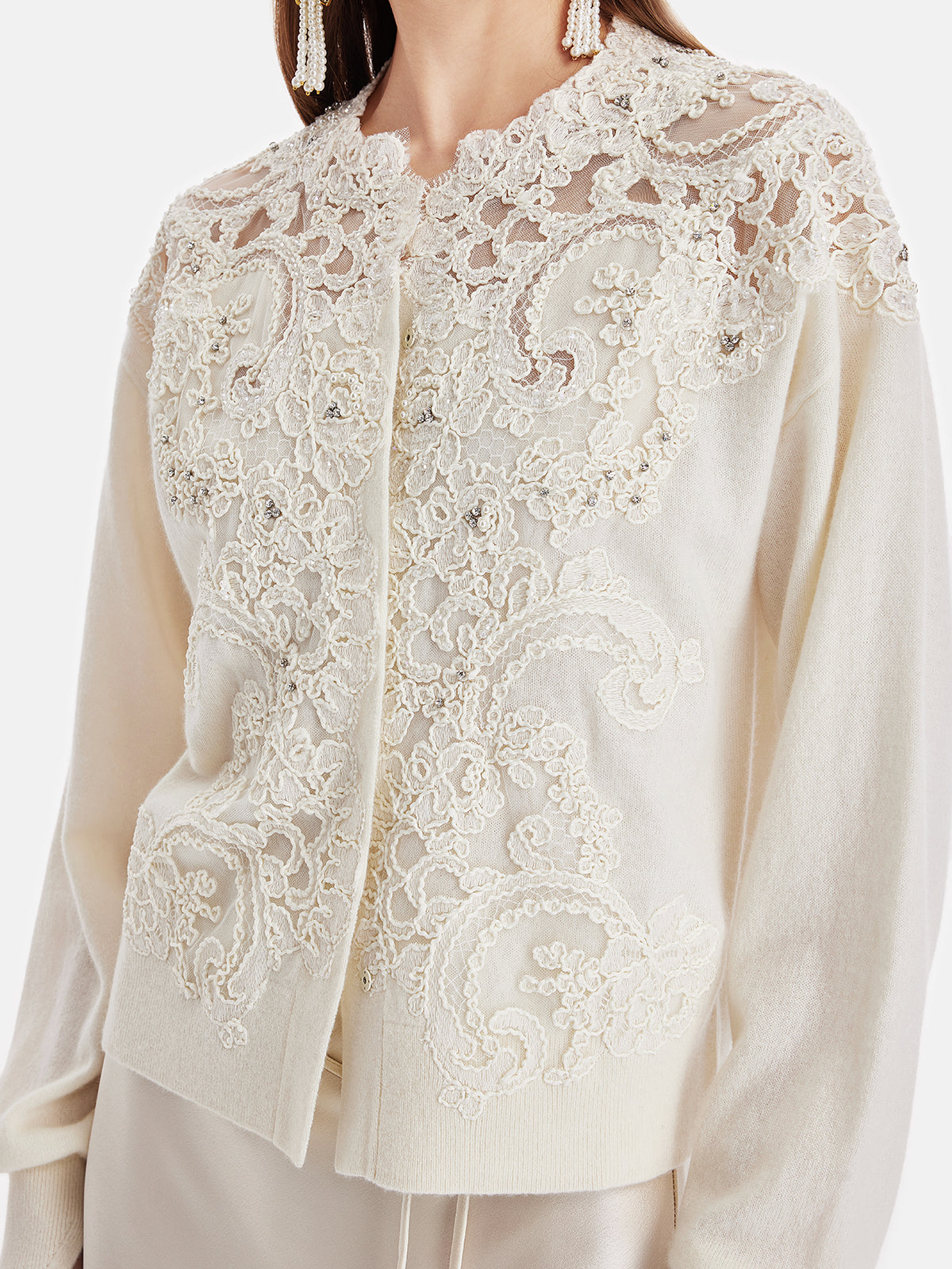 Dantel Çiçek İşlemeli Kaşmir Hırka
