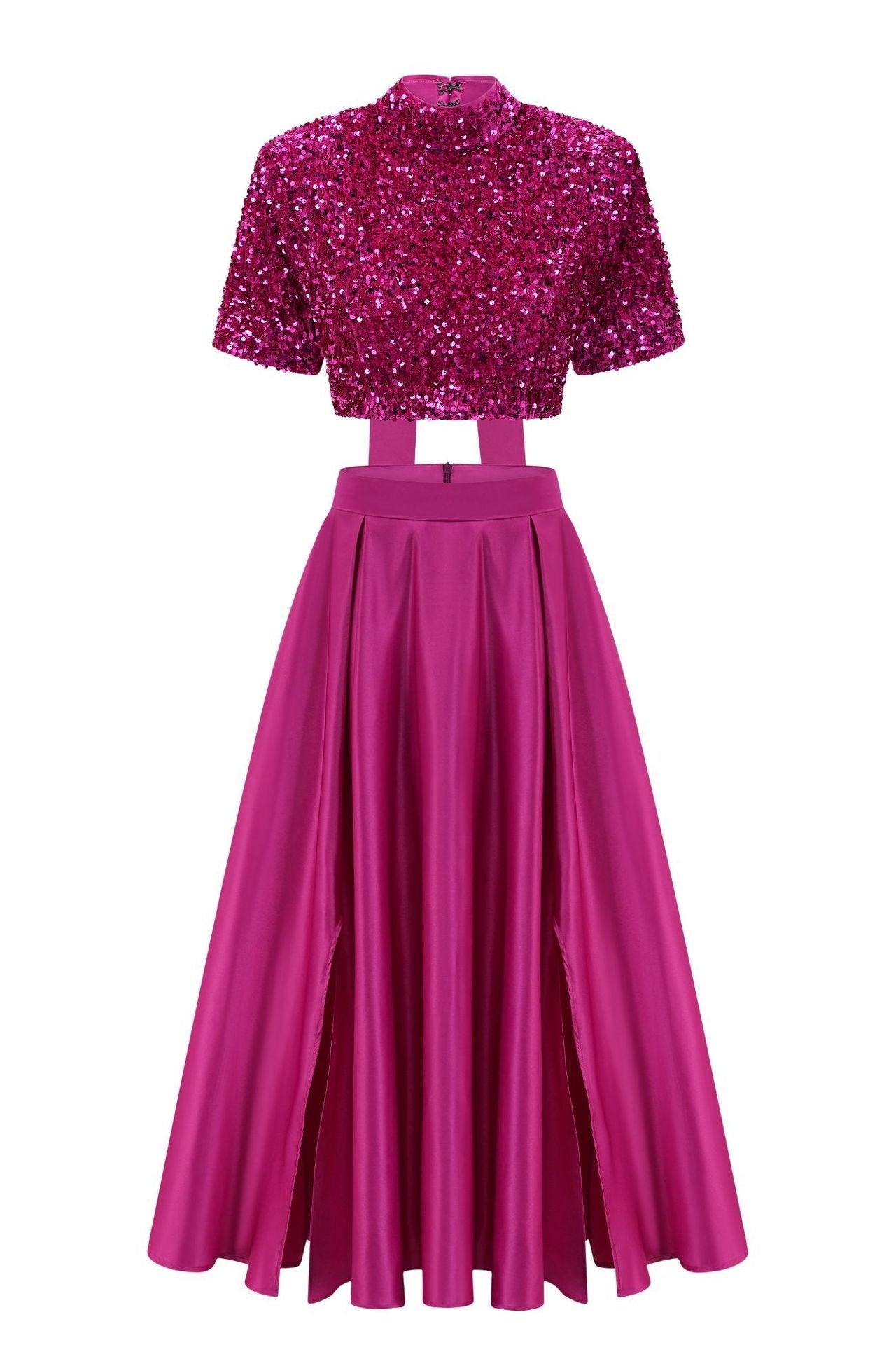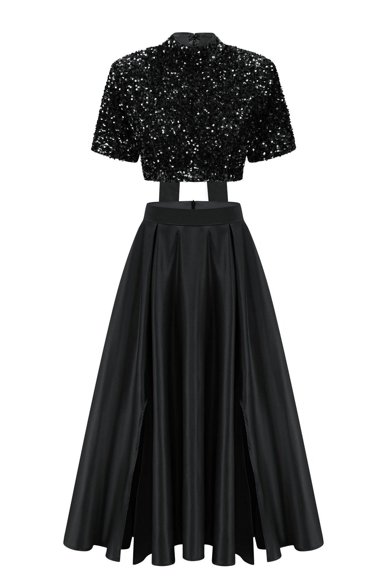 Leia Papyonlu Payet Yırtmaçlı Takım