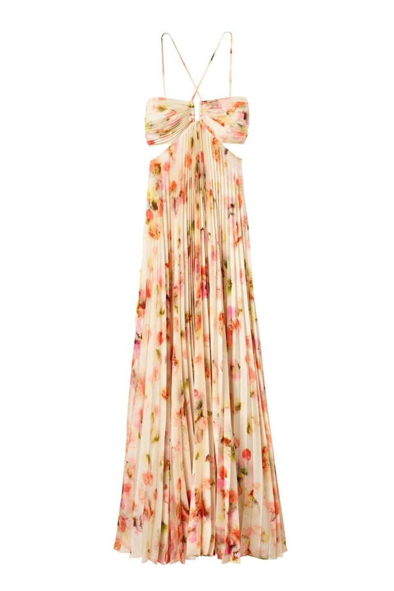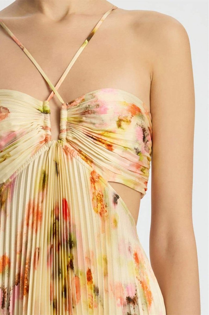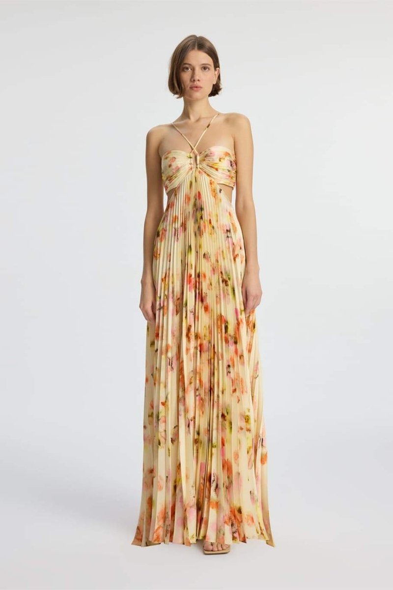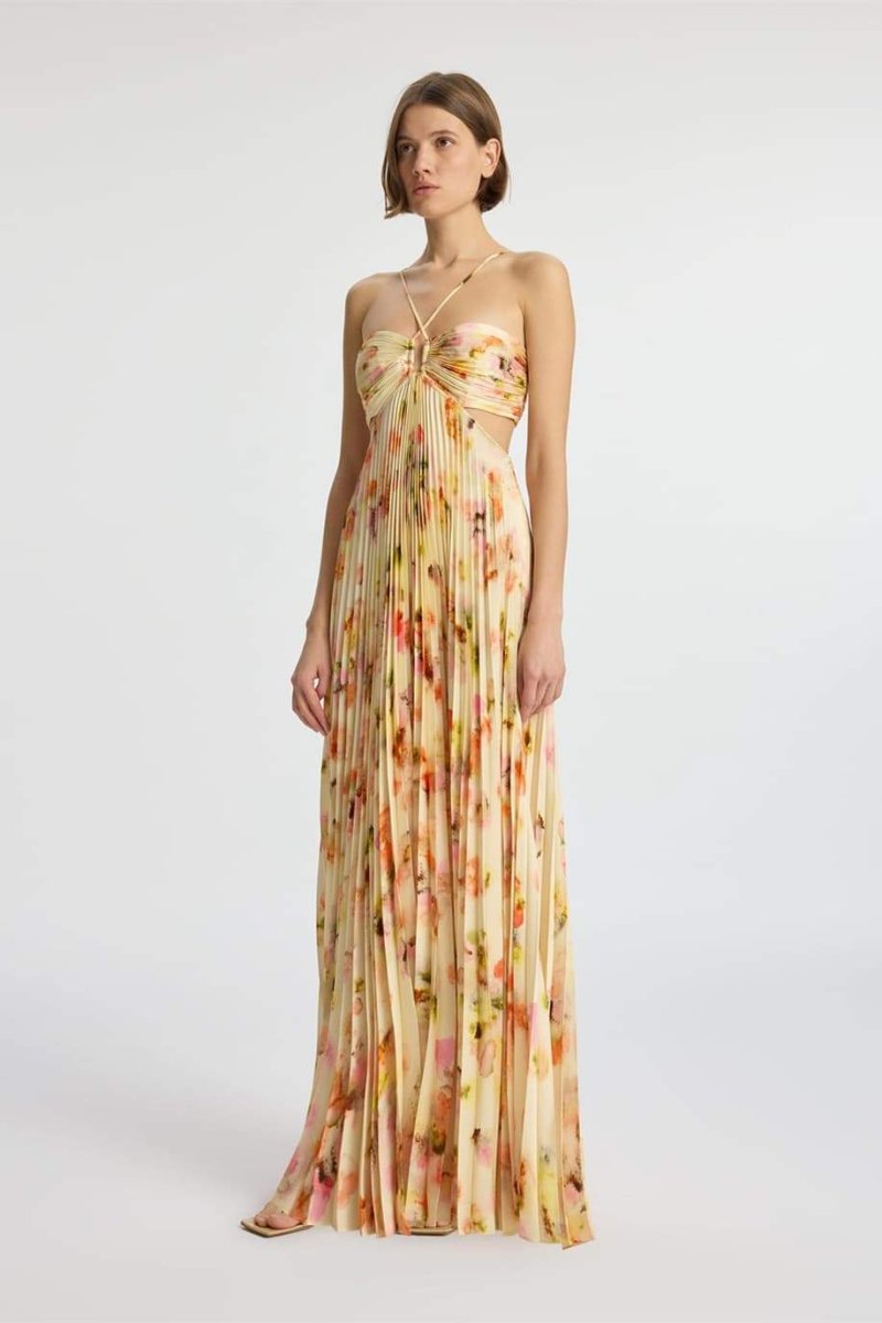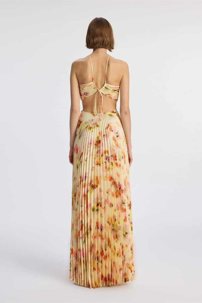 Leila Boyundan Bağlamalı Kesik Pileli Maxi Elbise