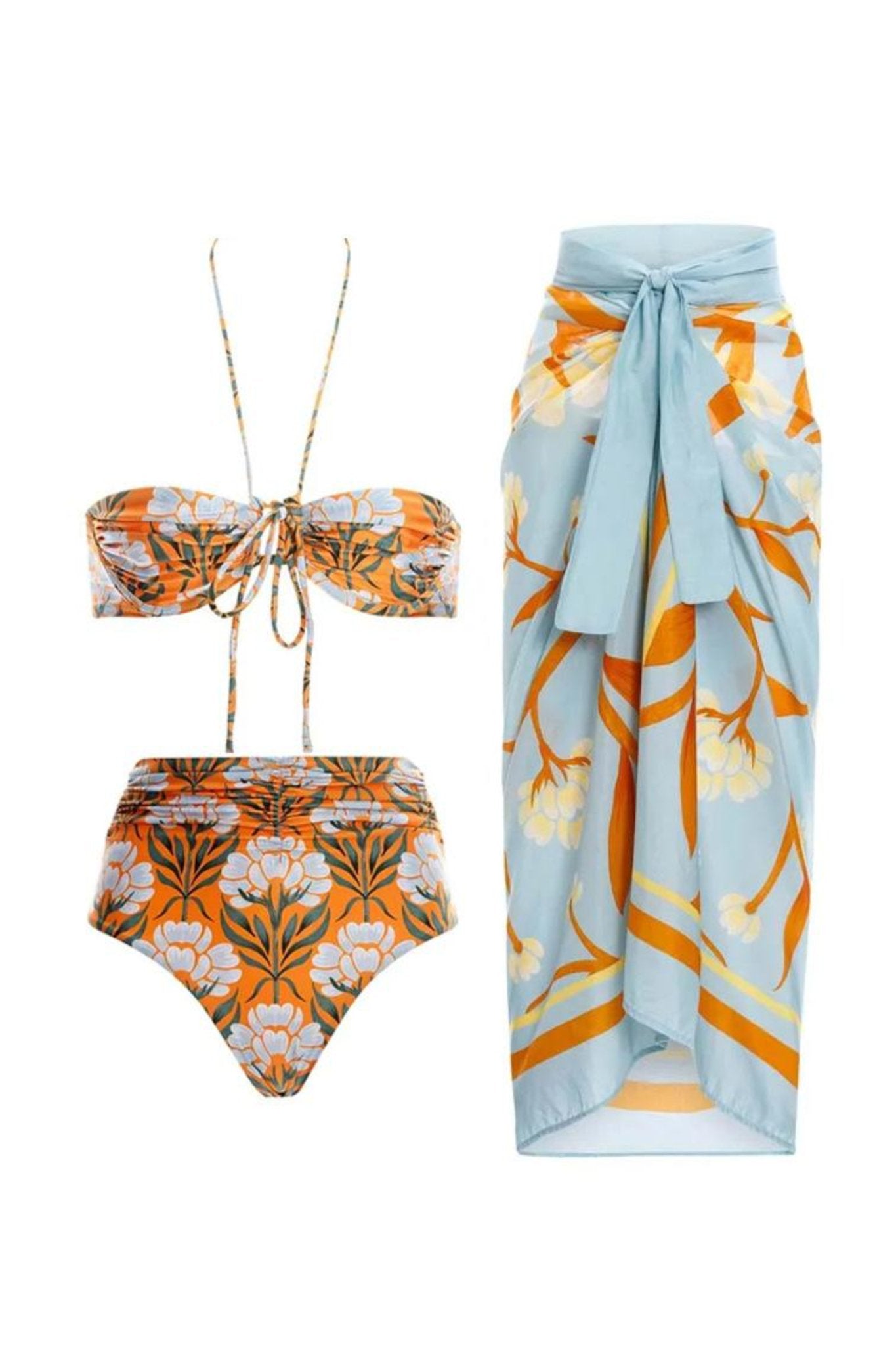 Lena Baskılı Büzgülü Üçlü Yüzme Seti