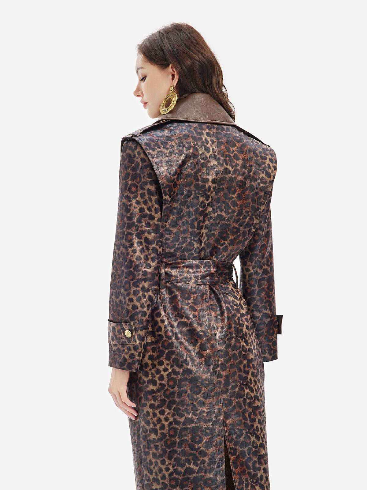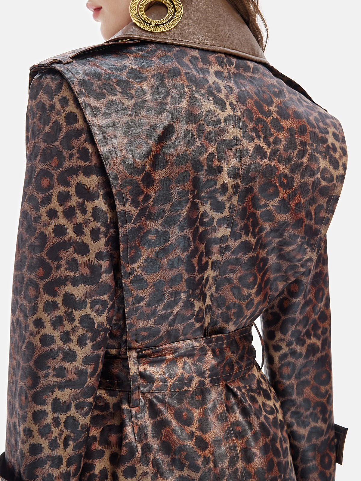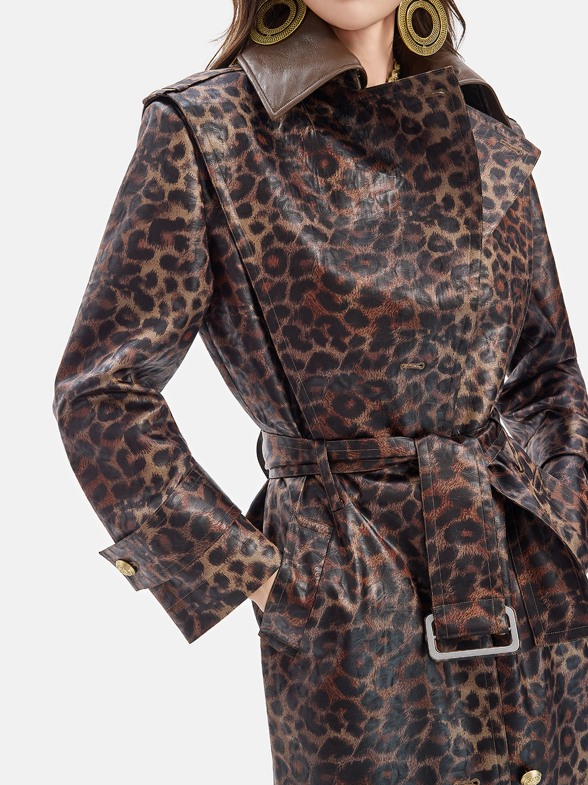 Leopar Desenli Çıkarılabilir Yaka Kaban