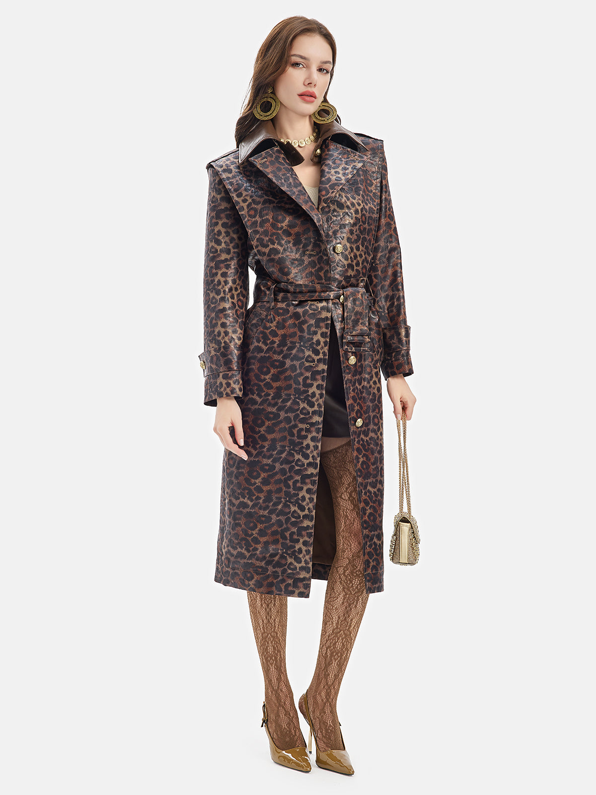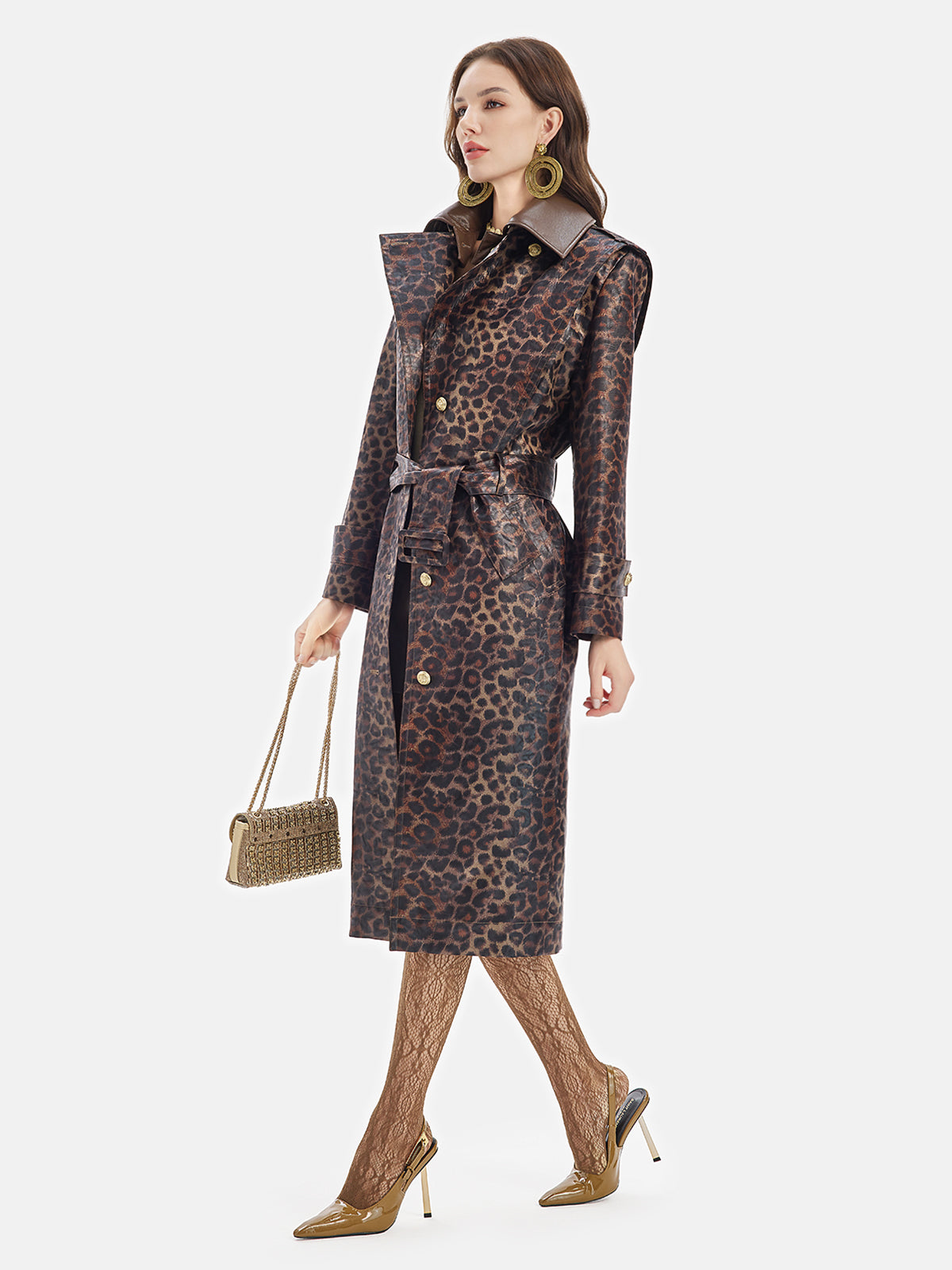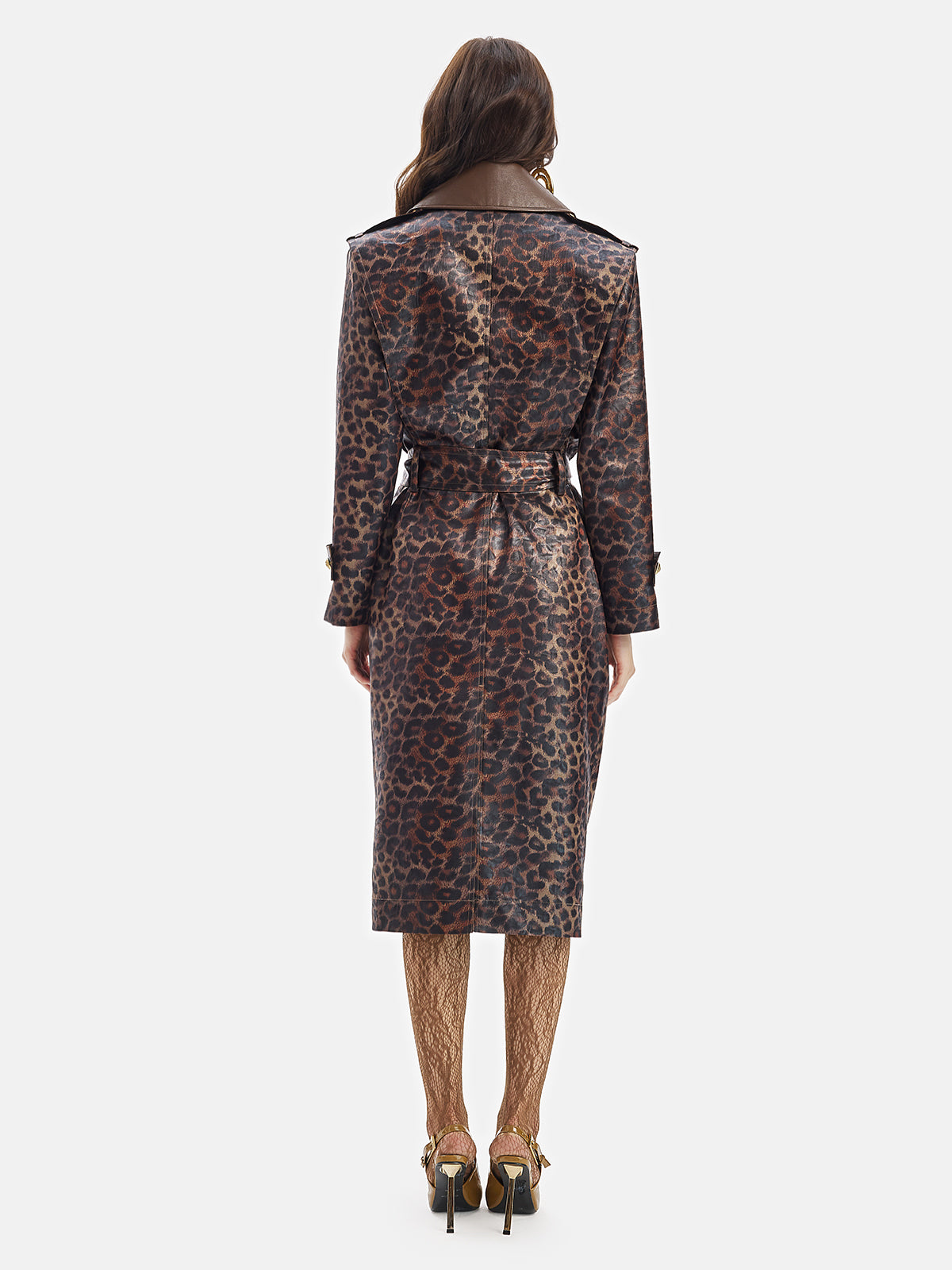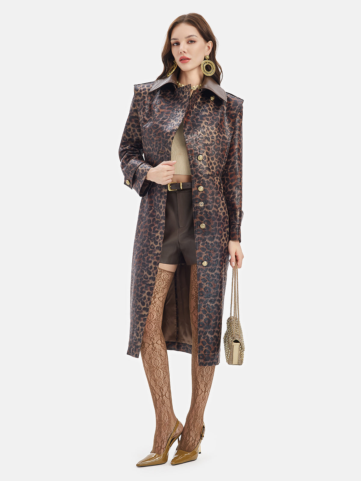 Leopar Desenli Çıkarılabilir Yaka Kaban
