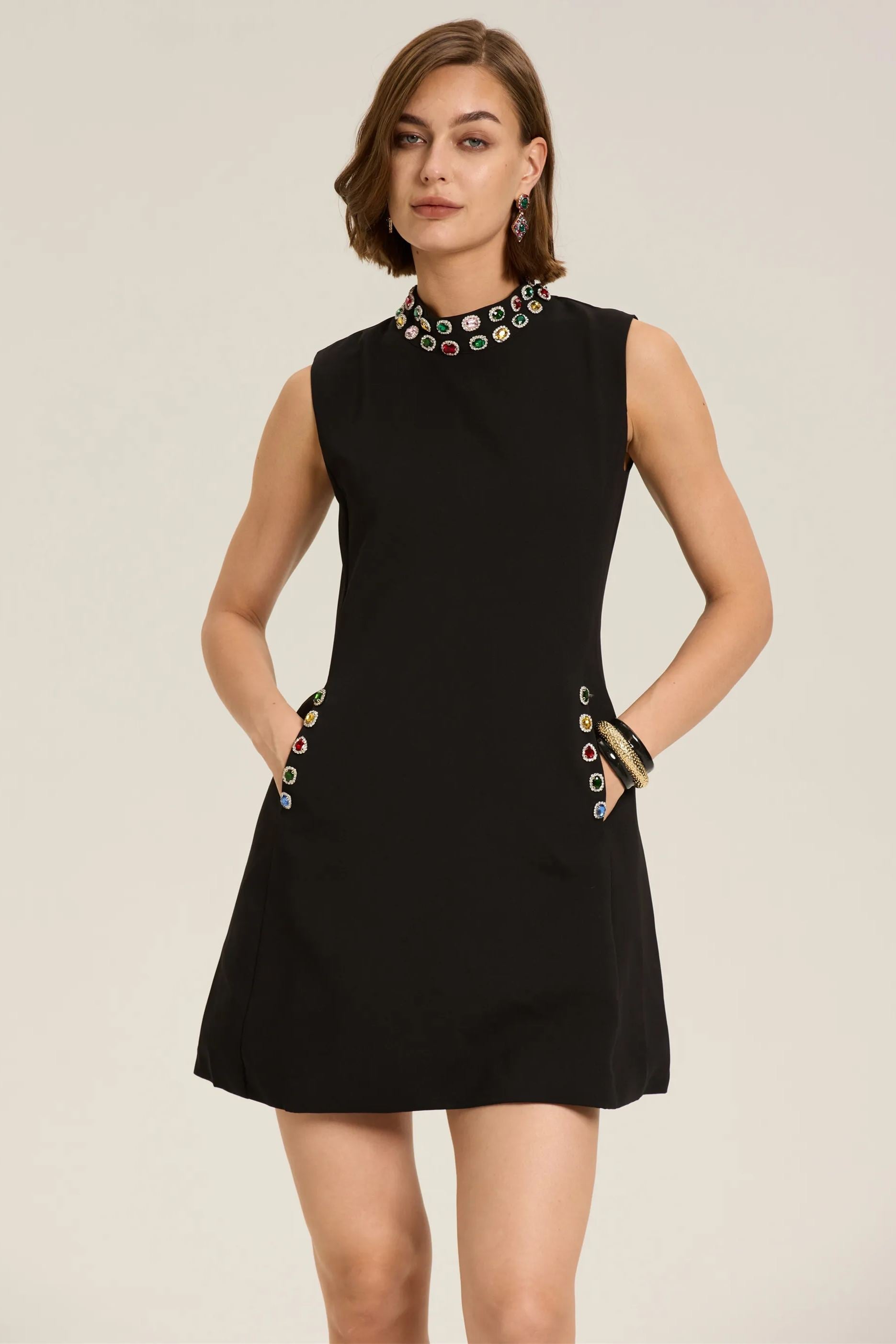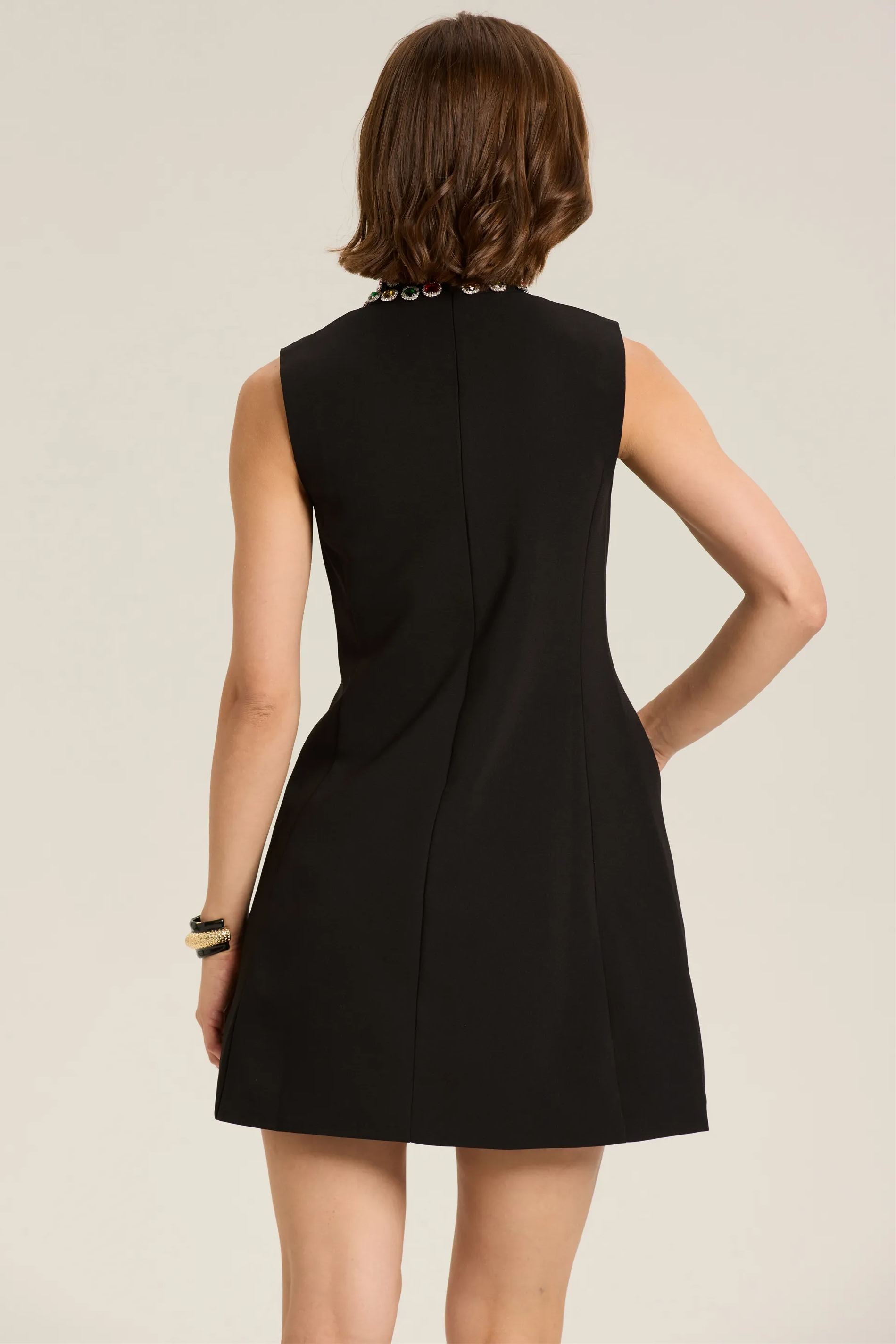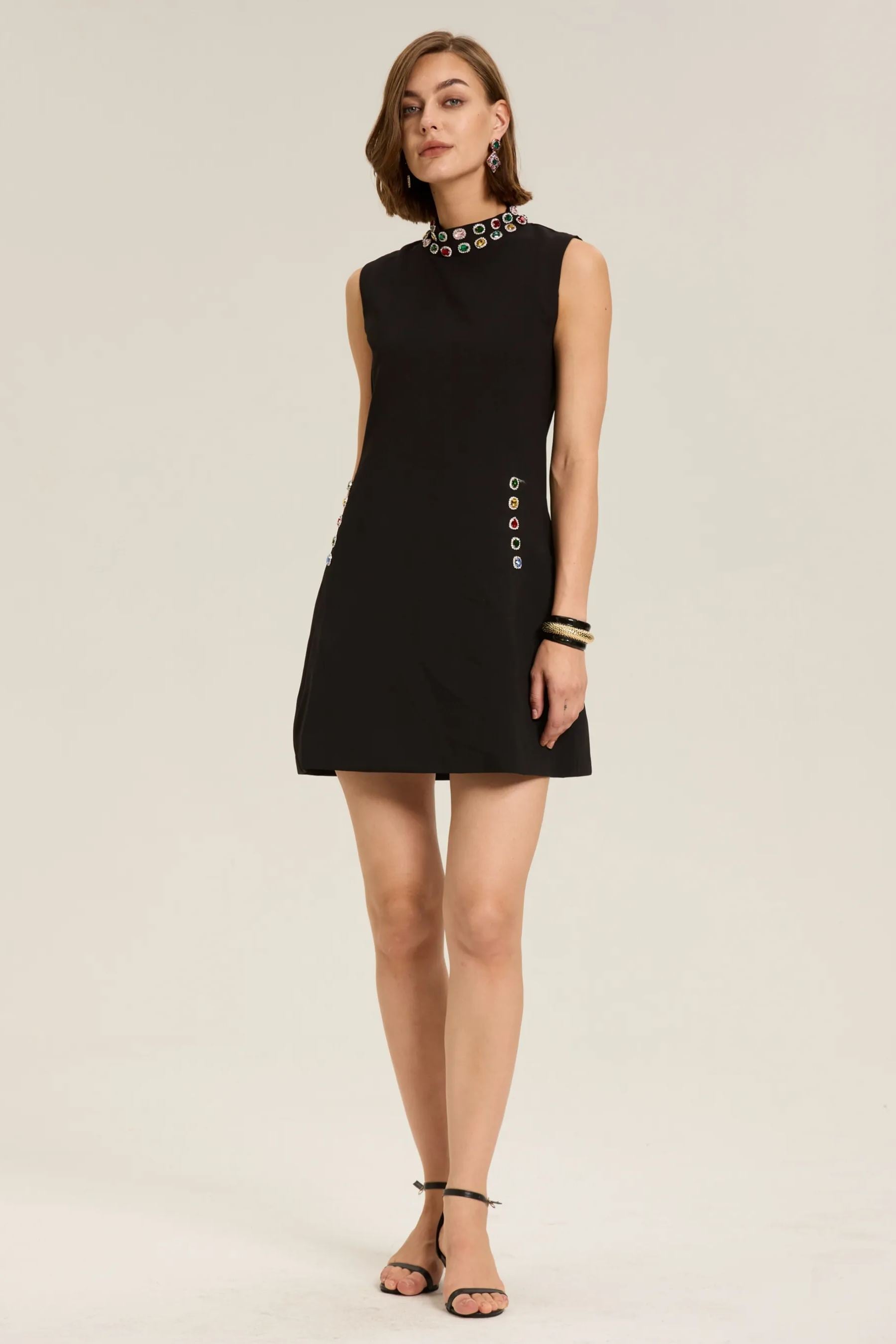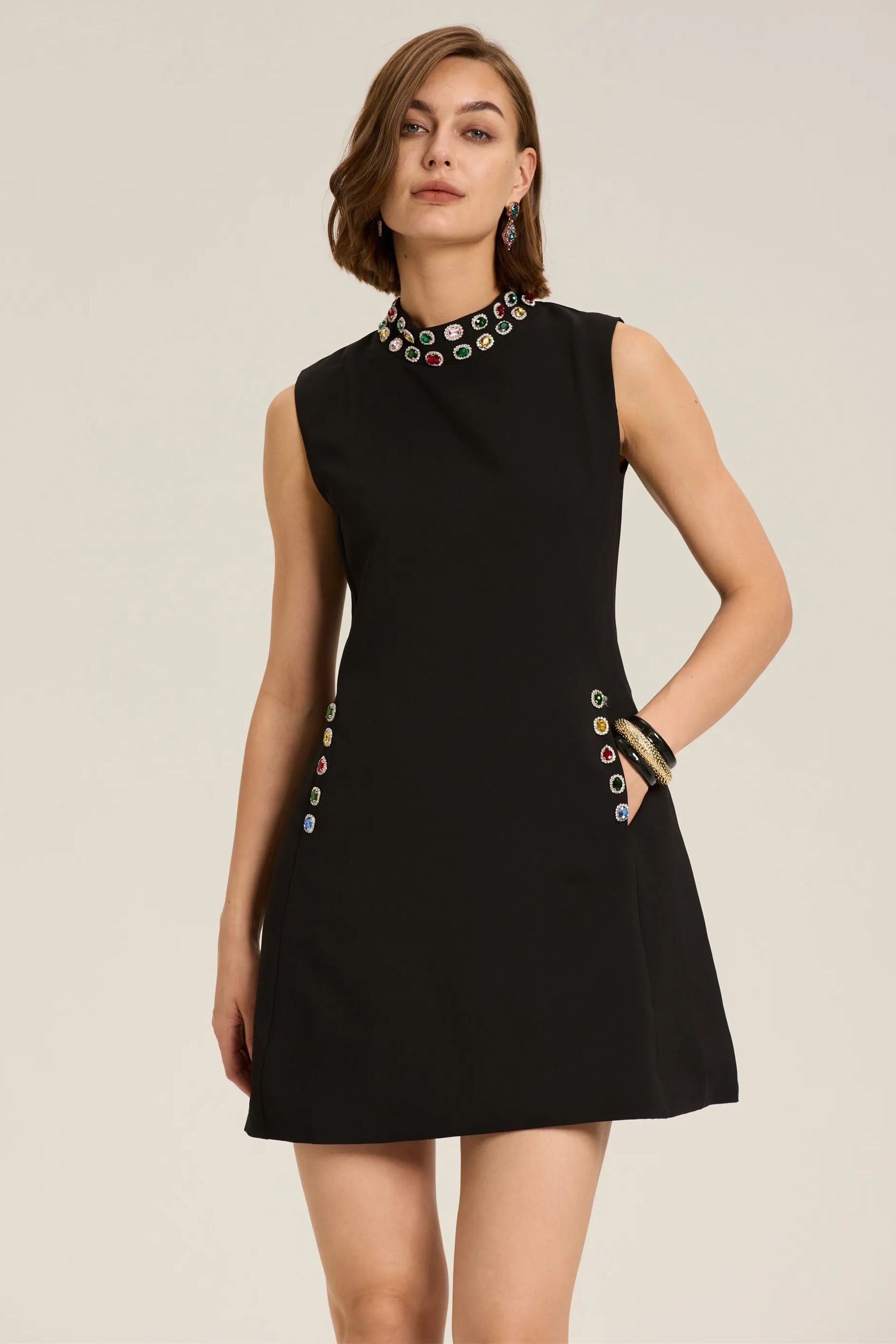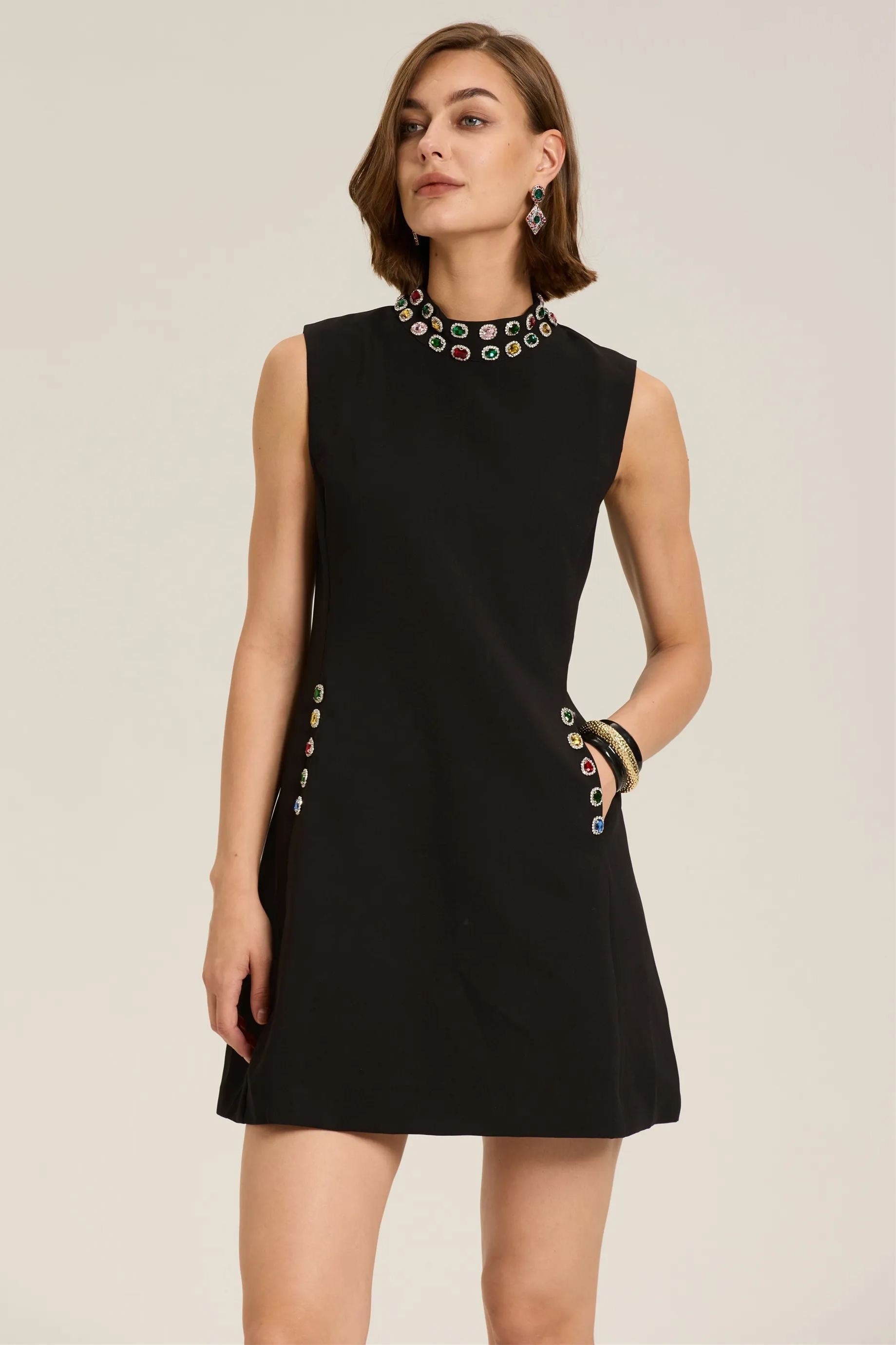 Güzel Kristal Süslemeli Kolsuz Mini Elbise