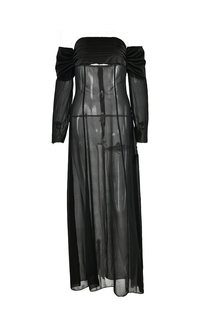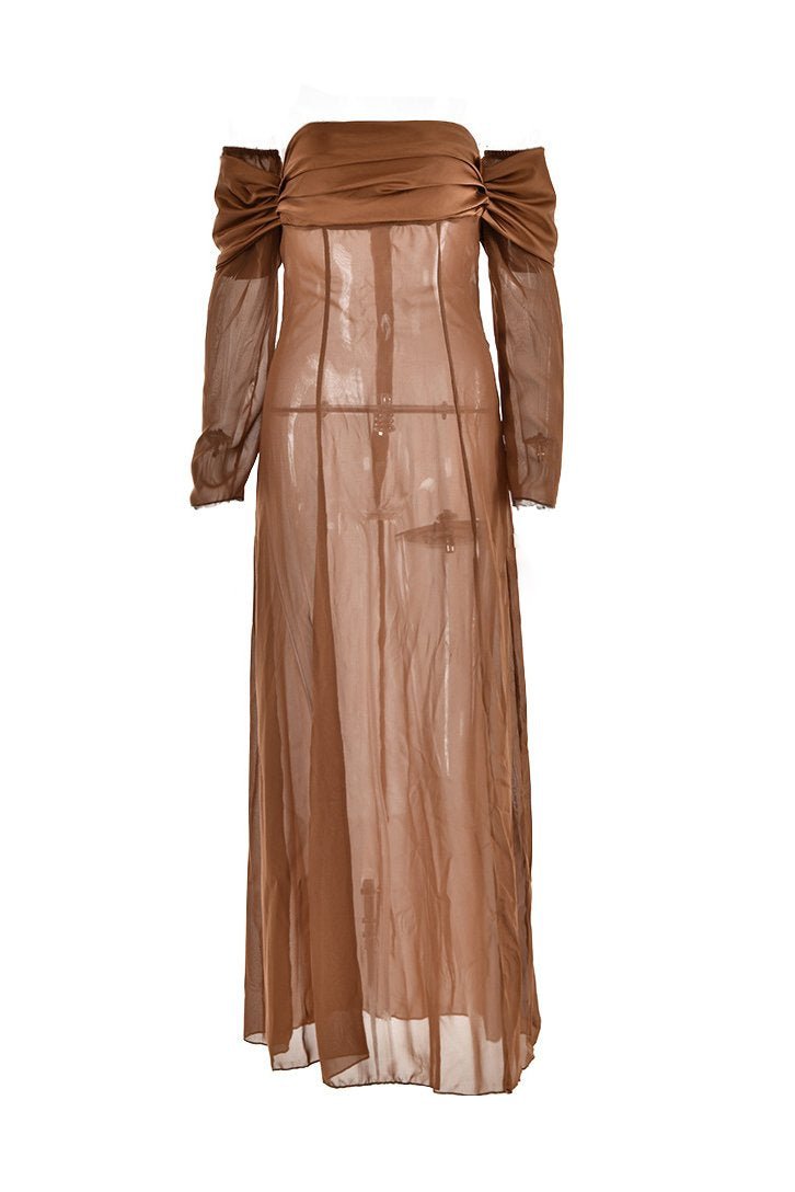 Liz Omuzu Açık Şifon Maxi Elbise