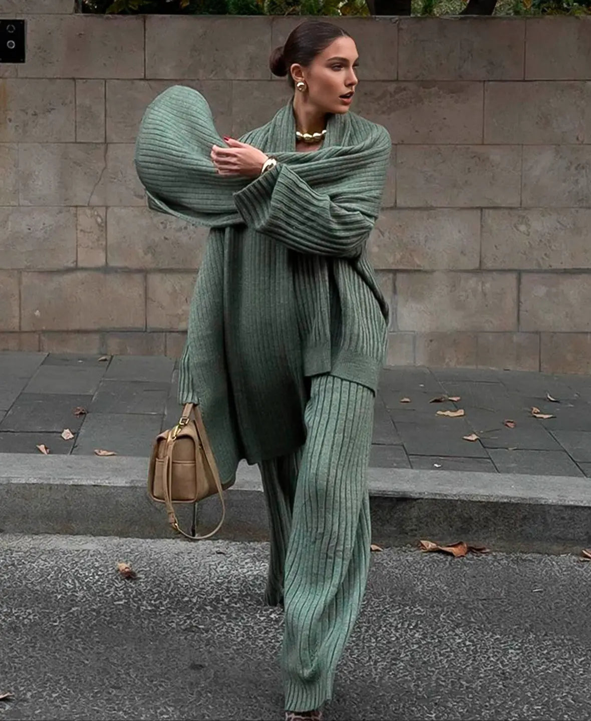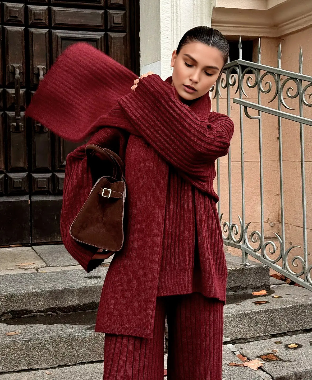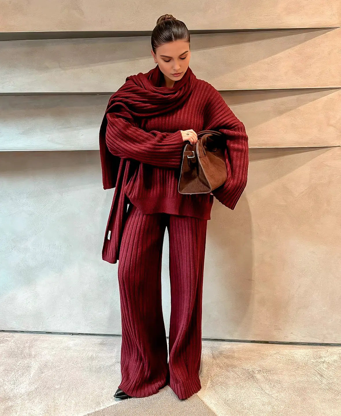 Alevna™ Lüks Örgü Kazak 3 Parça Set