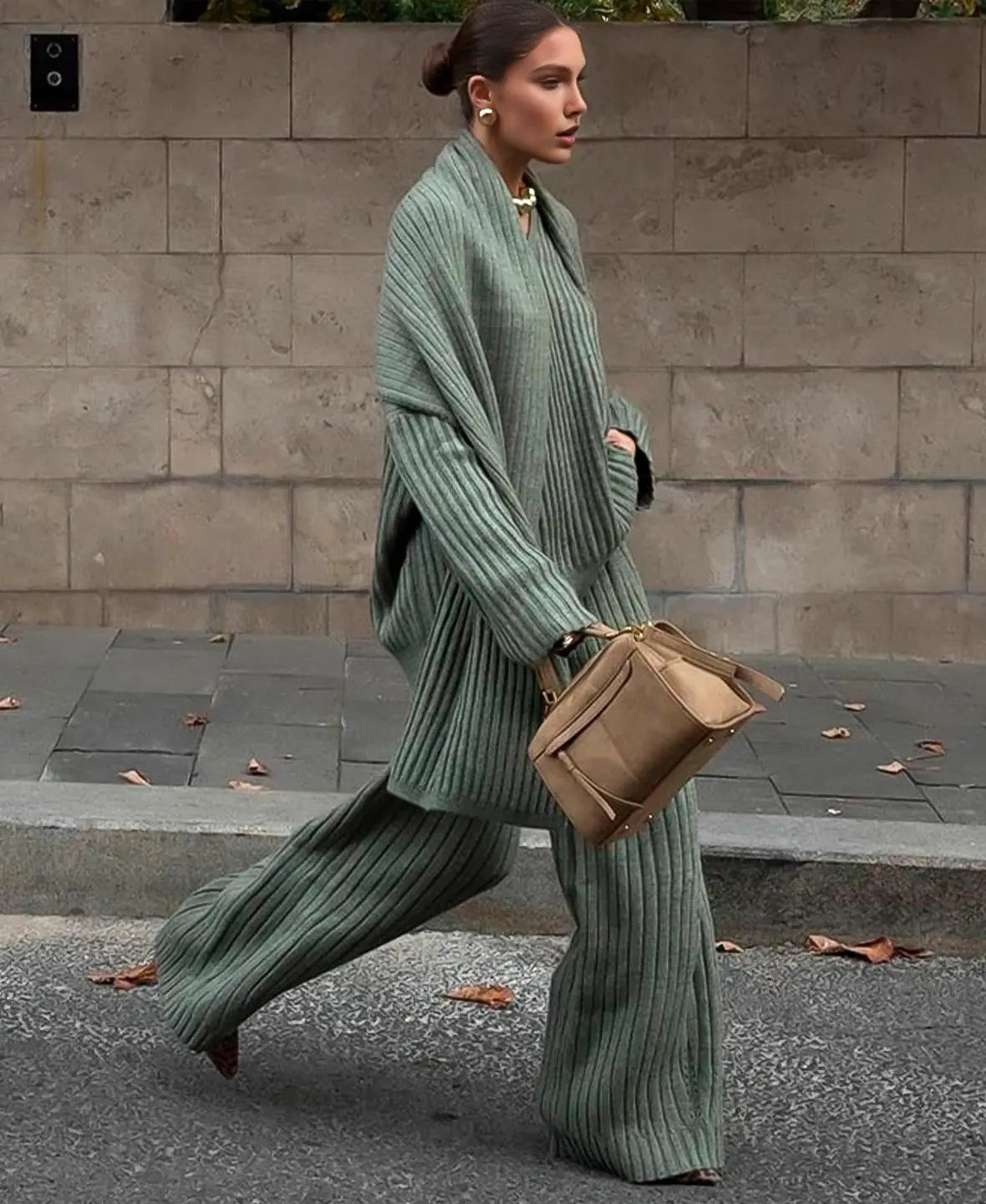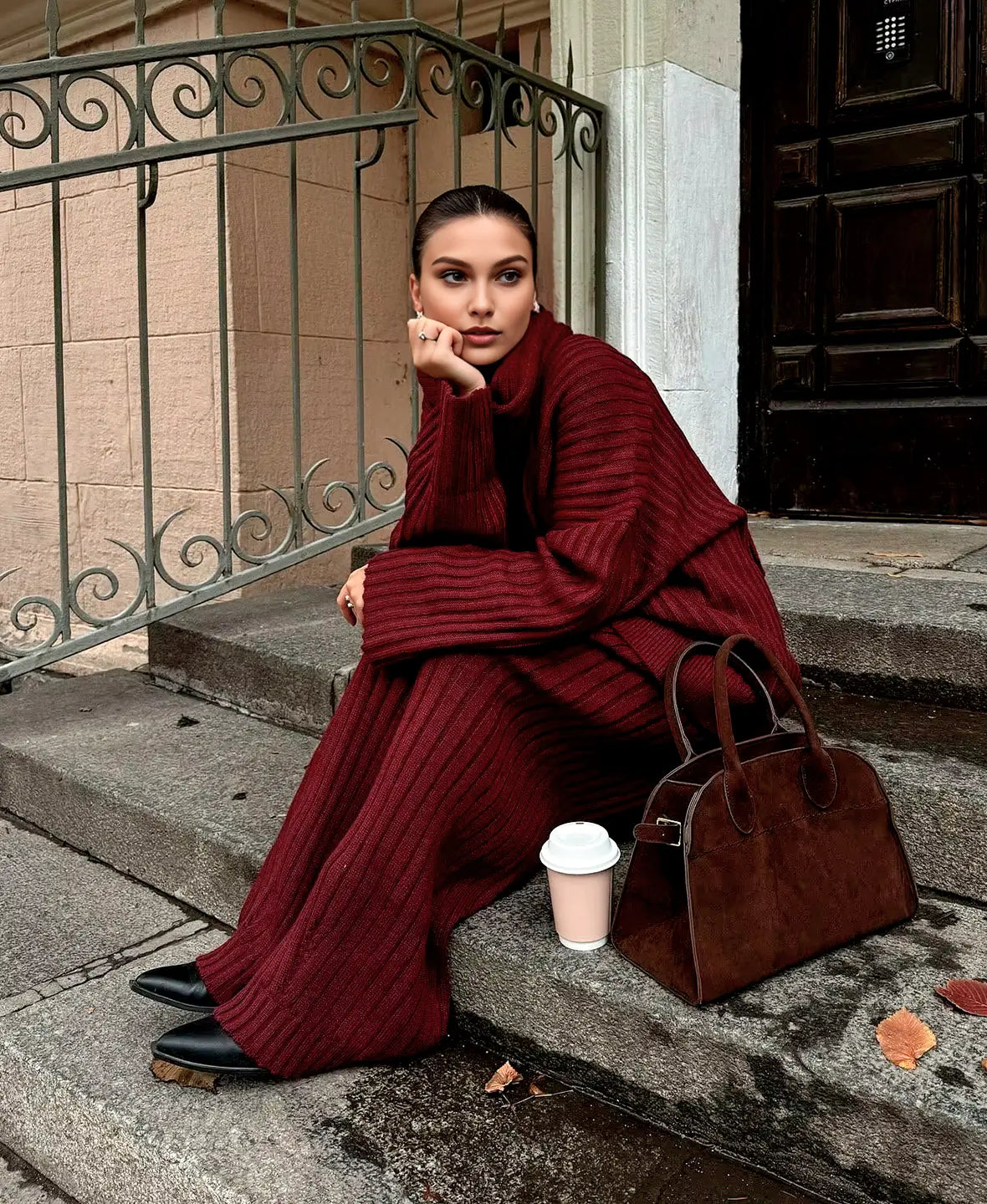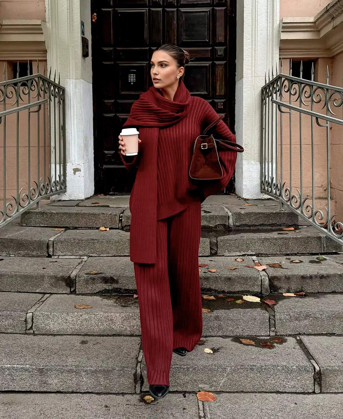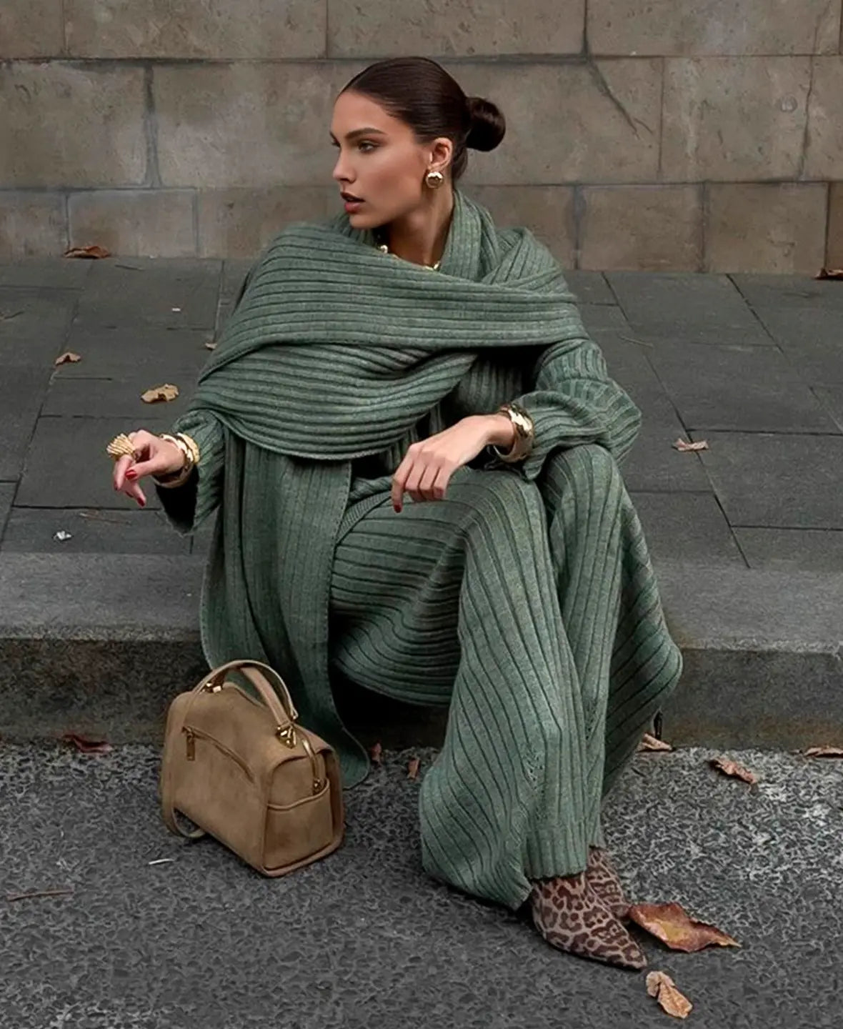 Alevna™ Lüks Örgü Kazak 3 Parça Set