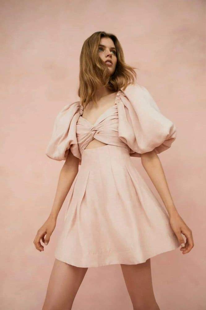 Lydia Puf Kol Düğümlü Mini Elbise