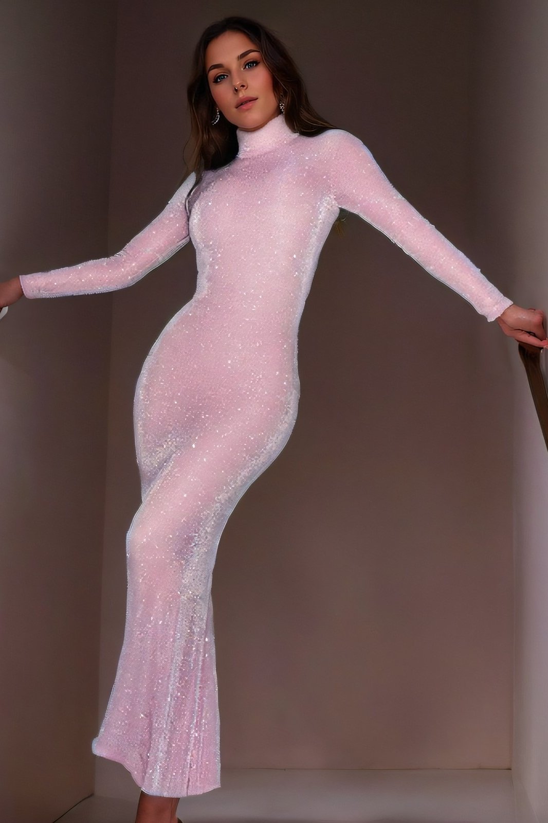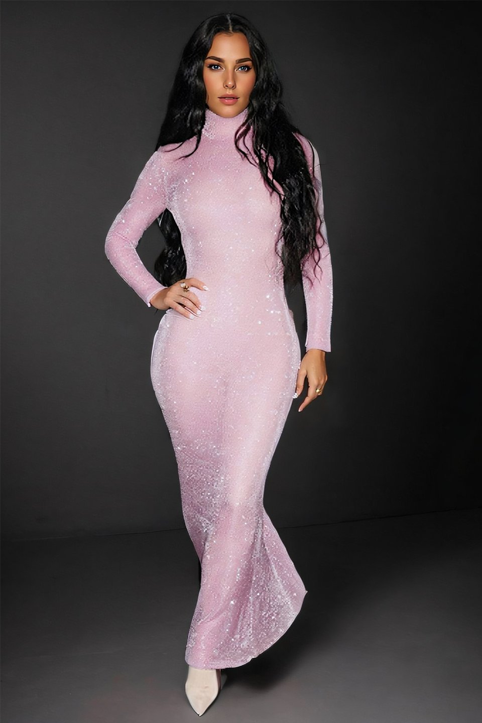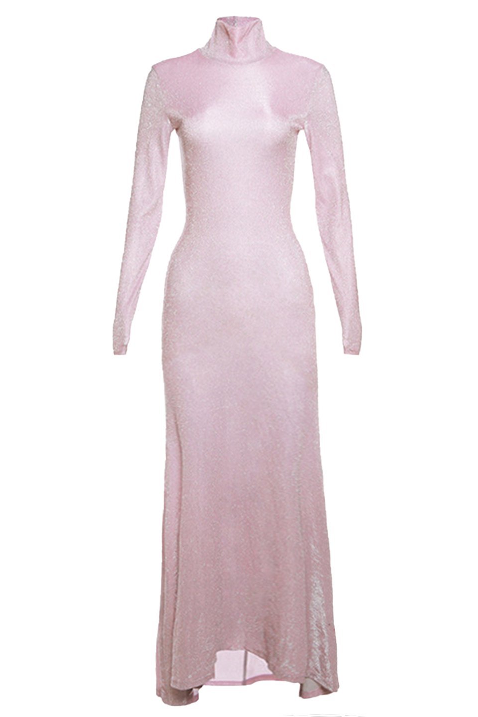Madeline Balıkçı Yaka Metalik Maxi Elbise