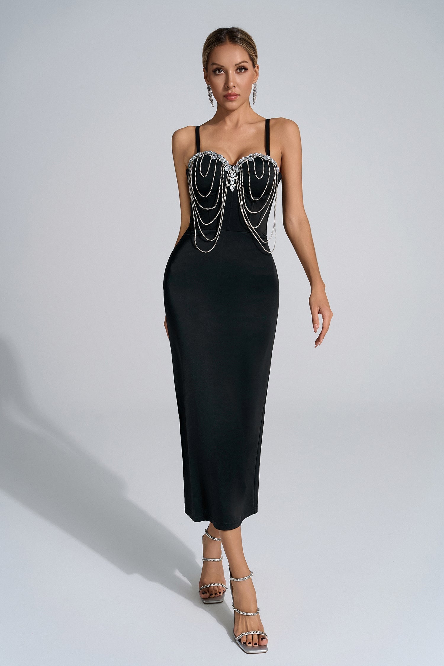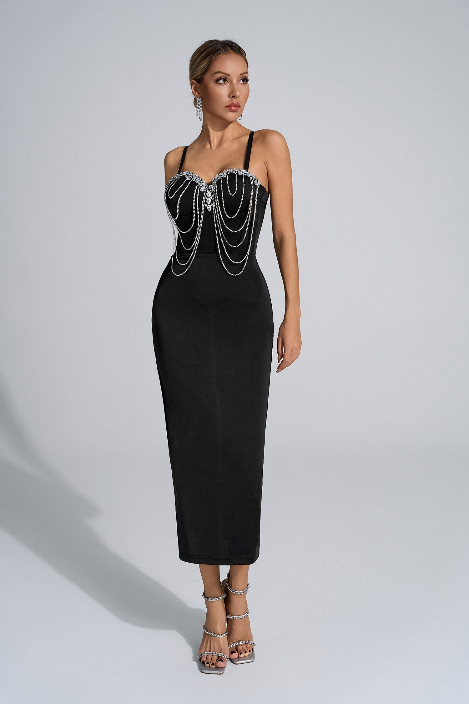 Madelynn Siyah Boyundan Bağlamalı Maxi Elbise