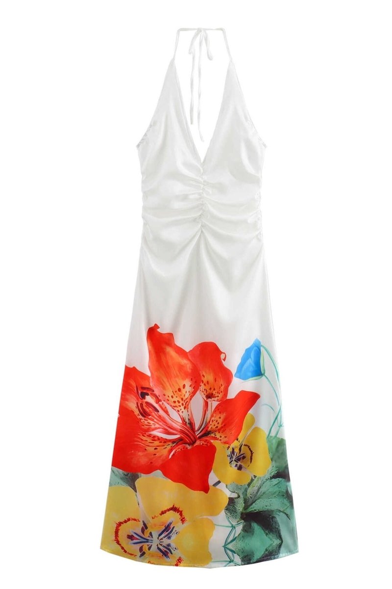 Martina Çiçek Desenli Boyundan Bağlı Uzun Elbise