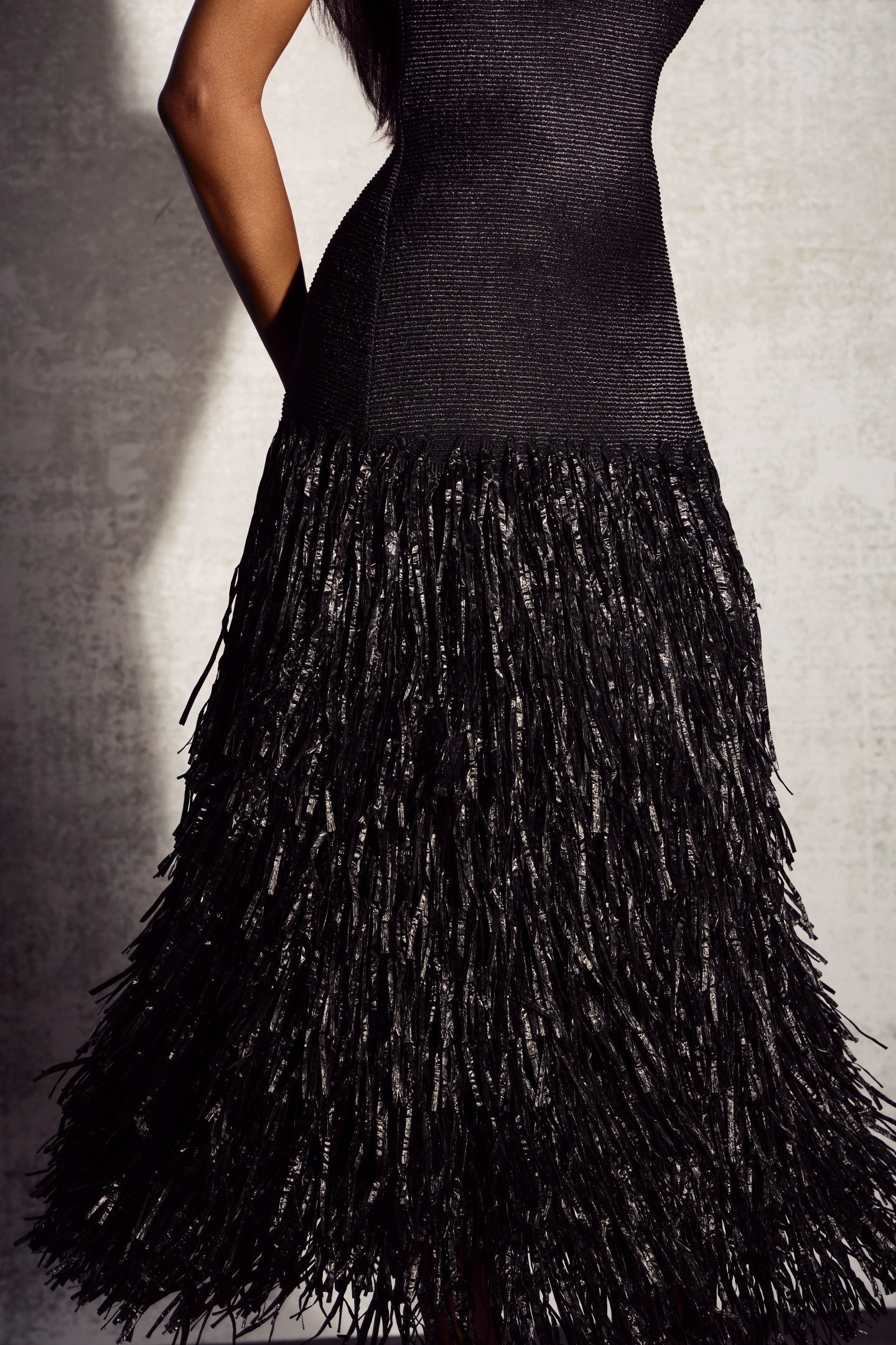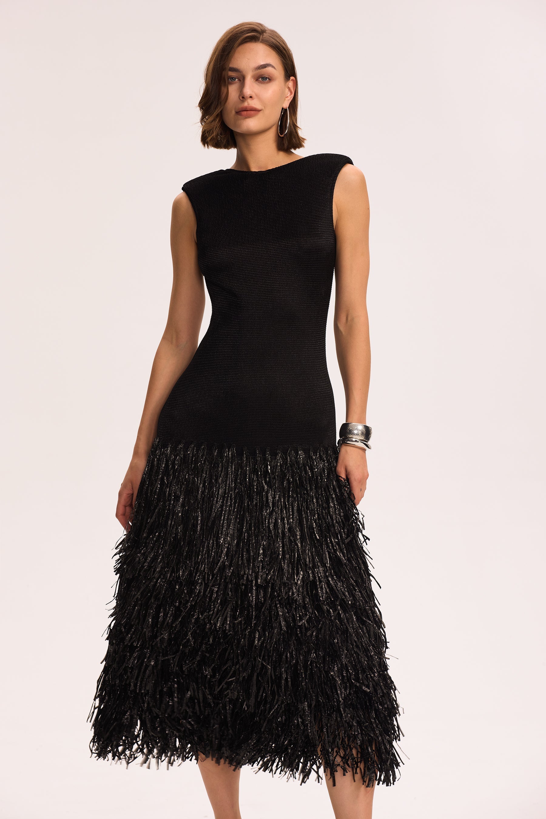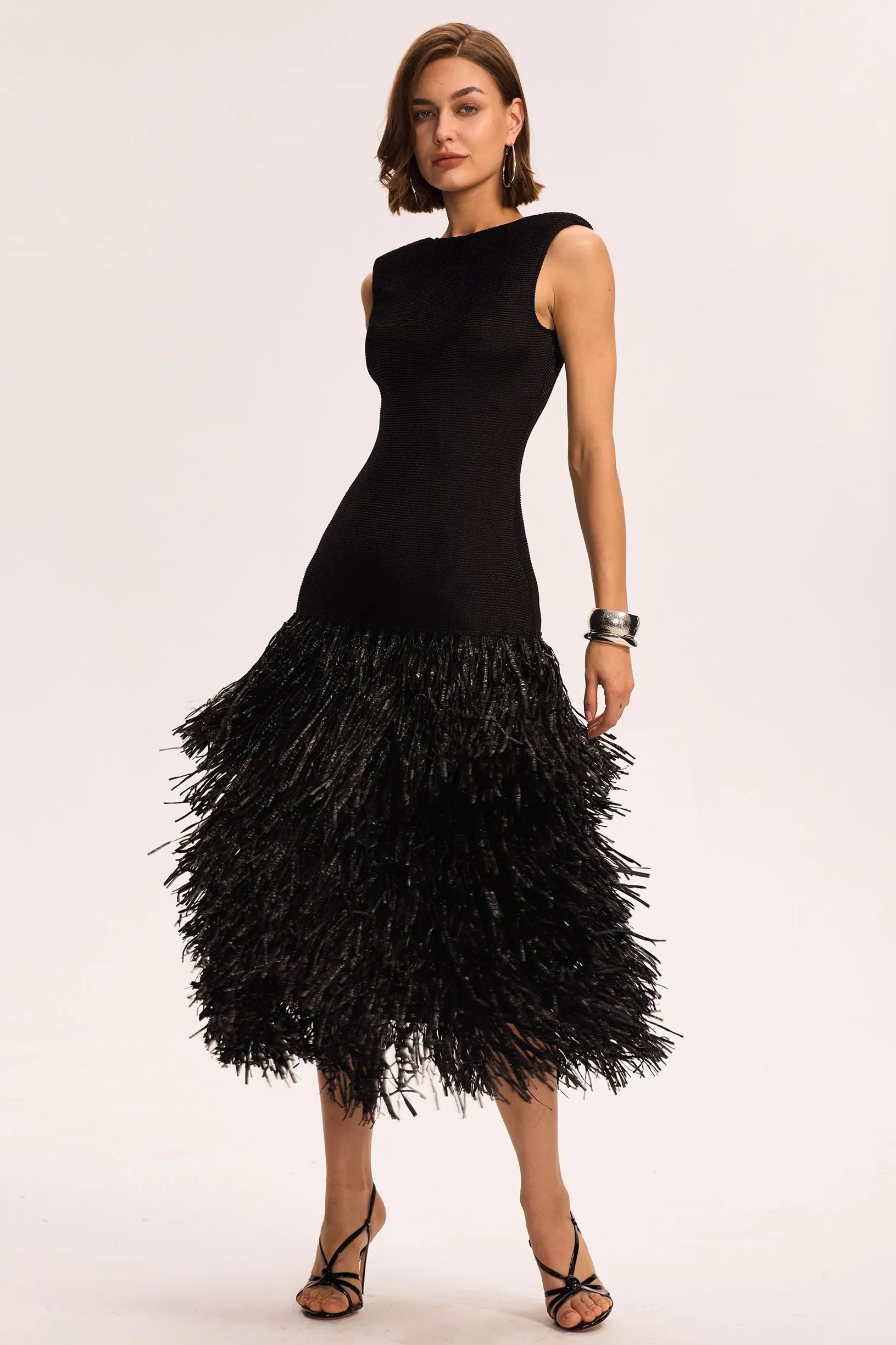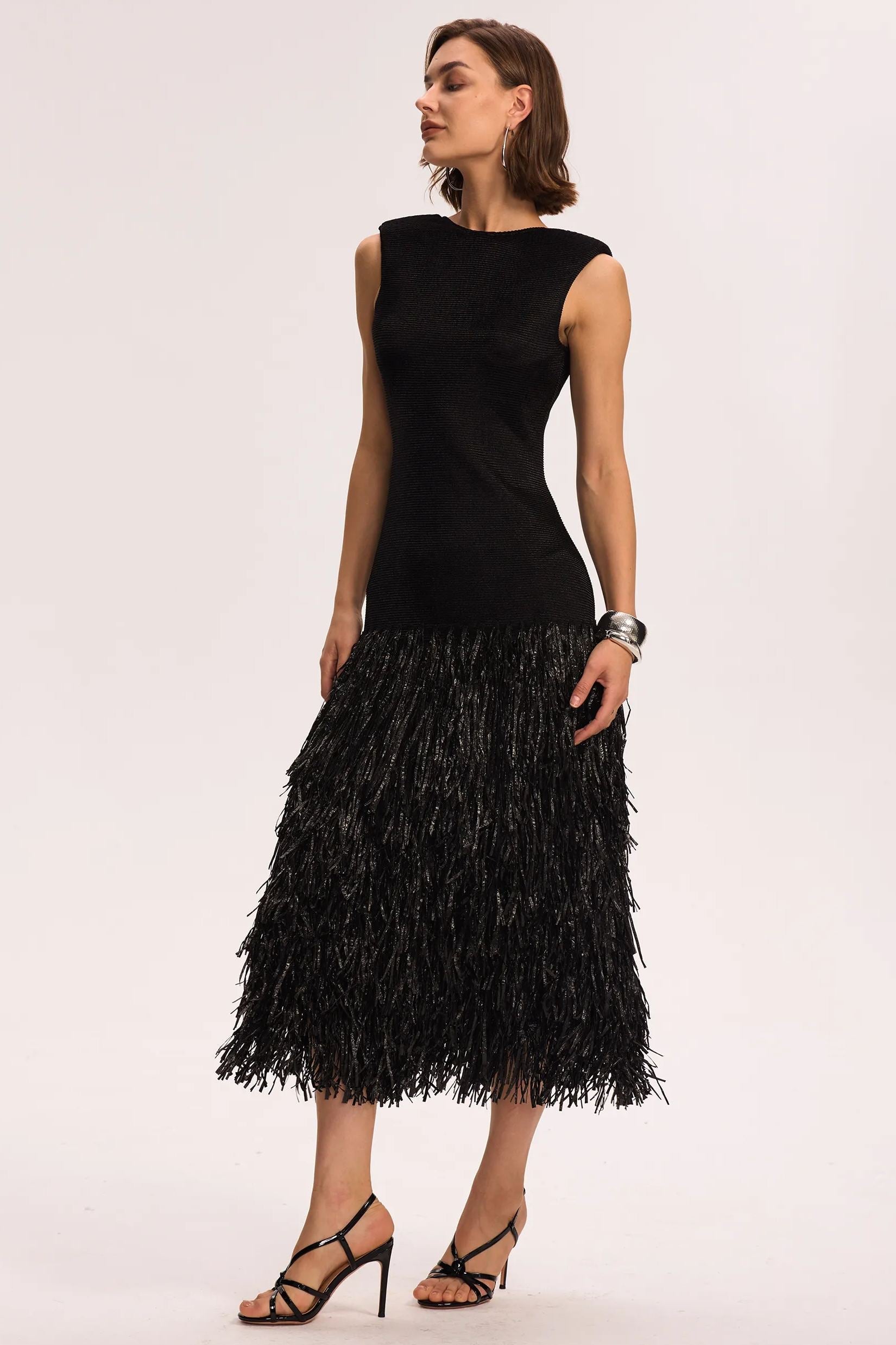 Mavis Sırtı Açık Püsküllü Triko Midi Elbise