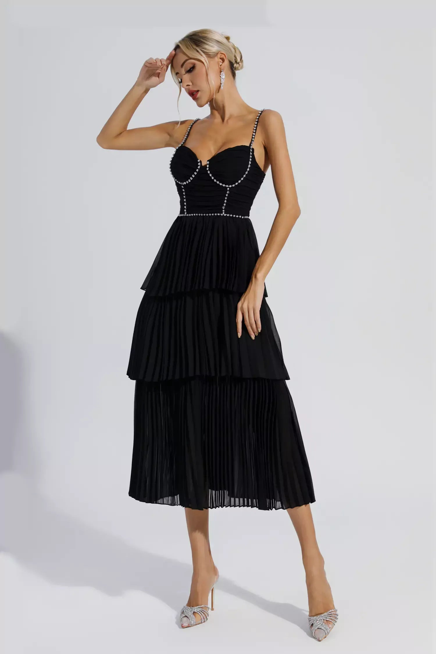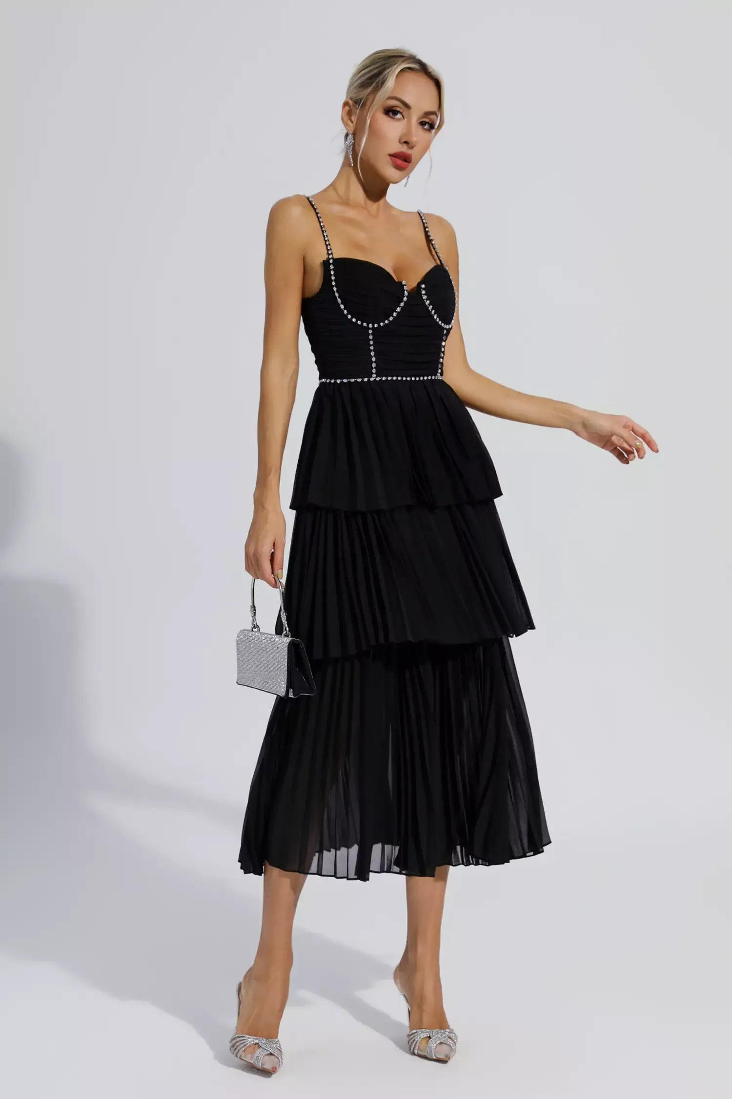 Meredith Siyah Pırlanta Dantelli Uzun Elbise