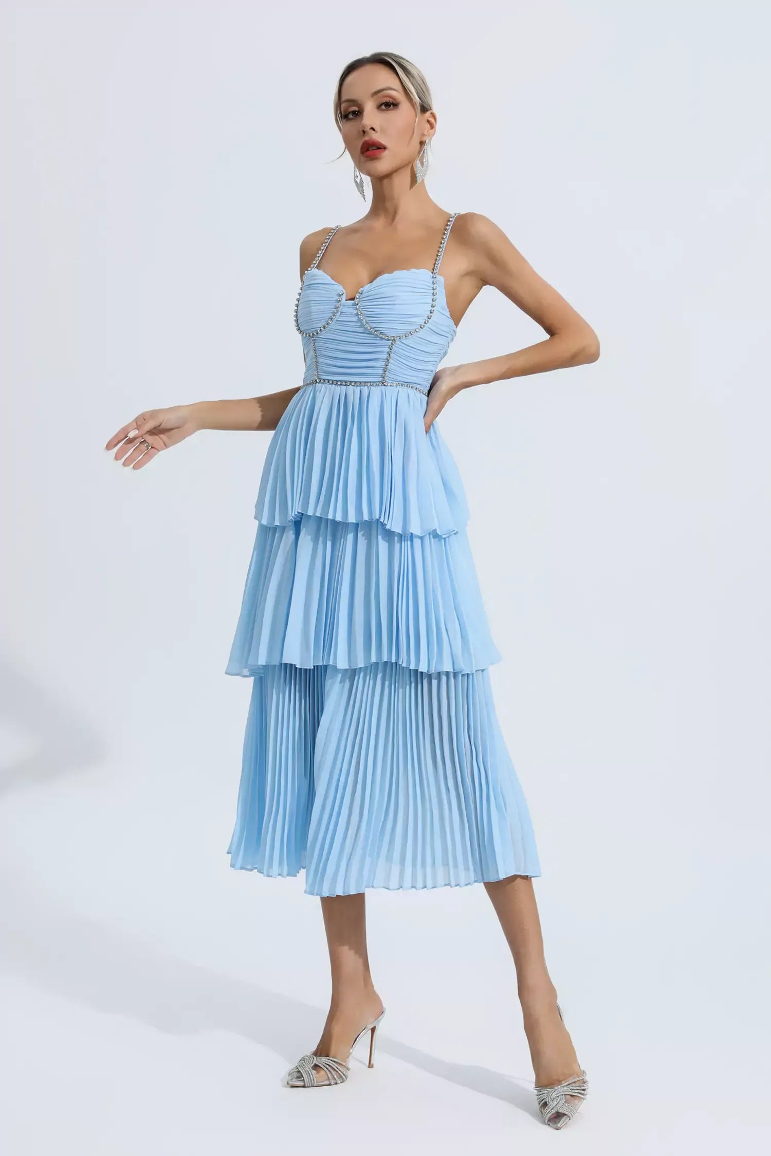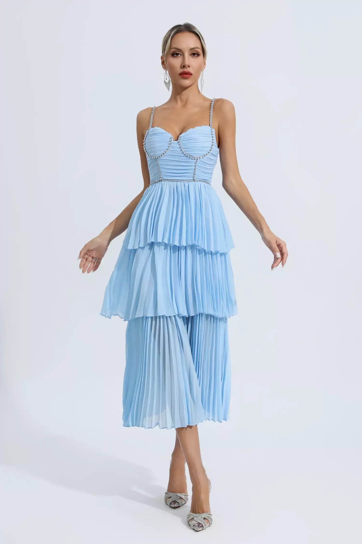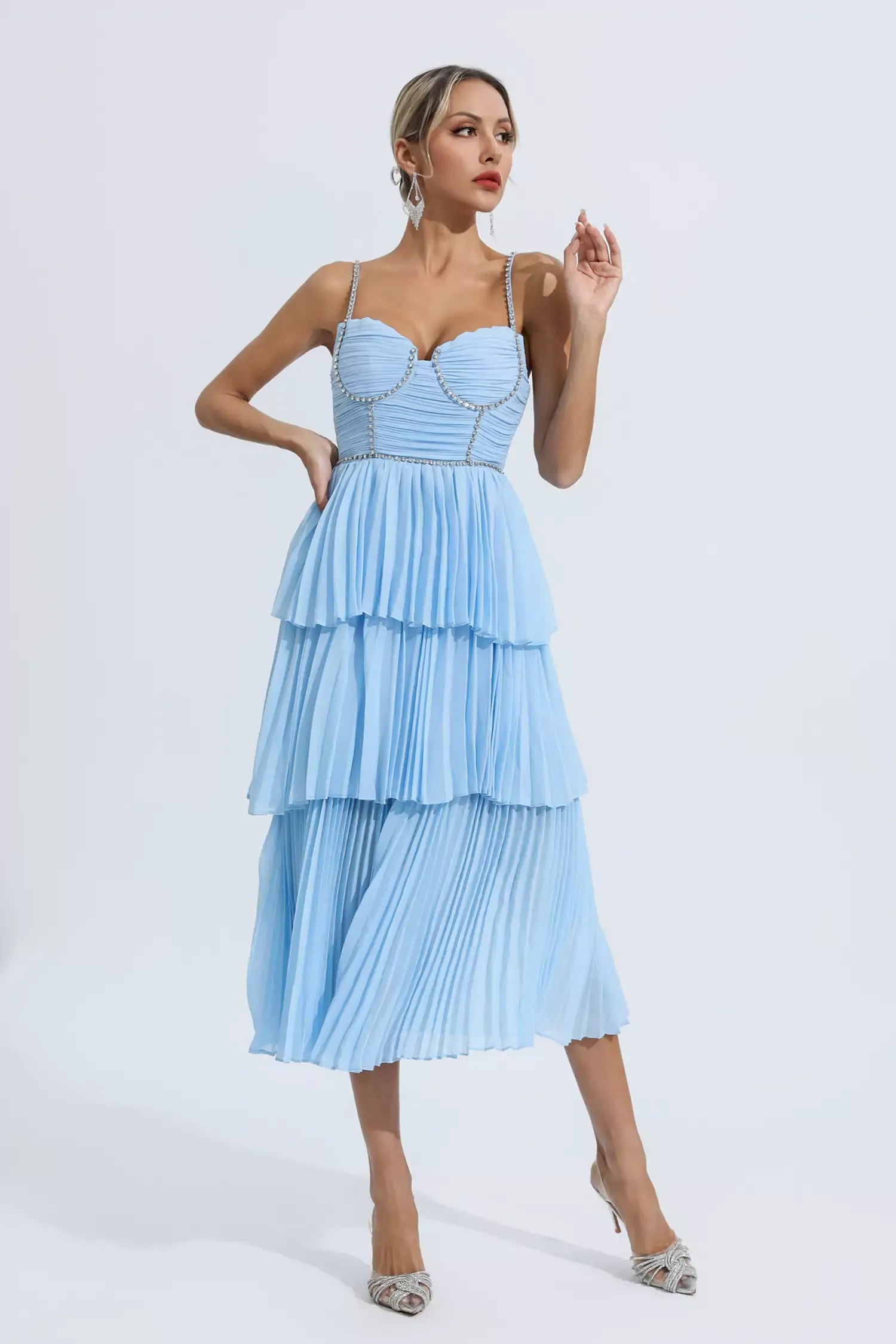Elbiselerimiz, çağdaş tasarım unsurlarıyla klasik güzellik kavramını yeniden tanımlıyor. Zarif, vücuda oturan siluet, zarif bir görünüm yaratarak sizi gecenin parlayan yıldızı yapar. İster bir galaya, ister bir düğüne veya resmi bir akşam yemeğine katılın, bu elbise zahmetsizce göz alıcı bir görünüm için tercihiniz olacak.